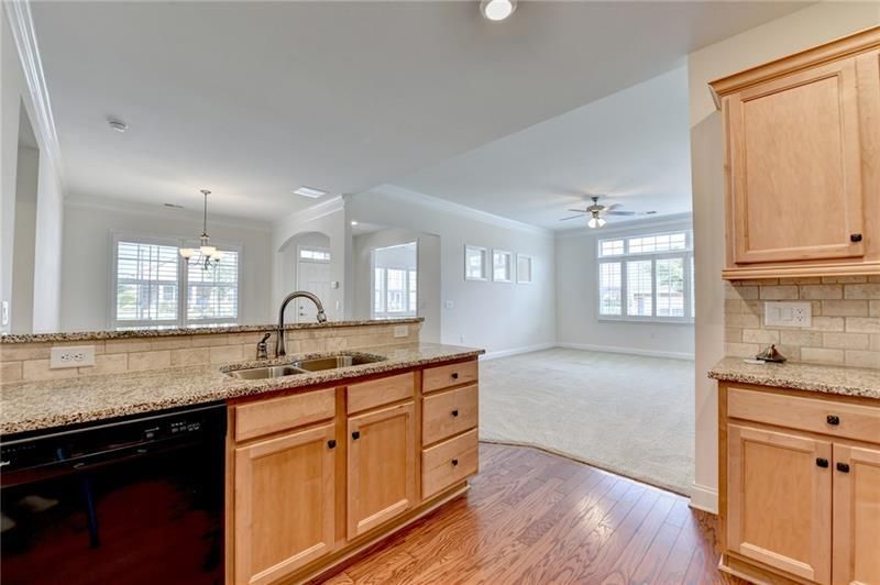 HOA PAYS YOUR WATER USAGE! Welcome to Easy Living in The Orchards at Park Ridge - A Premier 55+ Gated Community! Step into this beautifully maintained 3-bedroom, 3-bath stepless all-brick home, offering the perfect blend of comfort, convenience, and community. Located in the highly sought-after Orchards at Park Ridge, this open-concept design is filled with natural light and timeless charm. Enjoy peaceful mornings on the covered front porch, then head inside where hardwood floors flow through the main living areas, complemented by soaring ceilings and soft, neutral tones. The gourmet kitchen features granite countertops, stained cabinetry, and opens seamlessly to the family room, dining area, and a flexible office or reading nook. The main-level primary suite boasts a tray ceiling, spacious walk-in closet, and a private bath with dual granite vanities and a walk-in shower with a built-in seat-no tub. A second bedroom and full bath on the main level are ideal for guests or hobbies. Upstairs, you'll find an oversized loft bedroom with its own full bath and walk-in attic access. Additional features include plantation shutters for added protection and peace of mind. Located just 2 miles off I-85 on Hamilton Mill Road, you're minutes from the Mall of Georgia, restaurants, grocery stores, and parks. The HOA covers all exterior maintenance, including landscaping, irrigation, termite bond, trash service, and your water usage. Residents also enjoy access to a clubhouse with a saltwater pool and a fitness center. Whether you're downsizing or simply ready for low-maintenance living, this home offers the lifestyle you've been waiting for, within a welcoming and active 55+ community.