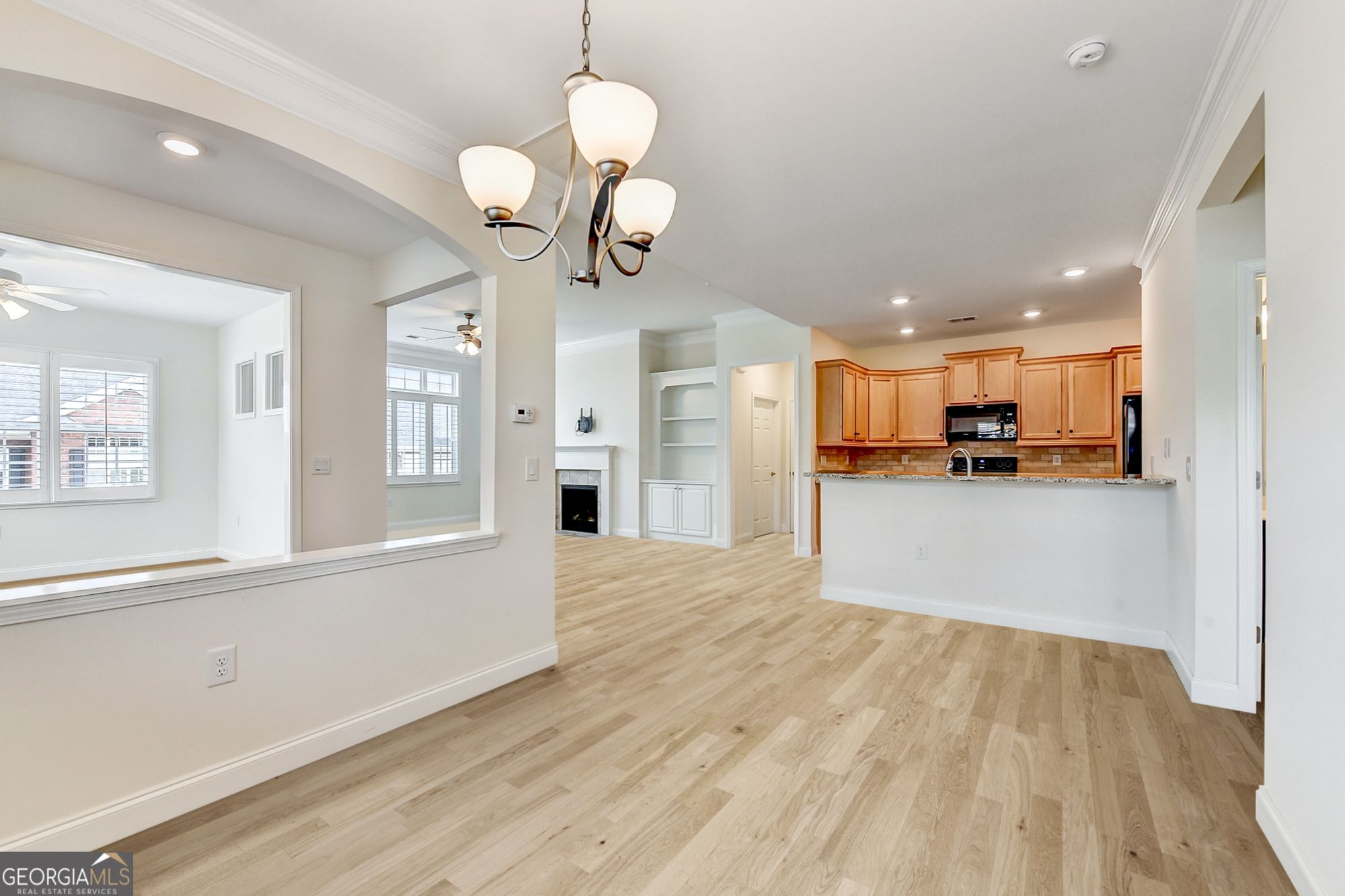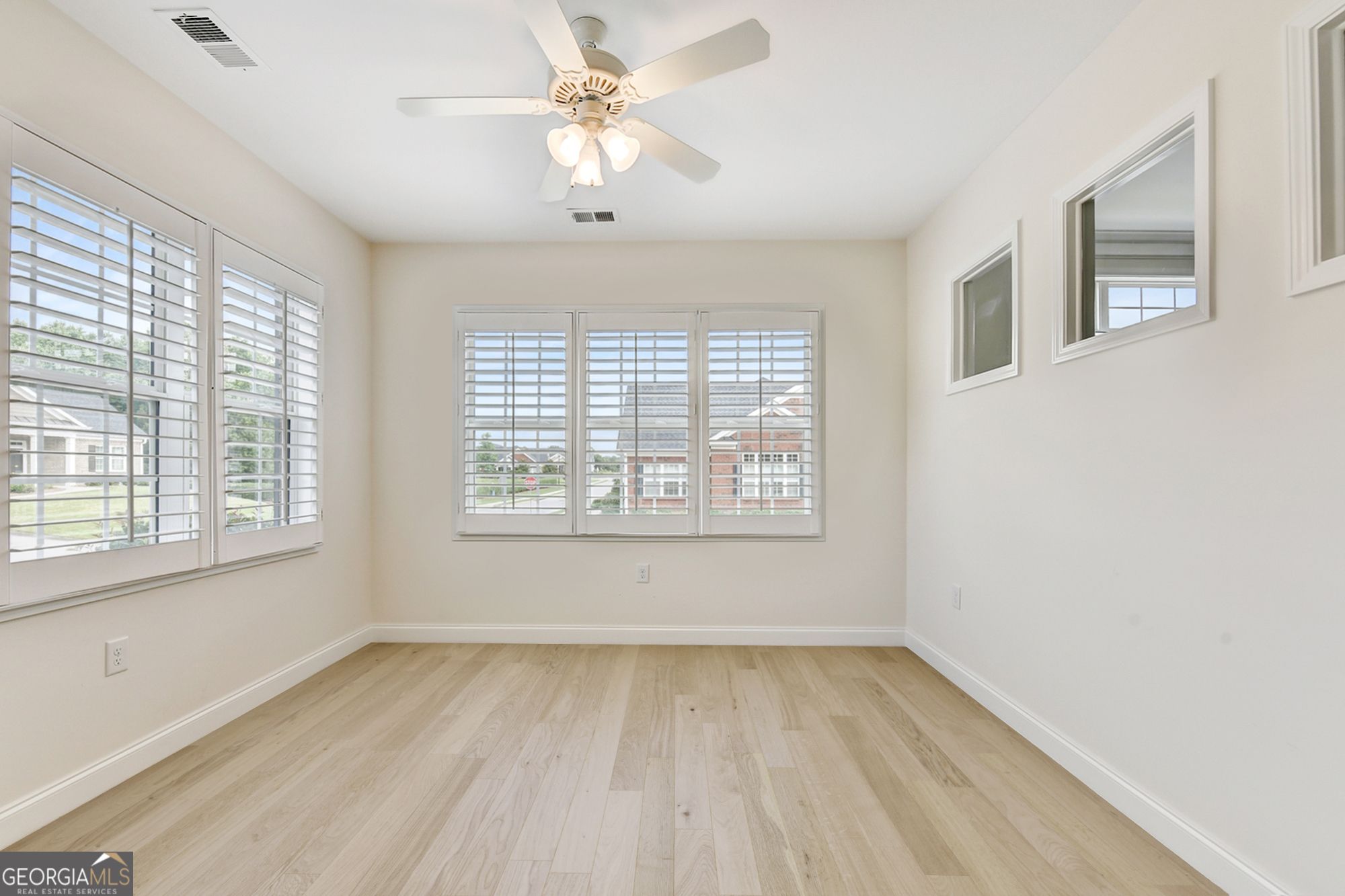Welcome to Easy Living in The Orchards at Park Ridge - A Premier 55+ Gated Community! Step into this beautifully maintained 3-bedroom, 3-bath stepless all-brick home, offering the perfect blend of comfort, convenience, and community. Located in the highly sought-after Orchards at Park Ridge, this open-concept design is filled with natural light and timeless charm. Enjoy peaceful mornings on the covered front porch, then head inside where hardwood floors flow through the main living areas, complemented by soaring ceilings and soft, neutral tones. The gourmet kitchen features granite countertops, stained cabinetry, and opens seamlessly to the family room, dining area, and a flexible office or reading nook. The main-level primary suite boasts a tray ceiling, spacious walk-in closet, and a private bath with dual granite vanities and a walk-in shower with a built-in seat-no tub. A second bedroom and full bath on the main level are ideal for guests or hobbies. Upstairs, you'll find an oversized loft bedroom with its own full bath and walk-in attic access. Additional features include hurricane shutters for added protection and peace of mind. Located just 2 miles off I-85 on Hamilton Mill Road, you're minutes from the Mall of Georgia, restaurants, grocery stores, and parks. The HOA covers all exterior maintenance, including landscaping, irrigation, termite bond, and trash service. Residents also enjoy access to a clubhouse with a saltwater pool and fitness center. Whether you're downsizing or simply ready for low-maintenance living, this home offers the lifestyle you've been waiting for, within a welcoming and active 55+ community. Three photos are virtually staged to show how the main level would look with luxury laminate. Seller will include $5000 in flooring allowance with a reasonable offer.