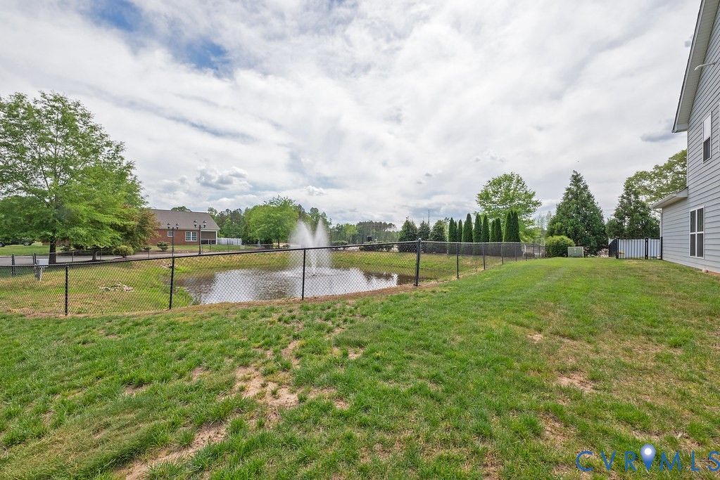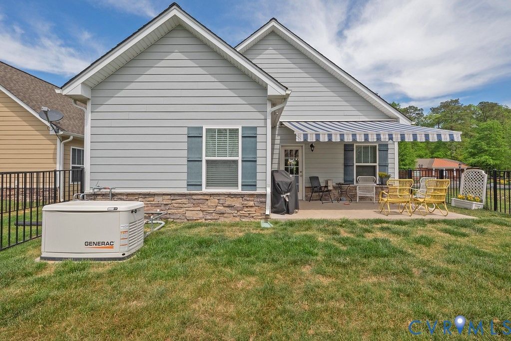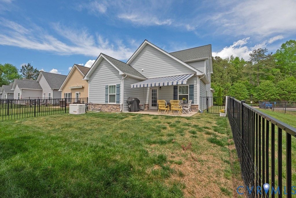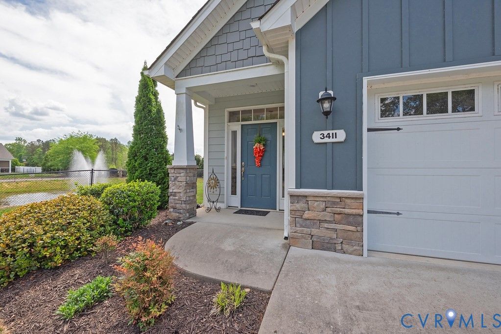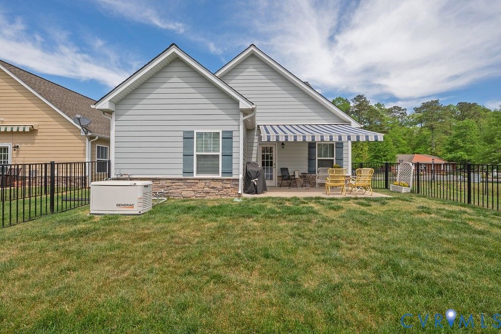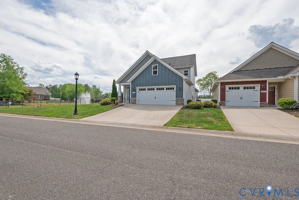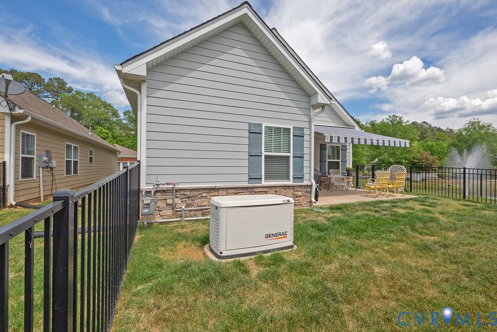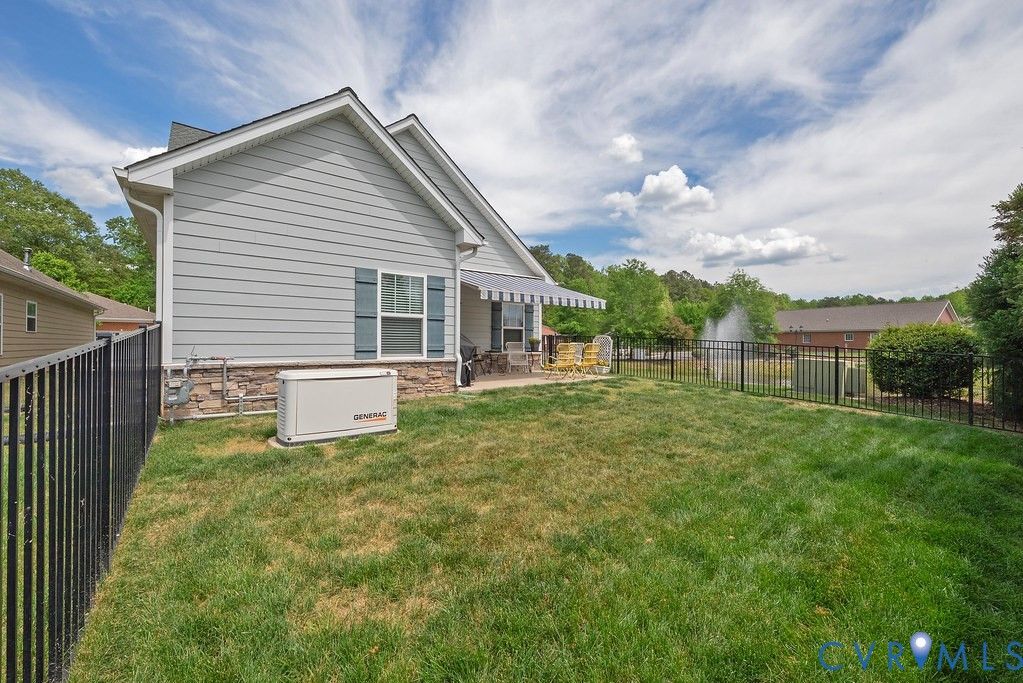 Welcome to this beautifully upgraded former model home nestled in a desirable 55+ active adult community! Perfectly situated beside the community Pond, enjoy peaceful mornings with stunning water fountain views right from your dining room window! This spacious home offers 4 bedrooms and 3 full baths, featuring an open and inviting floor plan with 9-foot ceilings on the first level and gleaming hardwood floors. The well-appointed kitchen has a large island, granite countertops, stone backsplash, gas cooking, and a pantry—seamlessly opening to the dining area and family room with a cozy gas fireplace. The first-floor primary suite offers a beautifully tiled shower with built-in seat, a spacious walk-through closet, and direct access to the laundry room. A second bedroom and full bath are also located on the main level. Upstairs, you’ll find two additional spacious bedrooms, a full bath, and a second family room/Office/Flex Room, complete with a large game/storage closet—perfect for guests or additional living space. Additional highlights include a 2-car attached garage, whole-house generator, walk-out patio with retractable sun awning, and a fenced rear yard ideal for pets. But that Fountain steals the show! Enjoy low-maintenance living with community amenities that include a clubhouse with a fully stocked kitchen, fitness center, outdoor patio seating, gazebo, plus trash and snow removal. Conveniently located within walking distance to shops and restaurants, near the new VCU emergency facility, wineries, and golf courses. Easy access to Interstate 64, just off Route 60, with quick drives to both Richmond and Williamsburg. Don’t miss this rare opportunity to enjoy comfort, convenience, and scenic living all in one!
