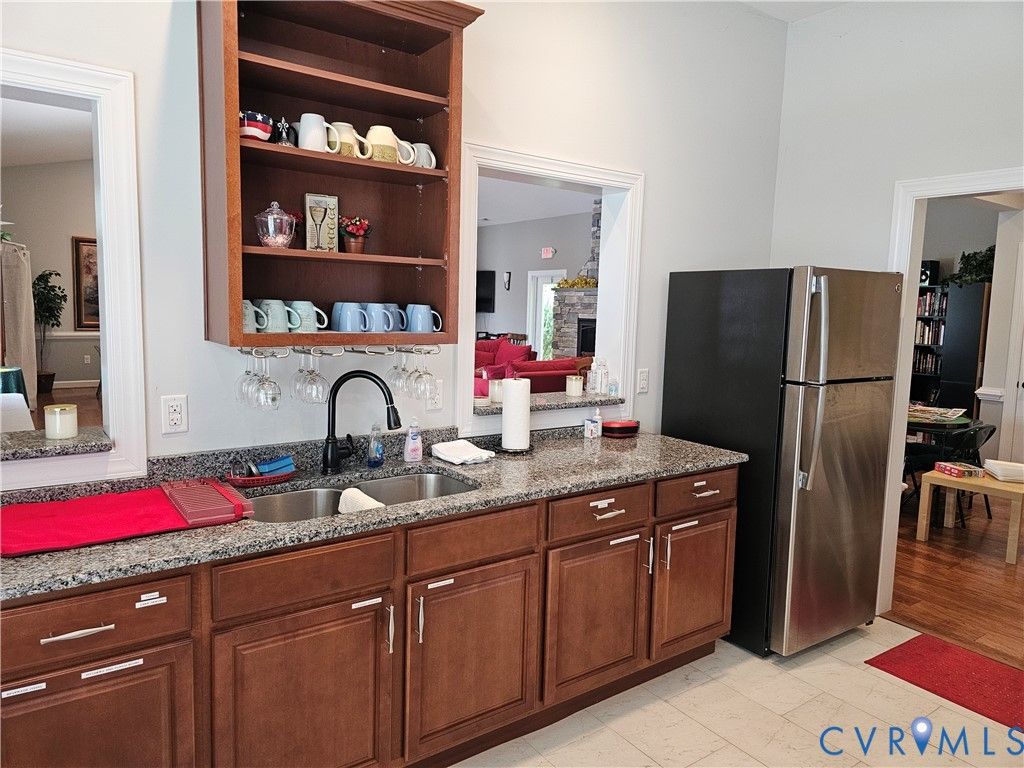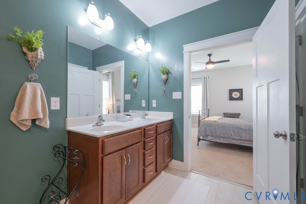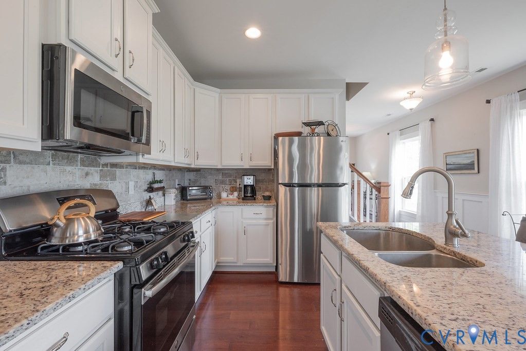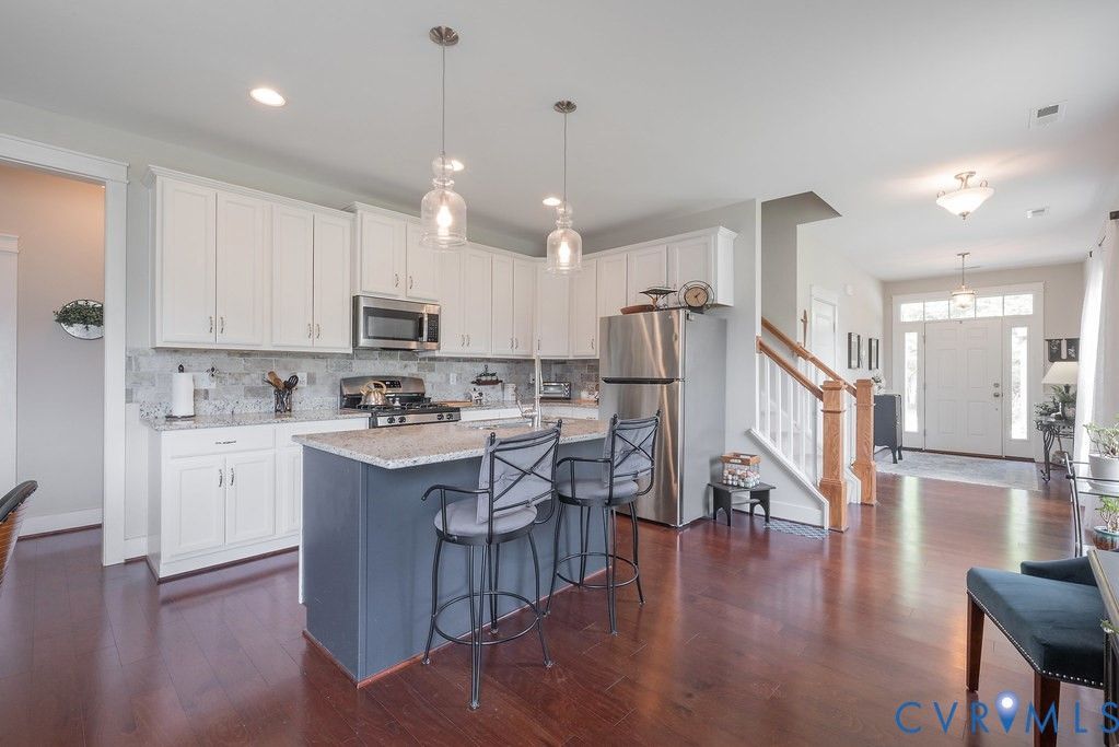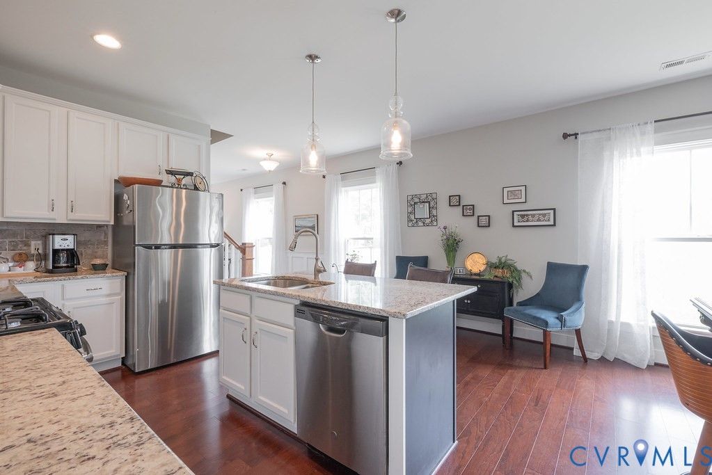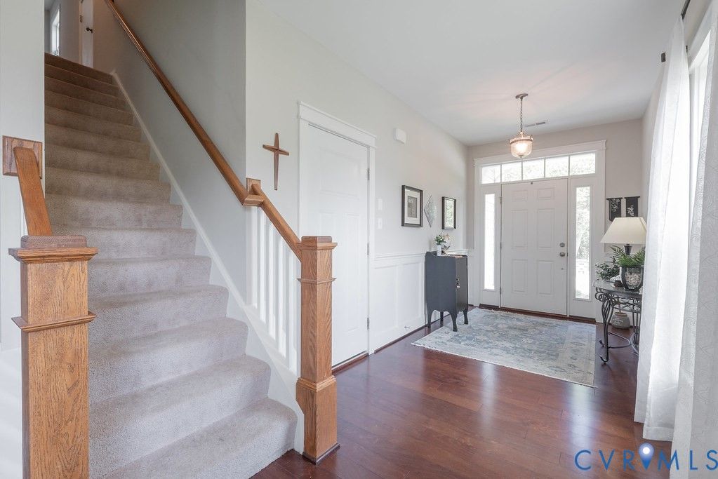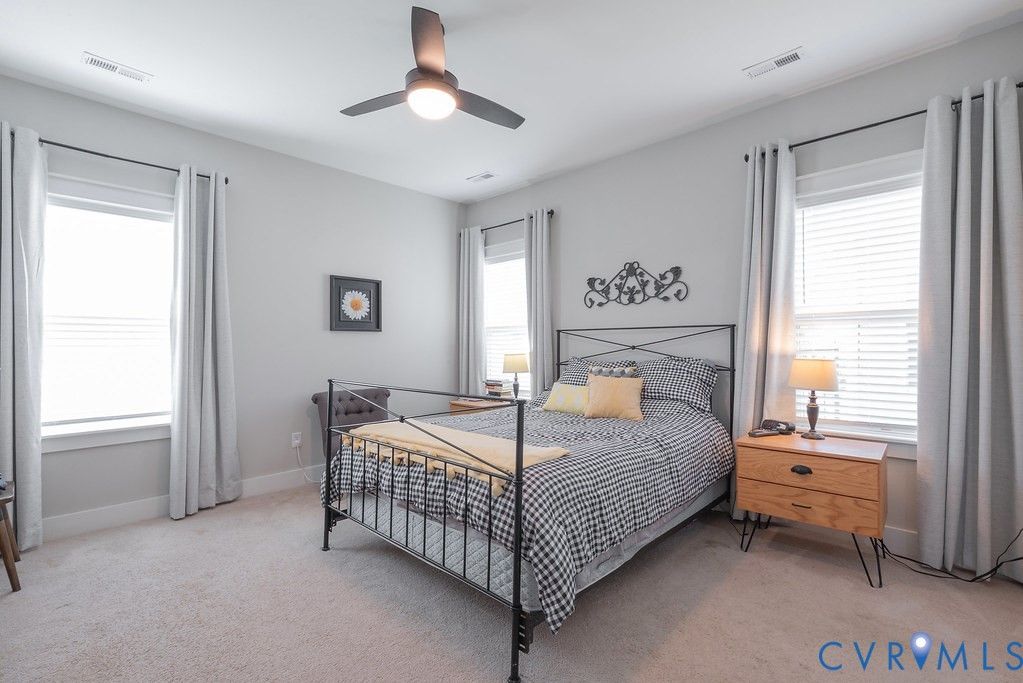 Welcome to this beautifully upgraded former model home nestled in a desirable 55+ active adult community! Perfectly situated beside the community Pond, enjoy peaceful mornings with stunning water fountain views right from your dining room window! This spacious home offers 4 bedrooms and 3 full baths, featuring an open and inviting floor plan with 9-foot ceilings on the first level and gleaming hardwood floors. The well-appointed kitchen has a large island, granite countertops, stone backsplash, gas cooking, and a pantry—seamlessly opening to the dining area and family room with a cozy gas fireplace. The first-floor primary suite offers a beautifully tiled shower with built-in seat, a spacious walk-through closet, and direct access to the laundry room. A second bedroom and full bath are also located on the main level. Upstairs, you’ll find two additional spacious bedrooms, a full bath, and a second family room/Office/Flex Room, complete with a large game/storage closet—perfect for guests or additional living space. Additional highlights include a 2-car attached garage, whole-house generator, walk-out patio with retractable sun awning, and a fenced rear yard ideal for pets. But that Fountain steals the show! Enjoy low-maintenance living with community amenities that include a clubhouse with a fully stocked kitchen, fitness center, outdoor patio seating, gazebo, plus trash and snow removal. Conveniently located within walking distance to shops and restaurants, near the new VCU emergency facility, wineries, and golf courses. Easy access to Interstate 64, just off Route 60, with quick drives to both Richmond and Williamsburg. Don’t miss this rare opportunity to enjoy comfort, convenience, and scenic living all in one!