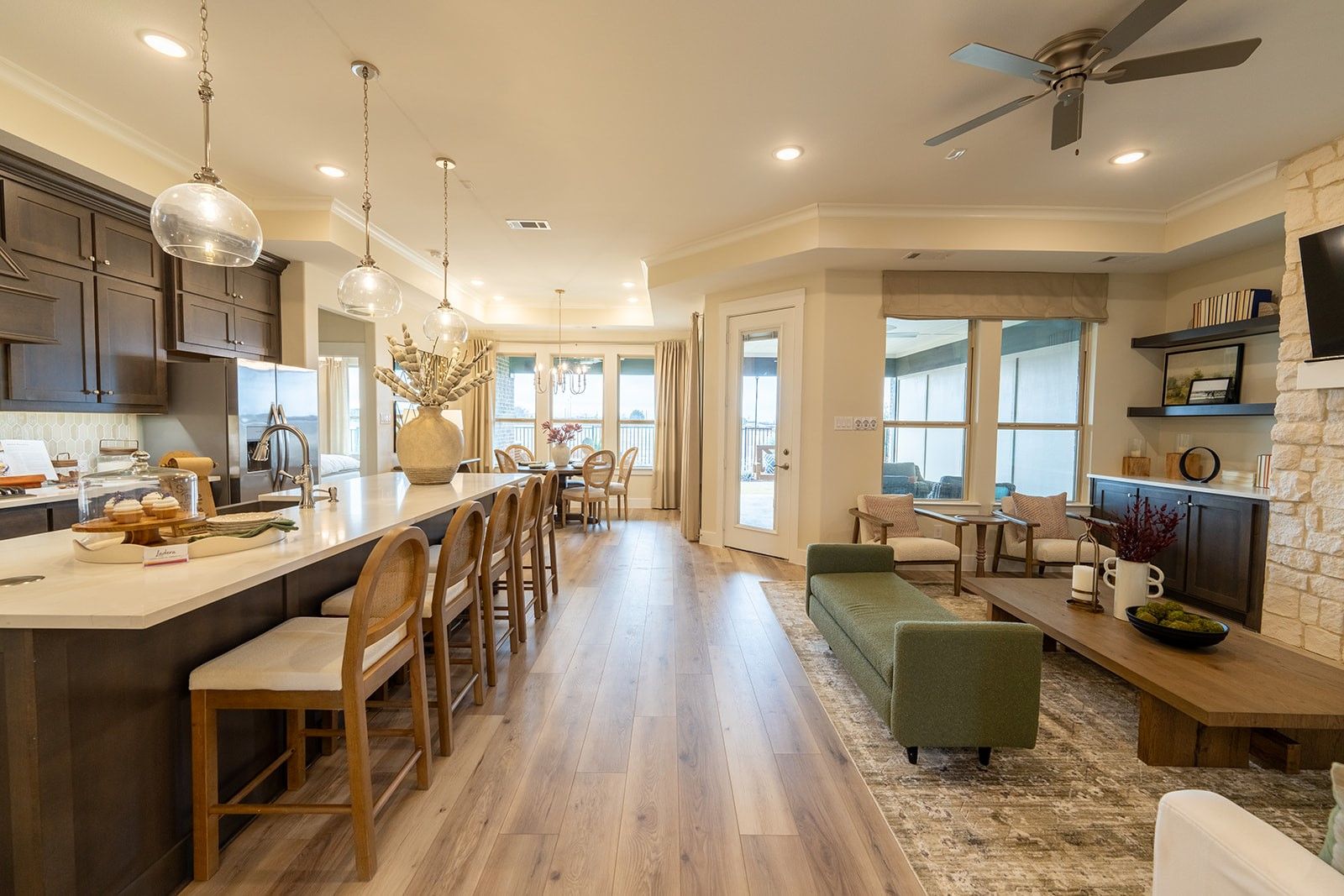 Description: Luxury awaits in this stunning Builders Model Home, located in Little Elm's brand new active 55+ gated community. Offered fully furnished with all appliances, this residence provides a seamless, turn-key living experience. The Verona is an incredible expansive home with features built to your exact specifications. With plenty of room for your oversized sofas, large dining room table, & room to spare, this elegant & wide open home allows you to easily & comfortably host friends & family. The home is loaded with high-end upgrades, including upgraded laminate flooring throughout the main living area. The gourmet kitchen is a chef's delight, boasting upgraded quartz countertops, an extended island with breakfast bar seating, a farmhouse sink, under-cabinet lighting, a 5-burner gas cooktop, a walk-in pantry, and a convenient butler's pantry. The adjacent extended living area, bathed in natural sunlight, features a cozy gas log fireplace, beautiful stained ceiling beams and opens to a large covered patio. The owners retreat is secluded for privacy & features his & her vanities, a walk-in shower with title seat & a large walk-in closet & ends at the spacious utility room with built in cabinets. The guest suite & a home office are located at the opposite end of the home. Enjoy your morning coffee outdoors on the covered patio. The mud room with built in bench, leads to the oversized garage. Enjoy the ultimate lock-and-leave lifestyle, with the HOA taking care of all front and back yard maintenance. The community offers exceptional amenities, including a clubhouse, fitness center, pickleball courts, a pool, an outdoor grilling area, a fire pit, a wellness center, and walking trails. This is a great investment opportunity, builder will need a 3 year lease back, under great terms.