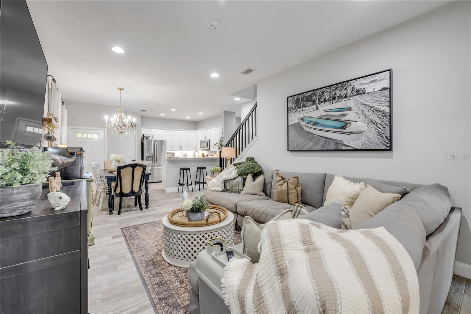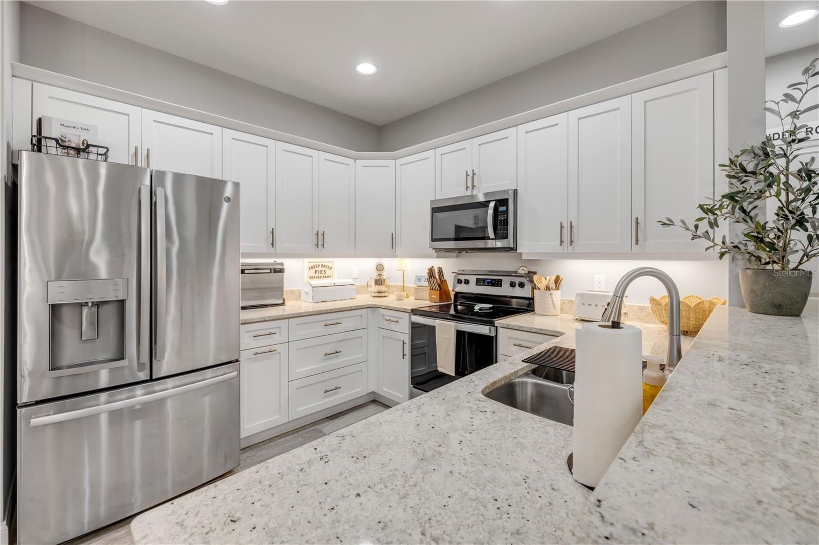 This like-new 4-bedroom, 4-bathroom townhome offers a perfect blend of style, space, and functionality. The exterior showcases charming architecture with covered porches and balconies, manicured landscaping, and a welcoming streetscape that sets the tone from the moment you arrive. Inside, the home features a bright, open-concept living area with neutral tones, recessed lighting, and durable flooring that flows seamlessly throughout the main level. The living room is spacious and inviting, ideal for everyday living or entertaining, and opens effortlessly to the dining area and kitchen. The kitchen is both stylish and practical, featuring white cabinetry, granite countertops, stainless steel appliances, and ample prep and storage space. A functional layout makes cooking and hosting easy, while the adjacent dining area adds convenience and flexibility. Each bedroom is generously sized, offering comfort and privacy, with multiple en-suite or nearby bathrooms that have been tastefully updated with modern vanities, clean finishes, and contemporary fixtures. Ceiling fans and abundant natural light enhance the comfortable feel throughout the home. Enjoy outdoor living at its best with covered balconies and porches, perfect for morning coffee or relaxing evenings, some offering peaceful views of green space and the surrounding community. Additional highlights include a dedicated laundry room with built-in storage, well-maintained interiors, and thoughtful details throughout that reflect pride of ownership. This move-in-ready home combines low-maintenance living with modern design and versatile spaces, making it an excellent option for a primary residence, second home, or investment opportunity.
