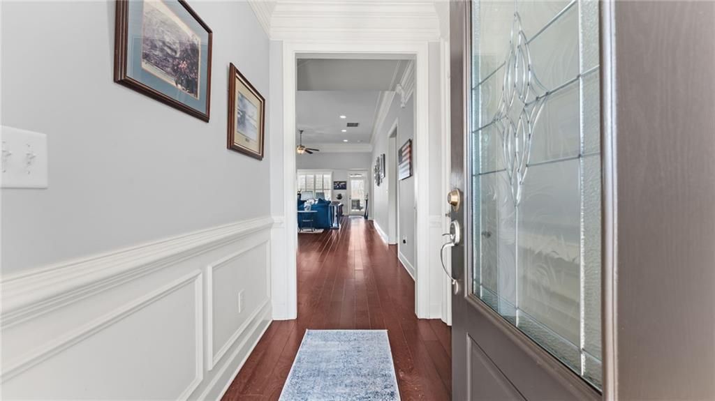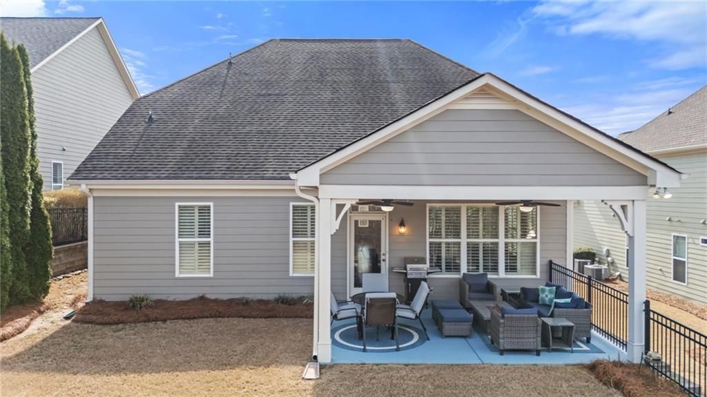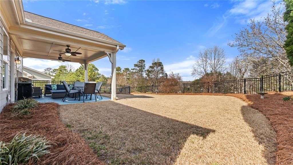 Cypress Floor Plan. Outstanding 55+ senior award winning resort style living. Immaculate 3 bedroom 3 bath with 3rd bedroom and 3rd bath upstairs or can be used as a media/bonus room. Bonus room has separate HVAC system. Interior of home recently painted and exterior of home painted in 2021. Wood floors, triple crown molding throughout living area, plantation shutters, and wainscoting accentuating the dining room area are just a few of the elegant details in this home. The owner's suite has a trey ceiling and custom his/her closets. The guest room has a private entrance to bathroom. Study/office/den is off of the hallway enclosed with glass French doors. The laundry room has a sink, cabinets and is spacious. Chef's kitchen has lots of cabinets with pull out drawers, breakfast area, island , Curio cabinets with glass doors and under cabinet lighting. Gas Range is recently installed. Kitchen overlooks the great room and breakfast bar. The great/family/living room is larger due to extra interior footage added to the home adding space for gathering/living area. Fireplace is a cozy addition to the room. Recessed lighting with dimmer in living room and owner's bedroom plus ceiling fans throughout. The back porch, 18' x 13.6", is covered and has two outdoor fans and a gas outlet for grill or other purposes. The backyard is level with wrought iron fencing , fruit trees and private with steps to lower yard. The two car garage is extended for a larger vehicle such as a pick up truck. There are cabinets, a work bench , refrigerator and additional lighting in the garage.. Cresswind at Lake Lanier offers indoor pool, spa, fitness center, kayaking, fishing, boating, a courtesy dock for boating visitors, over 120 clubs, all types of entertainment and fun events. Sit on the expanded dock and watch the sun go down or just enjoy the peacefulness with your favorite beverage and some hors d'oeuvres. Near major stores and historic Gainesville town center with eateries and boutique shops! Something for everyone!!