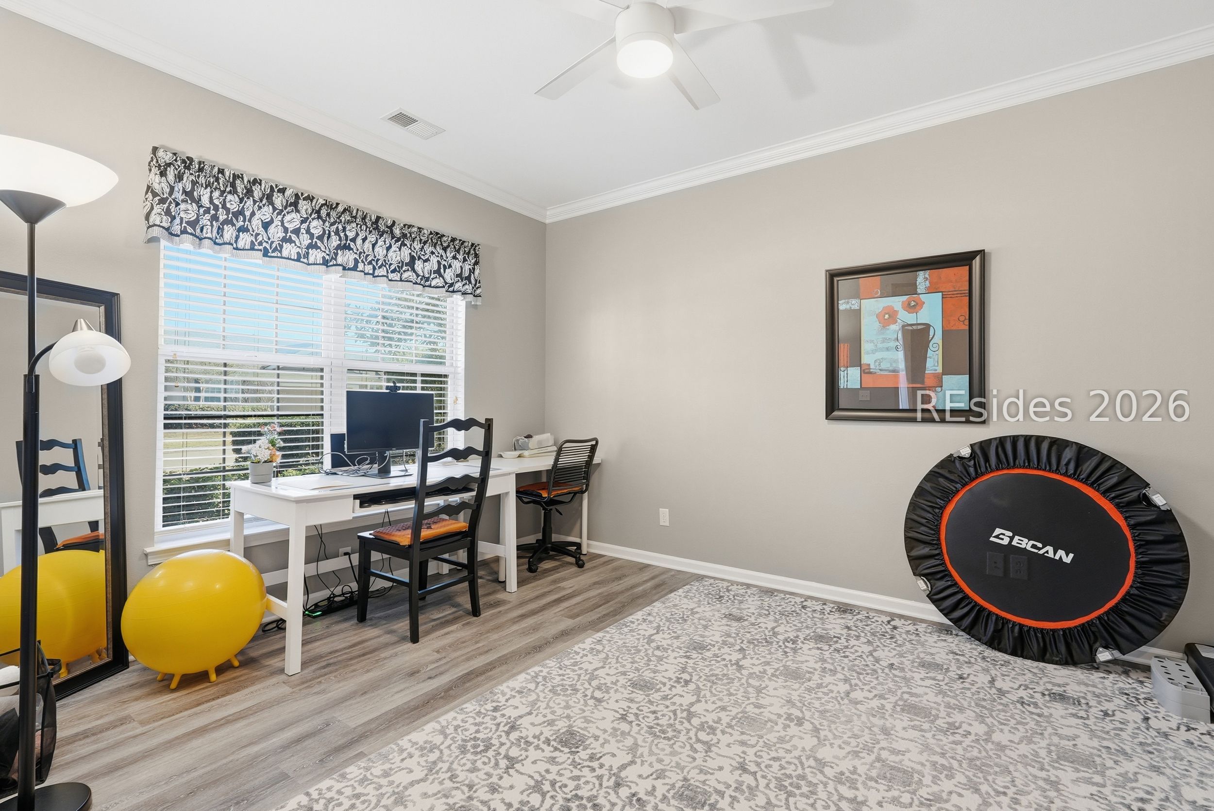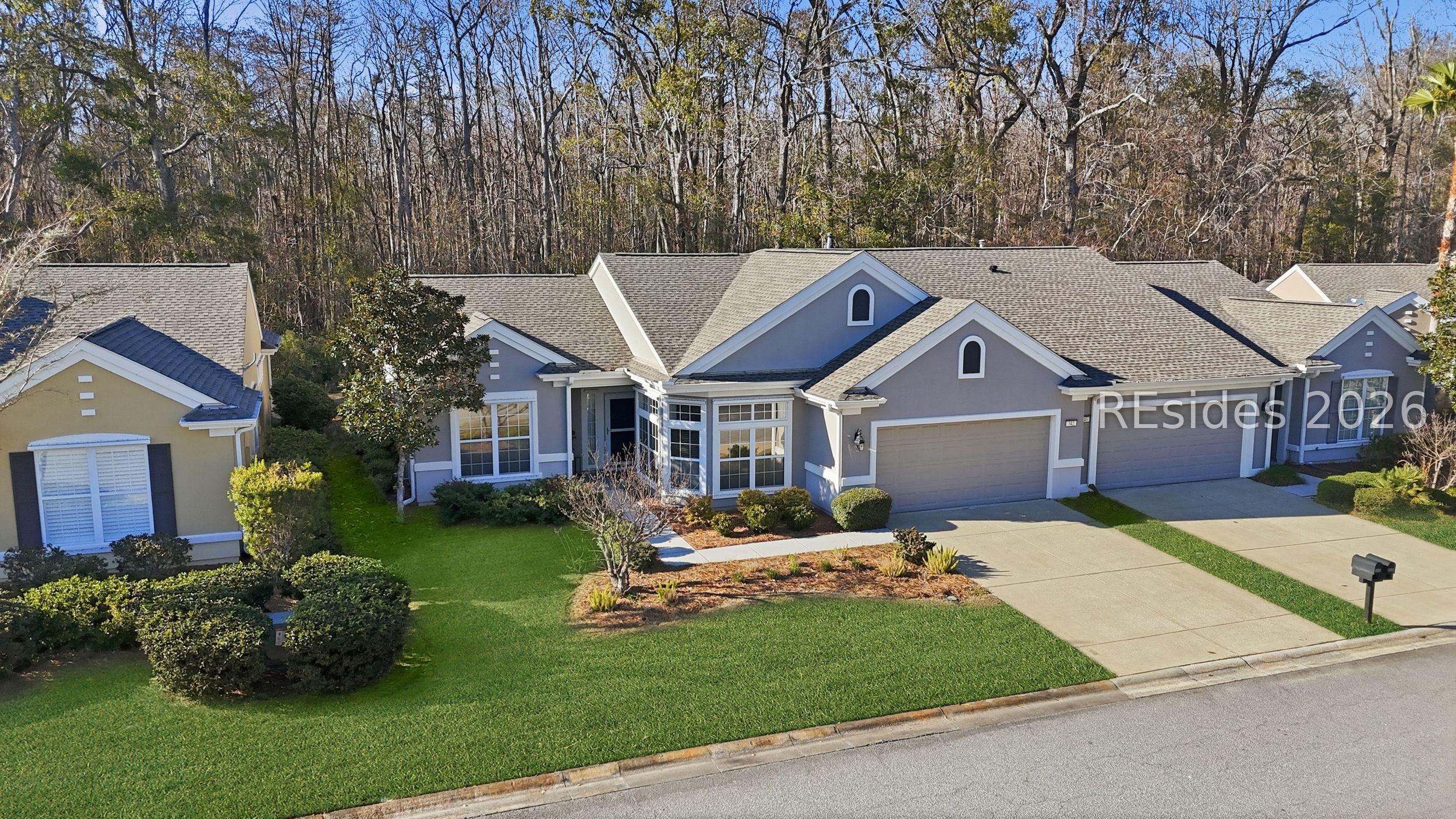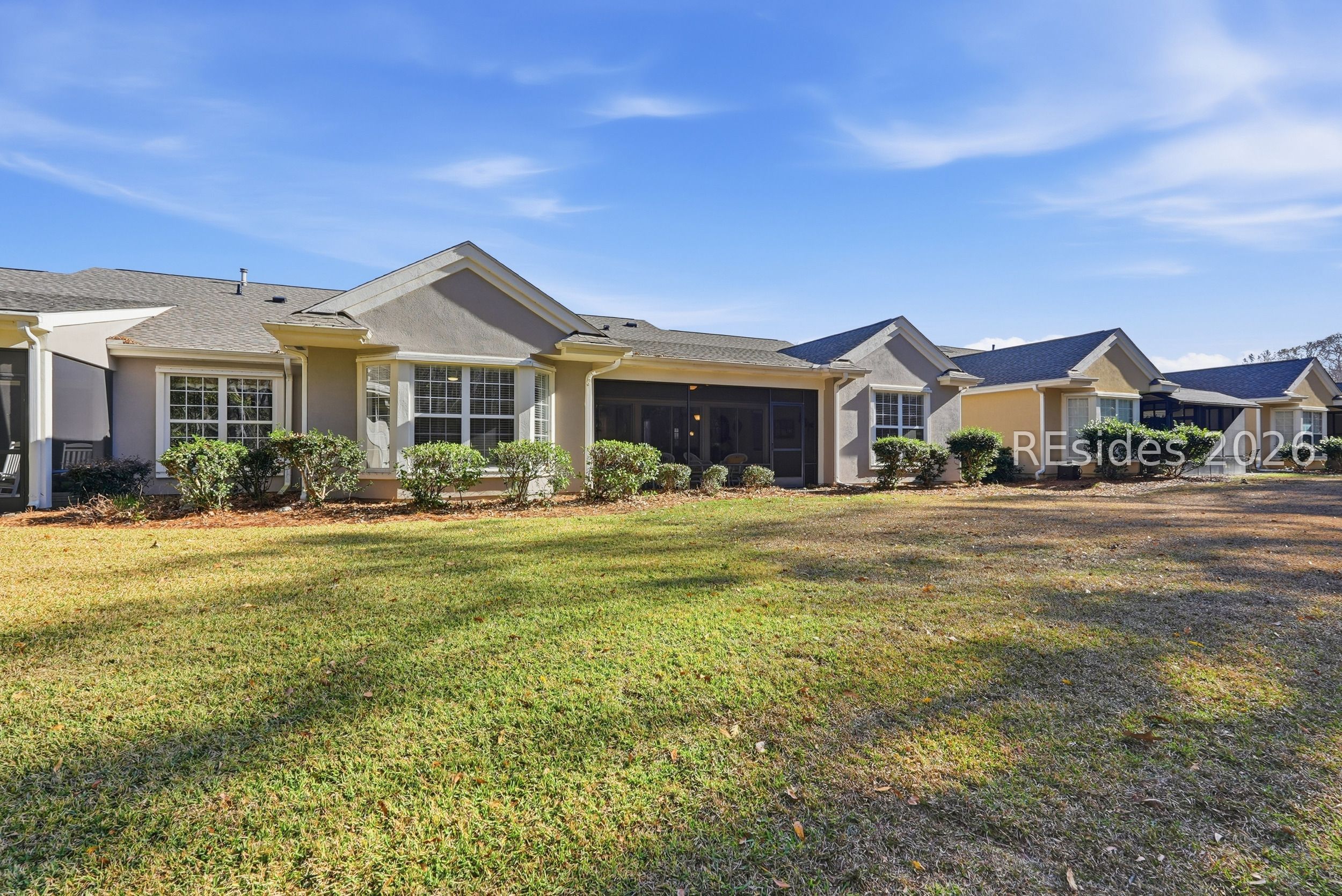 Imagine easy, carefree living in Sun City Hilton Head, one of the Lowcountry's most sought-after 55+ communities. This nearly 2,000 sq ft Starling Villa offers 3 bedrooms, 2 bathrooms, plus a flex/office space, giving you plenty of room to relax, host guests, or pursue hobbies in retirement. As part of a managed villa neighborhood, the lifestyle here is truly low-maintenance. Lawn care, basic landscaping, irrigation, exterior power washing, roof reserves, and more are all included-and villa fees are decreasing in 2026, making this an even more attractive option for worry-free living. Inside, the open and airy floor plan is perfect for everyday comfort and entertaining. The gourmet kitchen features an expanded breakfast nook with abundant windows and eat-in counters, flowing seamlessly into the spacious living area. Three patio doors lead to a screened lanai, where you can unwind while enjoying peaceful views of the wooded backyard-a rare and tranquil setting. The primary suite is a true retreat, with an extended bay area ideal for reading or morning coffee, all overlooking the natural landscape. The updated ensuite bathroom includes a large walk-in shower and a generous walk-in closet. Two additional bedrooms are thoughtfully placed on the opposite side of the home for privacy, while the flex room adds even more versatility. With current part time owners this villas use is far less then its age. HVAC & Hot Water Heater updated 2025 and newer roof. Beyond the home, Sun City Hilton Head offers an unmatched lifestyle with 150+ clubs and groups, plus nearby amenity centers featuring golf, pickleball, tennis, pools, fitness centers, and more. And coming soon is a multi-million-dollar West Amenity Center, highlighted by one of South Carolina's largest outdoor resort-style pools. If you're dreaming of an active, social, and low-stress retirement, second home or investment, this villa is a must-see.