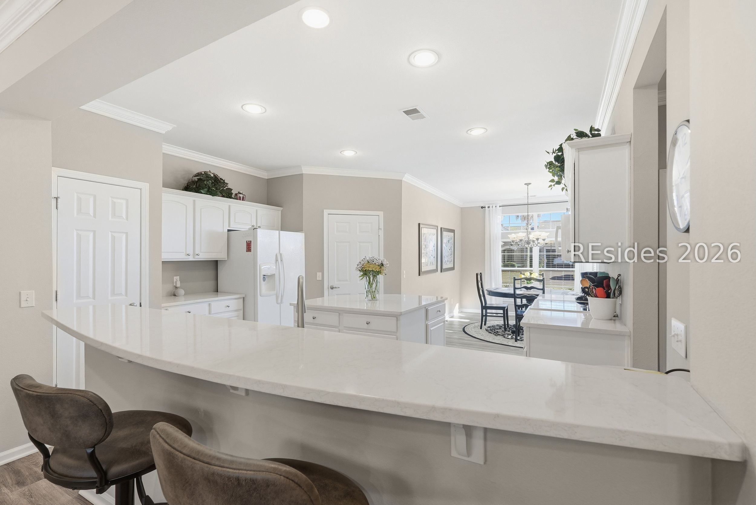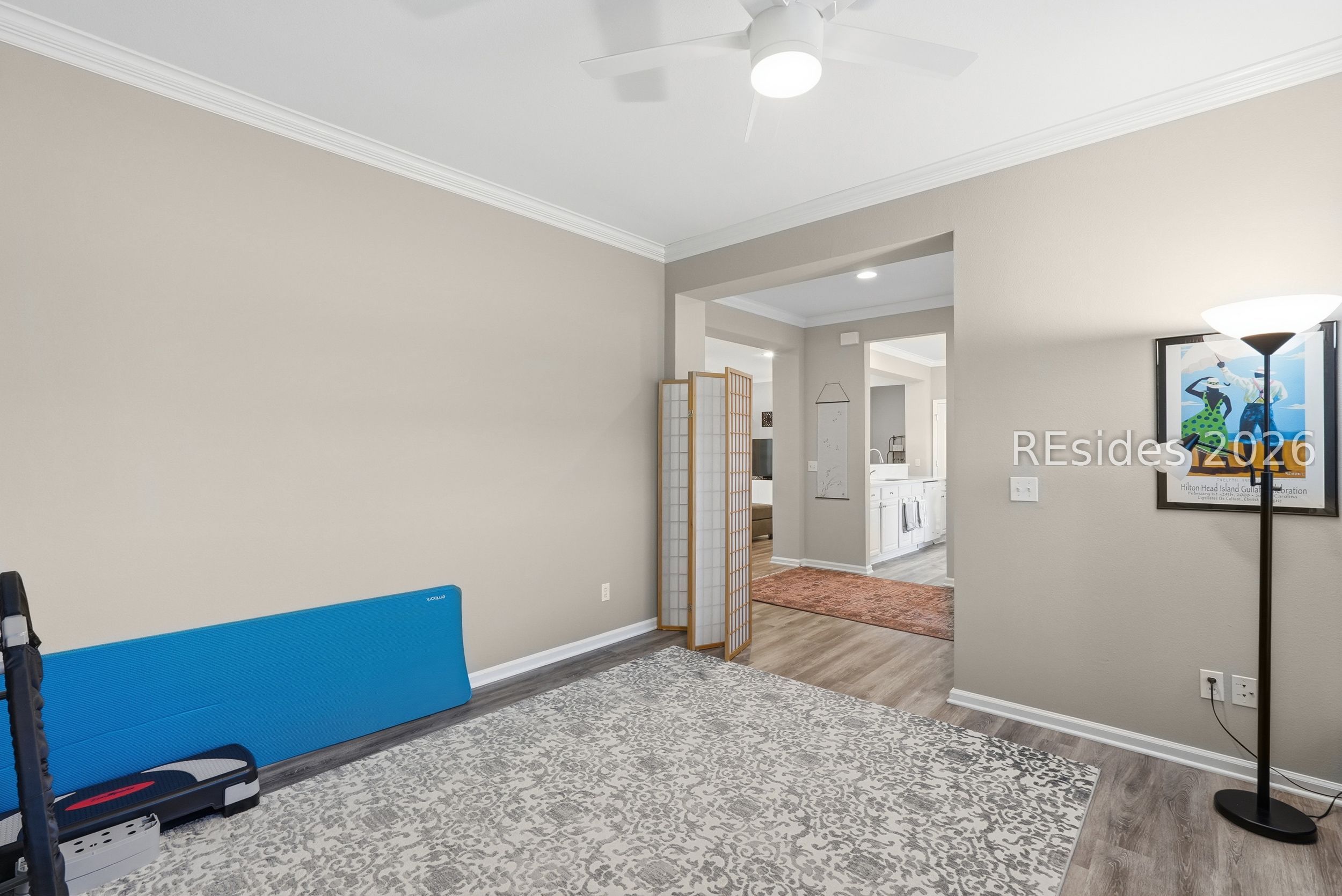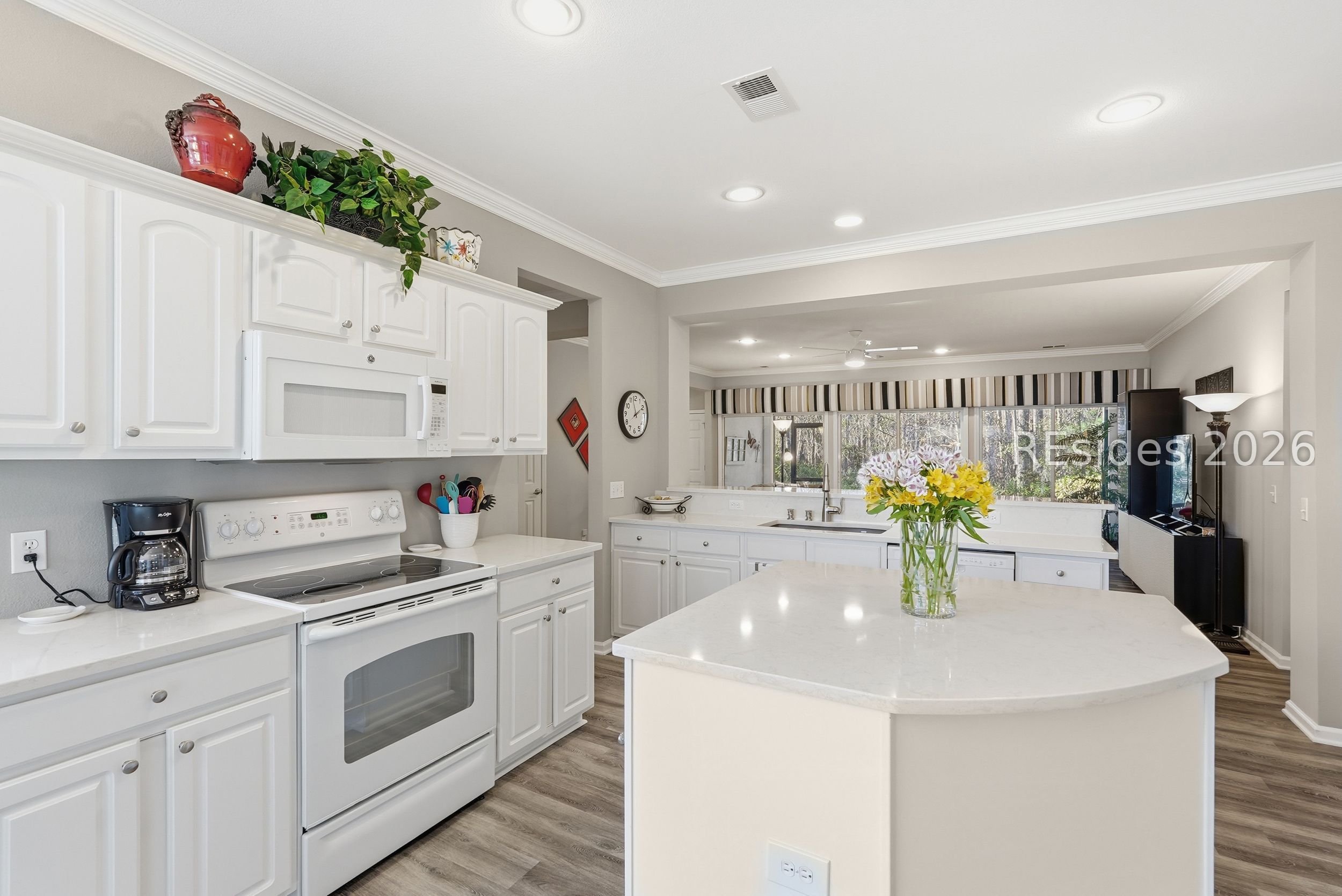 Imagine easy, carefree living in Sun City Hilton Head, one of the Lowcountry's most sought-after 55+ communities. This nearly 2,000 sq ft Starling Villa offers 3 bedrooms, 2 bathrooms, plus a flex/office space, giving you plenty of room to relax, host guests, or pursue hobbies in retirement. As part of a managed villa neighborhood, the lifestyle here is truly low-maintenance. Lawn care, basic landscaping, irrigation, exterior power washing, roof reserves, and more are all included-and villa fees are decreasing in 2026, making this an even more attractive option for worry-free living. Inside, the open and airy floor plan is perfect for everyday comfort and entertaining. The gourmet kitchen features an expanded breakfast nook with abundant windows and eat-in counters, flowing seamlessly into the spacious living area. Three patio doors lead to a screened lanai, where you can unwind while enjoying peaceful views of the wooded backyard-a rare and tranquil setting. The primary suite is a true retreat, with an extended bay area ideal for reading or morning coffee, all overlooking the natural landscape. The updated ensuite bathroom includes a large walk-in shower and a generous walk-in closet. Two additional bedrooms are thoughtfully placed on the opposite side of the home for privacy, while the flex room adds even more versatility. With current part time owners this villas use is far less then its age. HVAC & Hot Water Heater updated 2025 and newer roof. Beyond the home, Sun City Hilton Head offers an unmatched lifestyle with 150+ clubs and groups, plus nearby amenity centers featuring golf, pickleball, tennis, pools, fitness centers, and more. And coming soon is a multi-million-dollar West Amenity Center, highlighted by one of South Carolina's largest outdoor resort-style pools. If you're dreaming of an active, social, and low-stress retirement, second home or investment, this villa is a must-see.