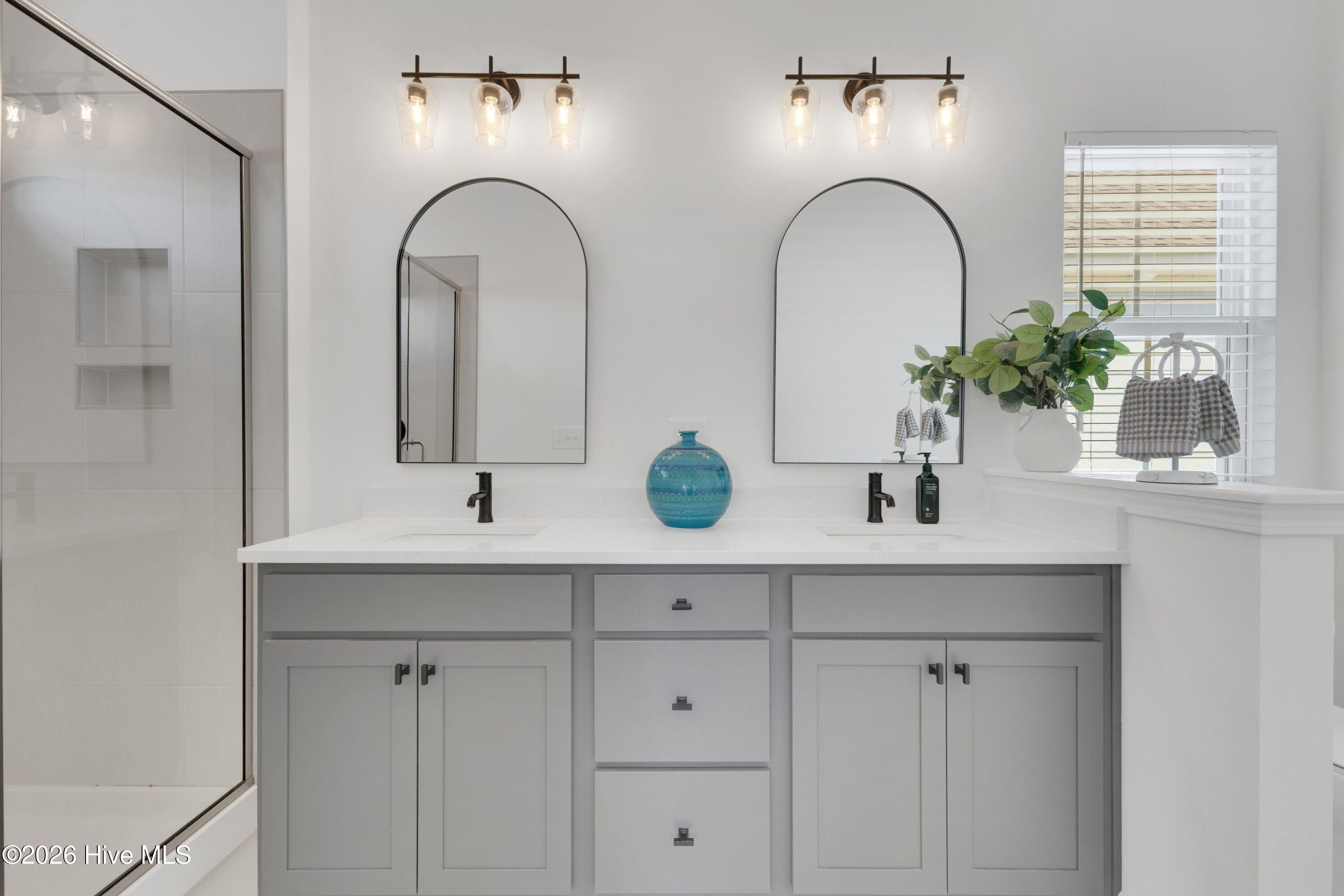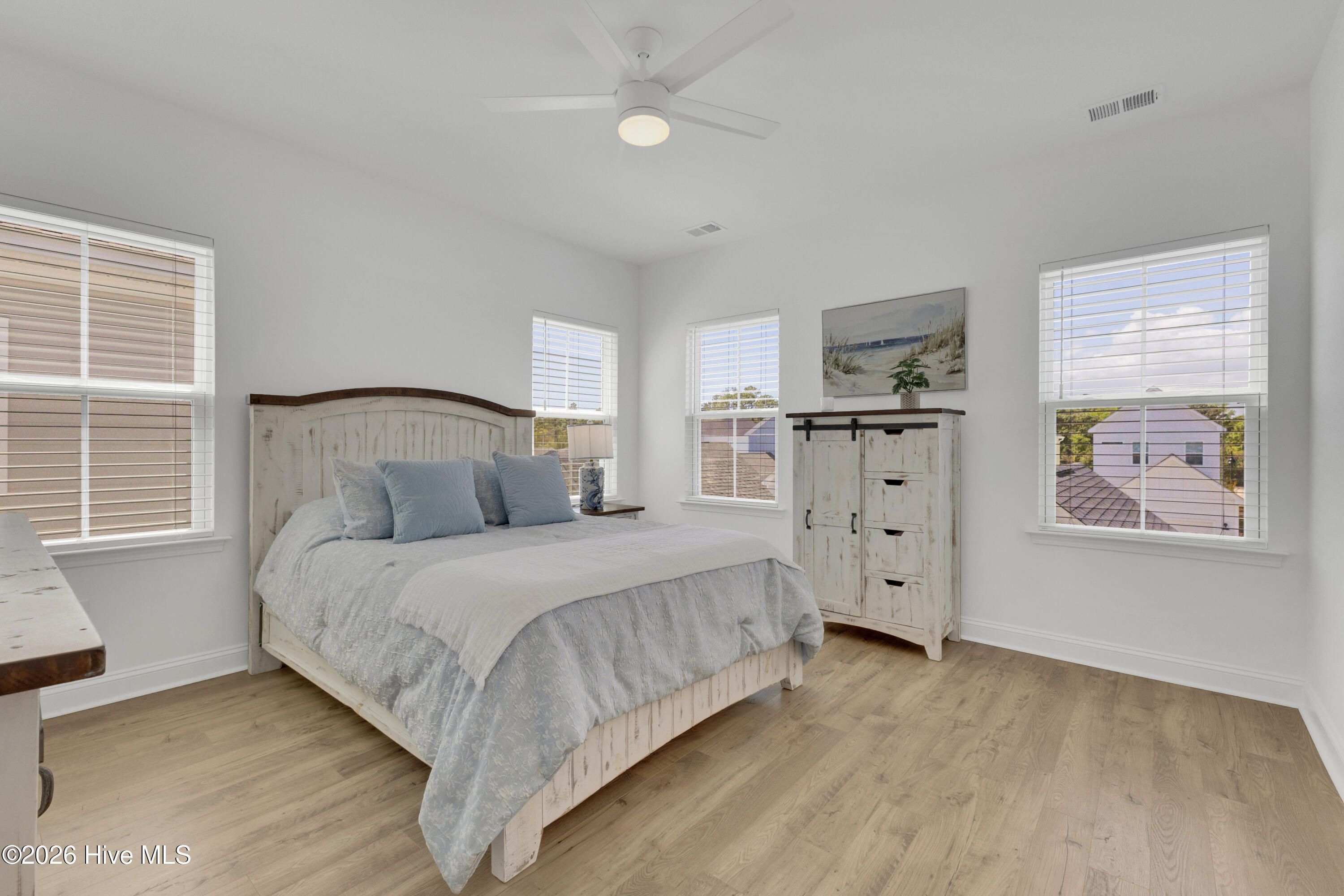 - Walk-In Closet(s), High Ceilings, Kitchen Island, Ceiling Fan(s), Pantry, Walk-In Shower, Blinds