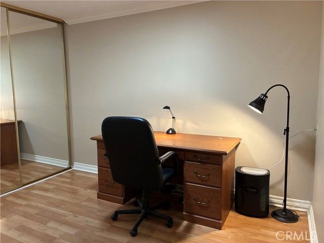 Welcome home to rarely available TOP FLOOR "CASA DORADO" floorplan! VERY SPACIOUS, 988 square feet 1 bedroom, 1 bath with a VERY LARGE BALCONY for year round entertaining. Perched on a hill top in a serene, park-like cul-de-sac, located just 1 block to CLUBHOUSE 5 and short walk to CLUBHOUSE 6. Home has been remodeled over the years featuring many upgrades throughout, including dual pane windows, laminate floors, crown and base moldings, smooth ceilings, neutral paint and more. Unit has an extra long living room with office space and a total of 3 closets, including a walk-in closet in the bedroom. Elevator and laundry room are just steps away. Assigned parking in a subterranean parking garage has several storage cabinets. There is a large recreation room in the garage area for the use of all the building residents and family gatherings. Laguna Woods Village is a fantastic gated golf community. Amenities include swimming pools, tennis courts, 27 hole championship golf course, garden centers, equestrian center, tons of classes: dancing, yoga, exercising, woodworking, painting, jewelry making, ceramics, sewing, table tennis, too much to list! Free bus service is provided to local shops, banks, restaurants, medical facilities, and houses of worship. Adult retirement (55+) at it's best and located just minutes from Laguna Beach and the Pacific Ocean!