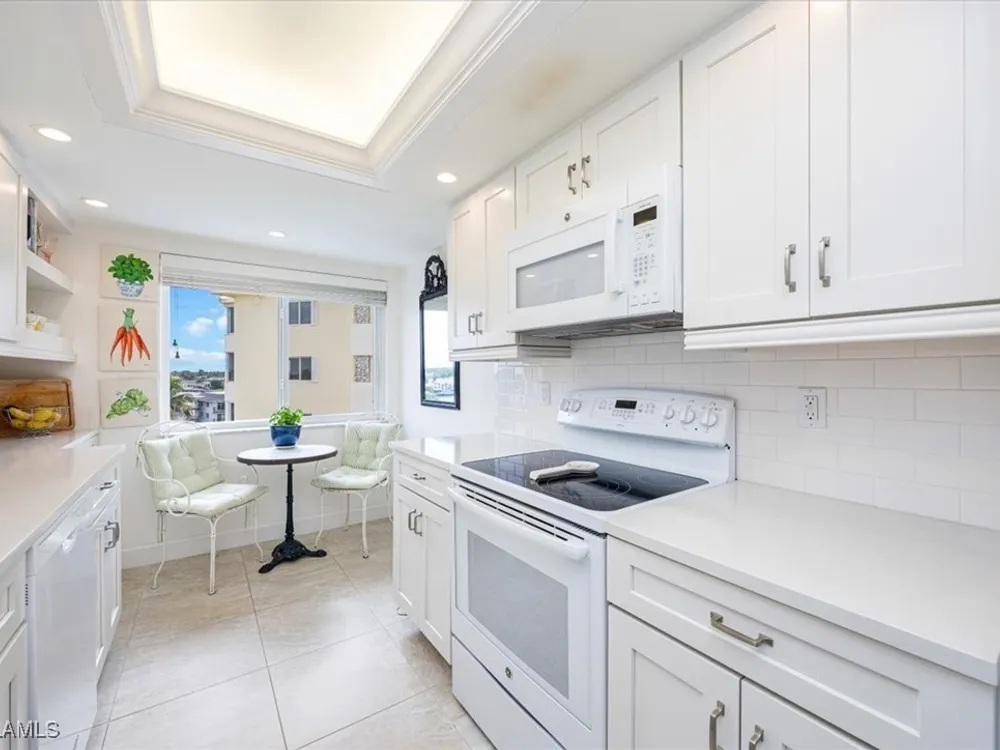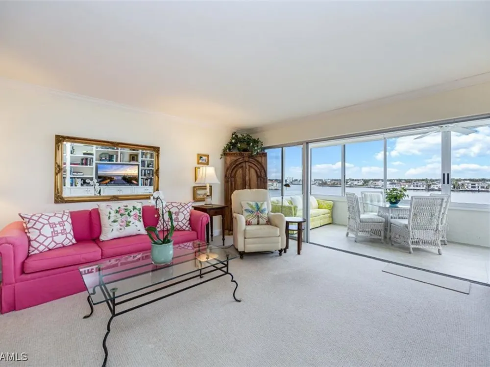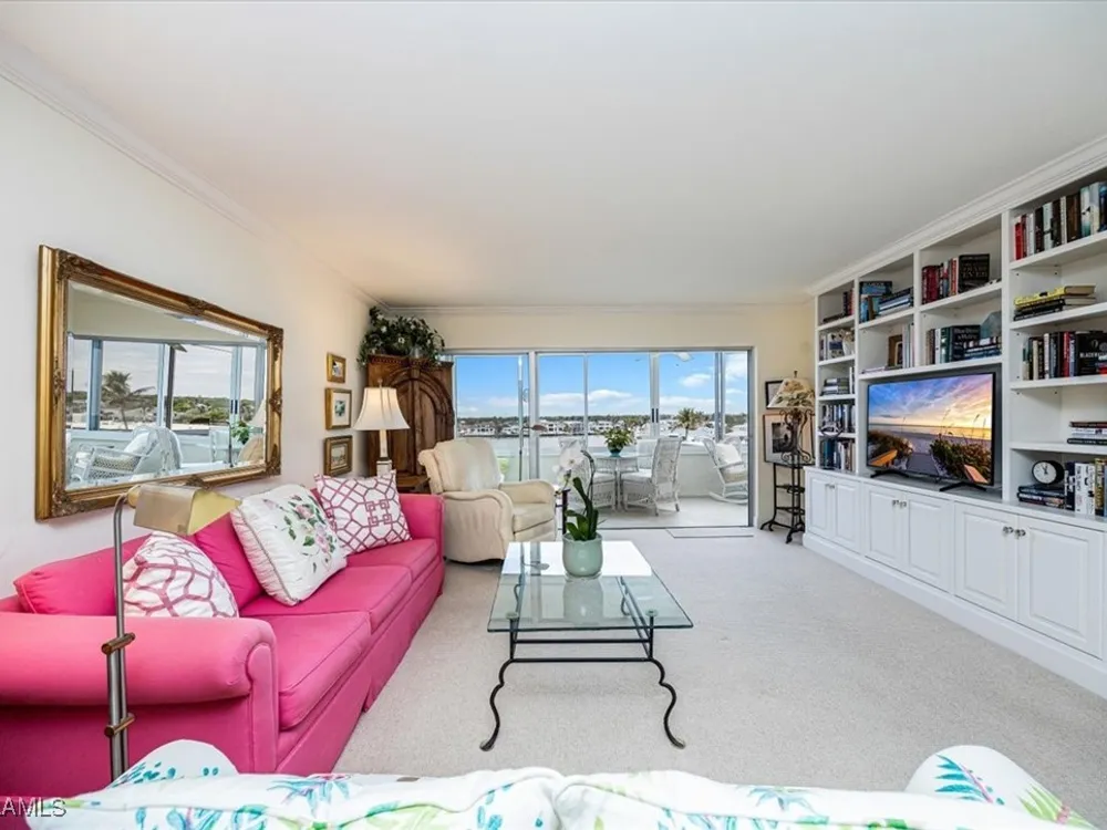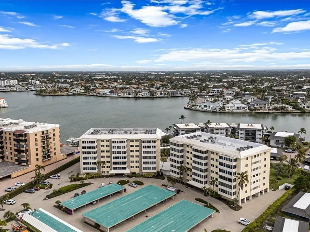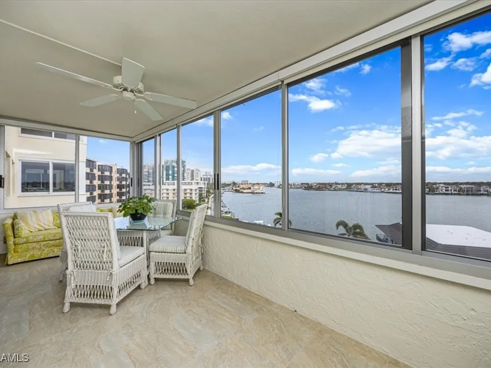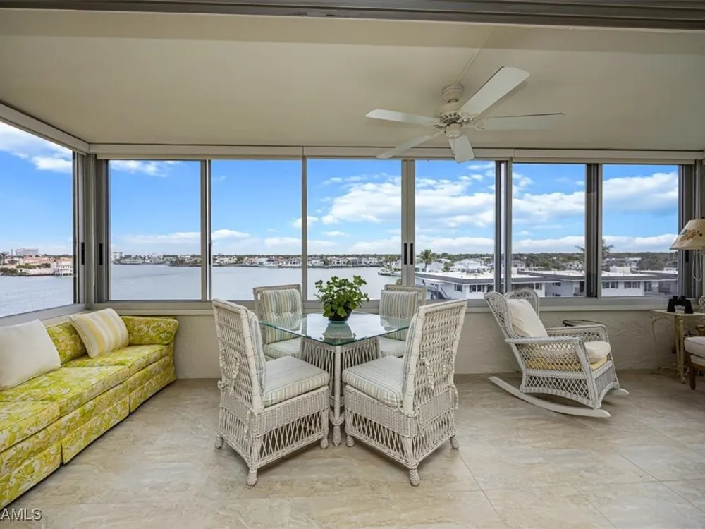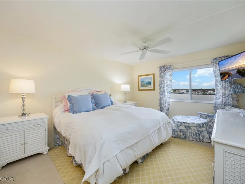 Discover Harborside West, where coastal charm meets modern comfort! This spacious 3-bedroom, 2.5-bathroom condominium comes with 2 deeded parking spaces and encompasses over 1,700 square feet of living space with breathtaking views of Venetian Bay. Step inside to an expansive living room and glass-enclosed lanai, both showcasing stunning postcard-worthy views of the sparkling bay. The bright galley-style kitchen has been thoughtfully updated with modern cabinetry, countertops, appliances, and tiled flooring. The residence features two primary suites, each with en-suite baths and generous closet space, while the versatile third bedroom can serve as a guest room, home office, or den. The lanai, with stackable glass windows, offers year-round enjoyment—perfect for relaxing while watching boats glide by or dolphins play. For added comfort and ease, this unit includes a parking spot in the attached under building garage, a second detached carport space, and a private storage closet! Convenient beach access is located just across the street, making coastal living a breeze. Residents of Harborside West enjoy a host of amenities, including a recently renovated social room, fitness center, hobby room, library, barbecue and picnic areas, fishing pier, resort-style pool, and ample storage facilities. The community also provides bike storage, a vehicle wash area, and sidewalks for leisurely strolls. Located in the sought-after Moorings neighborhood, this condo is steps away from Naples’ pristine beaches and just moments from upscale shopping and dining at Venetian Village. Embrace the best of Florida living in this move-in-ready residence!