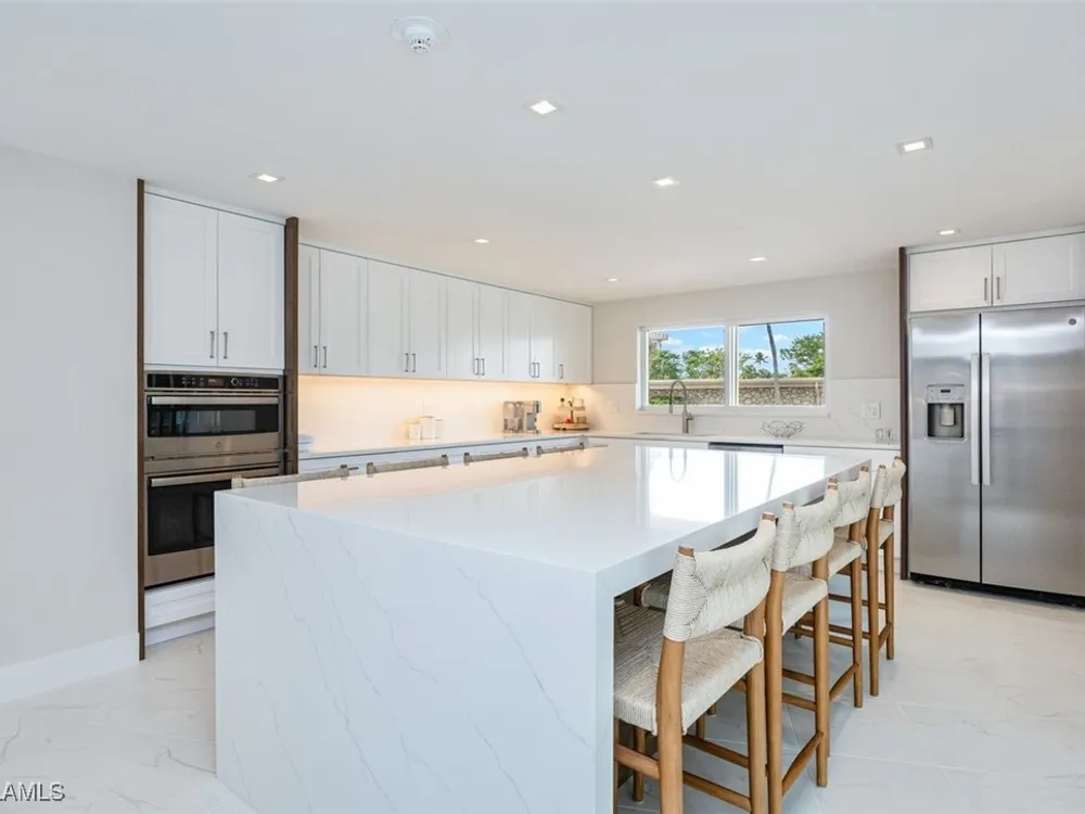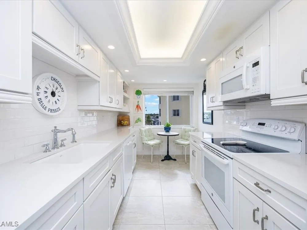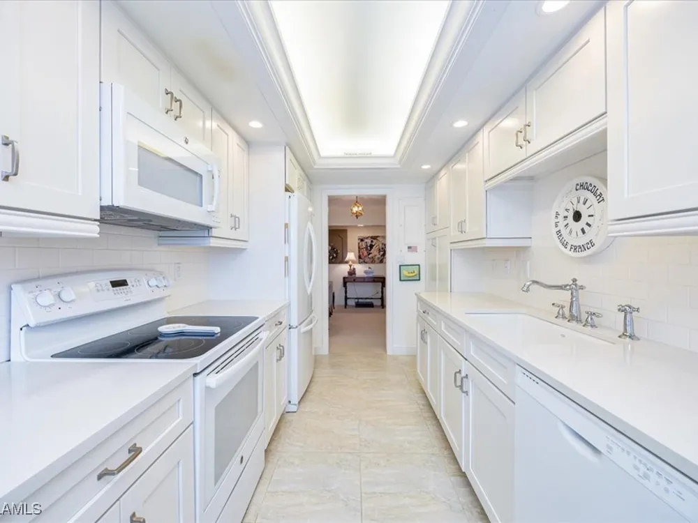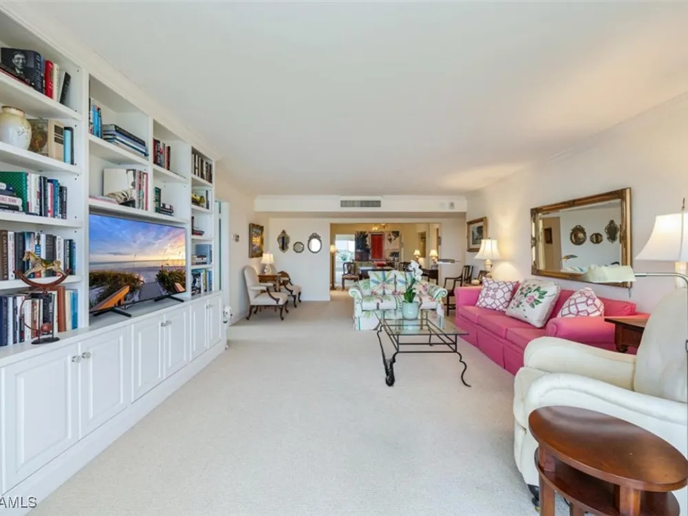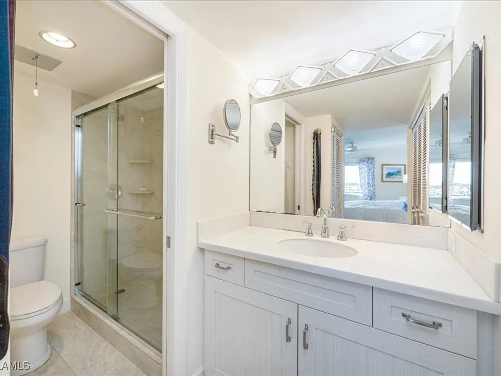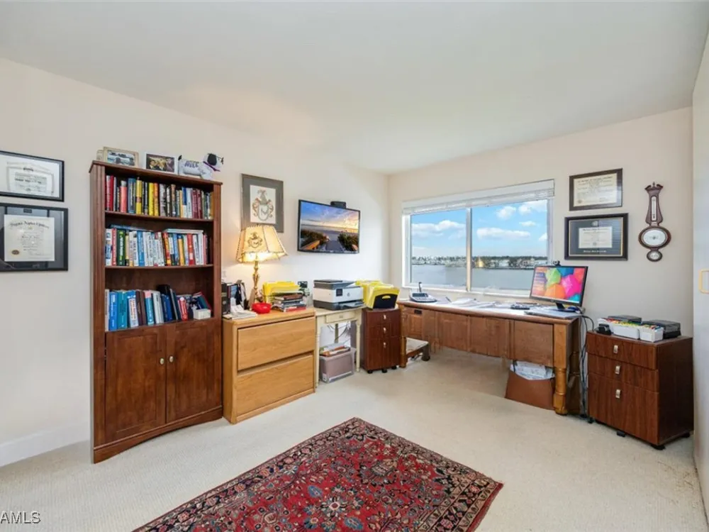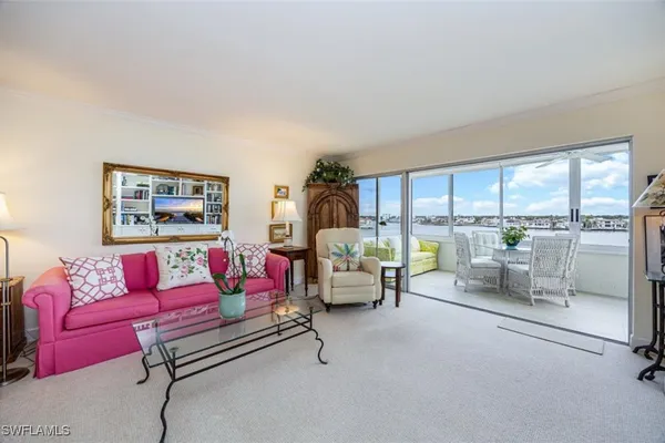 Discover Harborside West, where coastal charm meets modern comfort! This spacious 3-bedroom, 2.5-bathroom condominium comes with 2 deeded parking spaces and encompasses over 1,700 square feet of living space with breathtaking views of Venetian Bay. Step inside to an expansive living room and glass-enclosed lanai, both showcasing stunning postcard-worthy views of the sparkling bay. The bright galley-style kitchen has been thoughtfully updated with modern cabinetry, countertops, appliances, and tiled flooring. The residence features two primary suites, each with en-suite baths and generous closet space, while the versatile third bedroom can serve as a guest room, home office, or den. The lanai, with stackable glass windows, offers year-round enjoyment—perfect for relaxing while watching boats glide by or dolphins play. For added comfort and ease, this unit includes a parking spot in the attached under building garage, a second detached carport space, and a private storage closet! Convenient beach access is located just across the street, making coastal living a breeze. Residents of Harborside West enjoy a host of amenities, including a recently renovated social room, fitness center, hobby room, library, barbecue and picnic areas, fishing pier, resort-style pool, and ample storage facilities. The community also provides bike storage, a vehicle wash area, and sidewalks for leisurely strolls. Located in the sought-after Moorings neighborhood, this condo is steps away from Naples’ pristine beaches and just moments from upscale shopping and dining at Venetian Village. Embrace the best of Florida living in this move-in-ready residence!