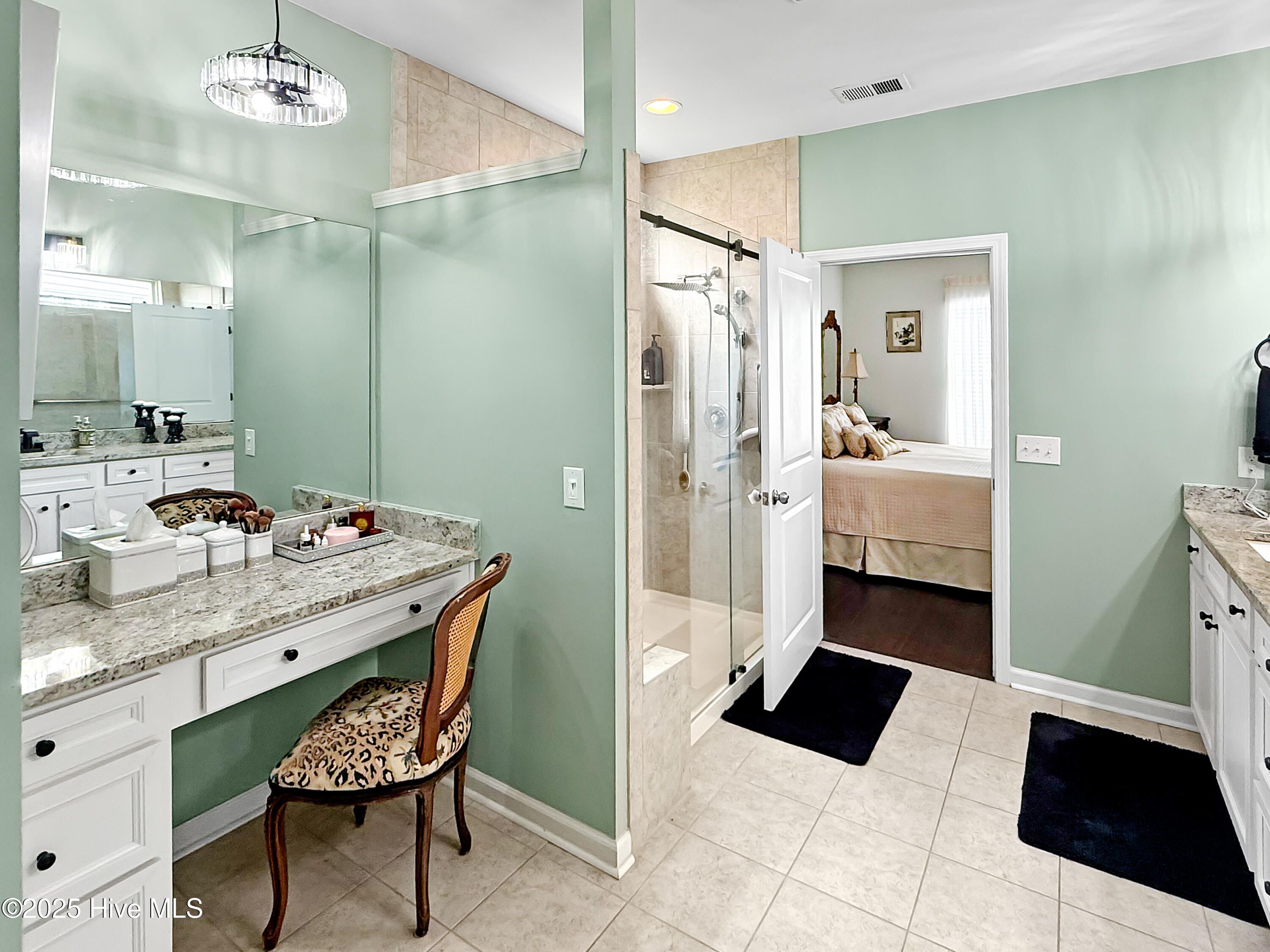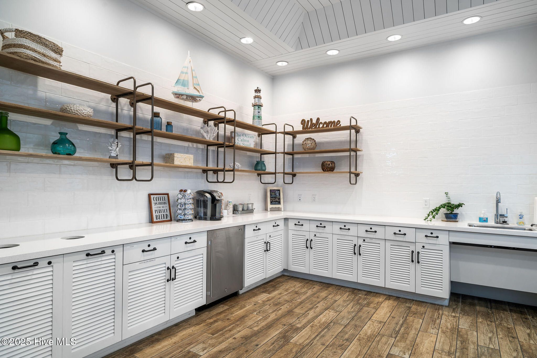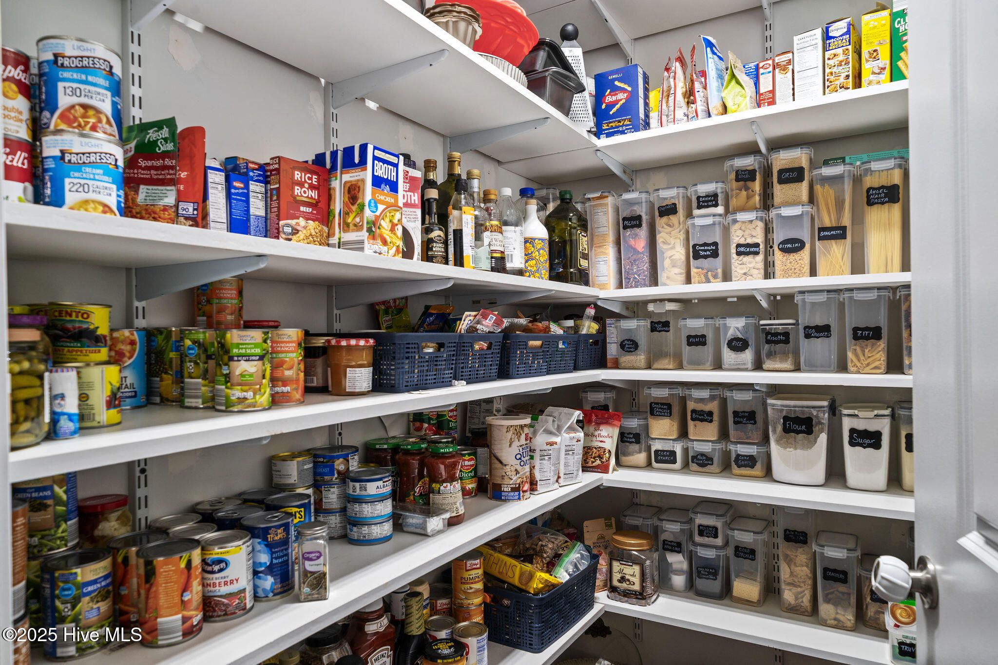 - Blinds/Shades, Solid Surface, Whole-Home Generator, Whirlpool, Wet Bar, Walk-In Closet(s), Walk-in Shower, Vaulted Ceiling(s), Pantry, Entrance Foyer, Master Downstairs, Kitchen Island, High Ceilings, Gas Log, Ceiling Fan(s), Bookcases