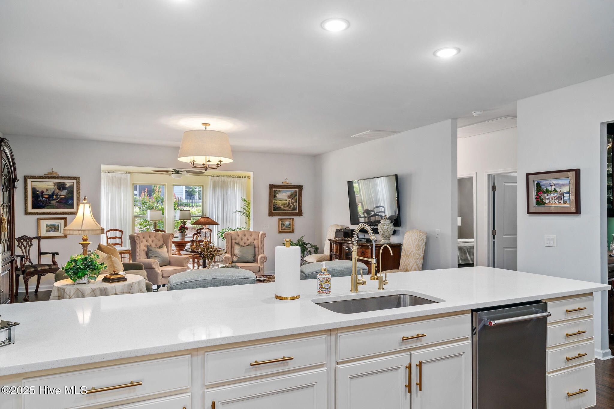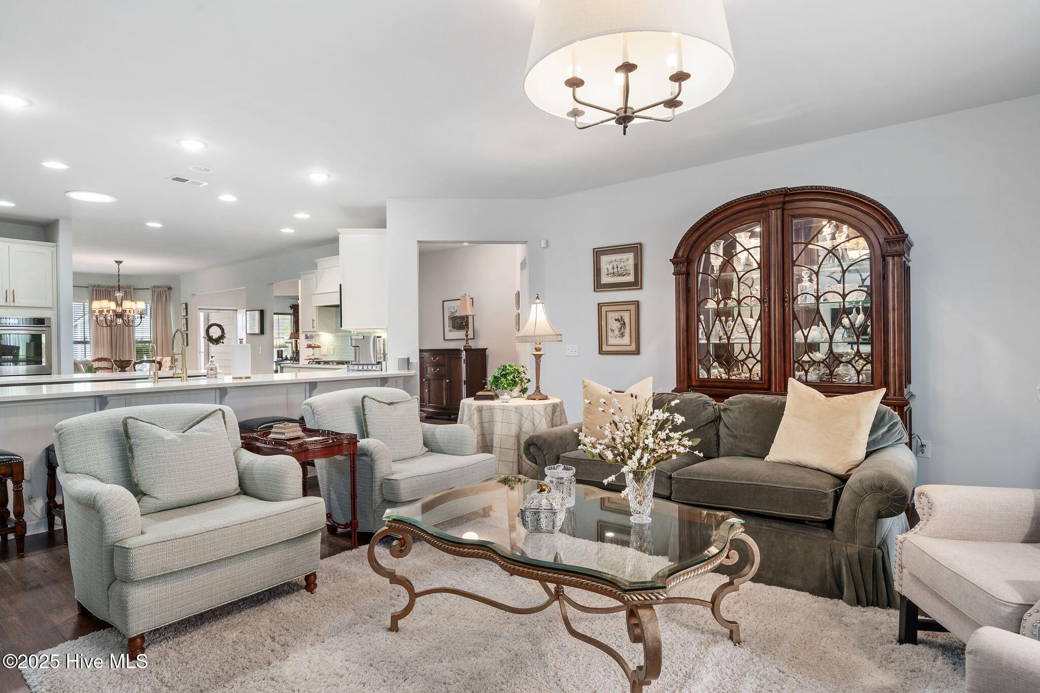 Welcome to this exquisite former model home in the desirable 55+ Del Webb community of Riverlights, showcasing the rare Sonoma Cove floor plan with three bedrooms, 2.5 baths, and over 2,750 square feet of beautifully designed living space. One bedroom is currently being used as an office, offering flexibility for your lifestyle.From the moment you arrive, the mature landscaping and welcoming front entry set the tone for the refined interior. Gleaming hardwood floors flow throughout, and thoughtful upgrades are found at every turn.The heart of the home is a gourmet kitchen equipped with dual ovens, a 5-burner natural gas cooktop, Energy Star stainless steel appliances, and a large walk-in pantry. A solar tube skylight above the expansive center island floods the space with natural light, while the countertop bar provides the perfect gathering spot for guests.Just off the kitchen, the hearth room--with its built-in bar and shelving--invites relaxation and intimate conversation. The open-concept gathering room provides ample space for entertaining, and the adjoining dining area can be styled for both formal dinners and casual meals.The sunroom, surrounded by windows, is the ultimate multi-use space--ideal for quiet mornings, afternoon reading, or hosting lively game nights with friends. There's even an additional three-season room for year-round enjoyment of the outdoors.The luxurious primary suite features a spa-like ensuite bath with large shower, dual sinks, a custom vanity, and two spacious closets. Guests will enjoy their private bedroom with a full ensuite bath, while the third bedroom--currently used as an office--offers flexibility as a home workspace or guest room.Additional highlights include an oversized laundry room with cabinetry and a utility closet, an extended garage with a permanent staircase to a walk-up storage room, and a whole-home generator for added peace of mind.