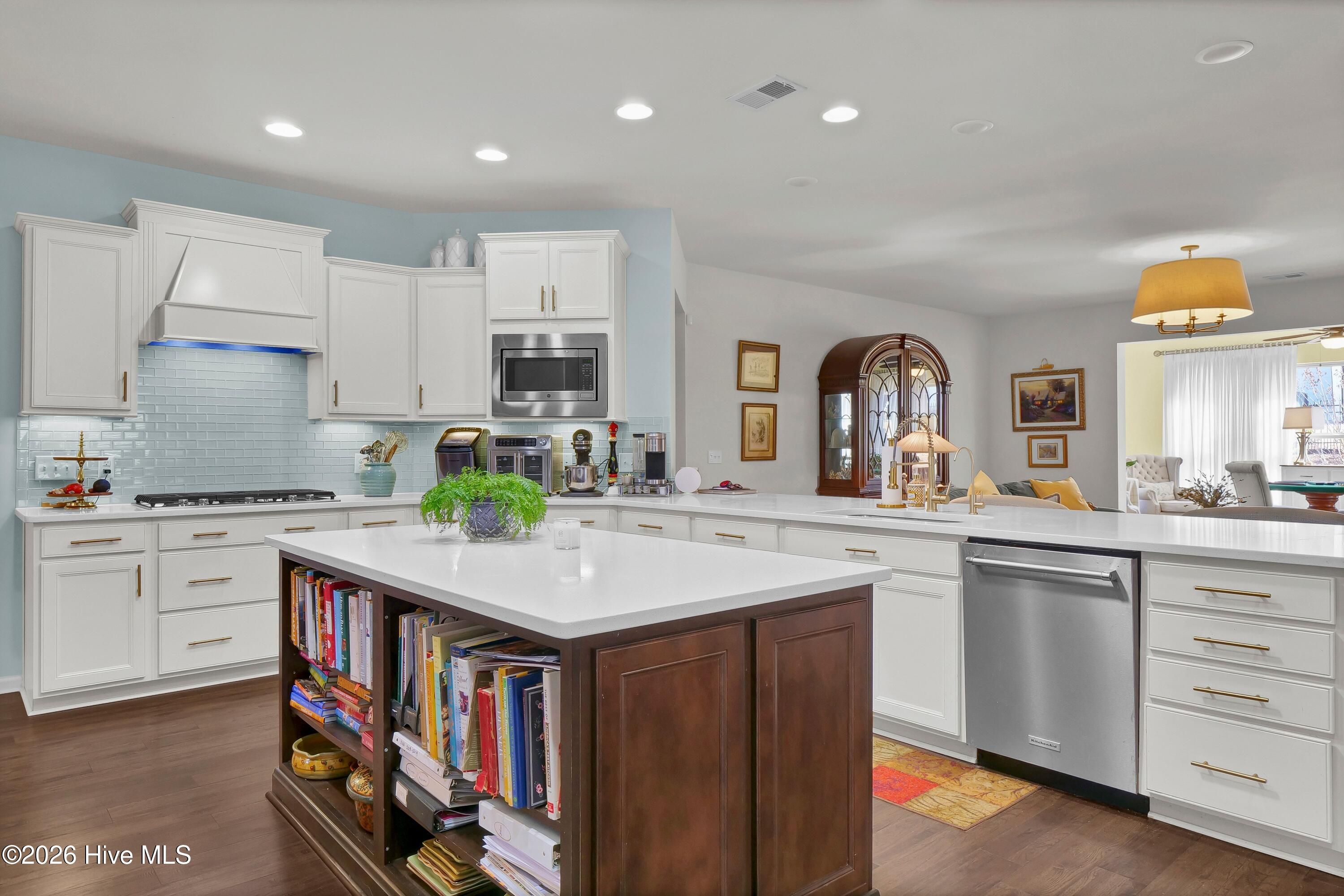 - Master Downstairs, Walk-In Closet(s), Tray Ceiling(s), High Ceilings, Solid Surface Counters, Generator, Bookcases, Kitchen Island, Ceiling Fan(s), Pantry, Walk-In Shower, Blinds, Built-in Features, Dry Bar