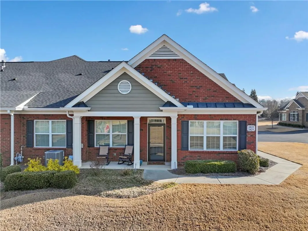Welcome home to this beautifully maintained end-unit condo located in a gated, active 55+ community at 3421 Lindenridge Drive in Buford. Designed for both comfort and convenience, this community offers scenic sidewalks perfect for active living and a true sense of connection among neighbors. Inside, the home features high ceilings and an open, airy layout with hardwood flooring throughout the main living areas, carpeted bedrooms, and tile bathrooms. The spacious living room is filled with natural light, enhanced by a large window with plantation shutters and a cozy gas fireplace—perfect for relaxing or entertaining. The open-concept kitchen is a standout, featuring new bright quartz countertops, accent lighting, ample cabinetry, and seamless flow into the living and dining areas. A dedicated dining space makes hosting easy, while the large sunroom offers incredible flexibility—ideal for a home office, craft room, or personal retreat tailored to your lifestyle. This thoughtfully designed ranch style home includes two spacious bedrooms and two full bathrooms, along with a mudroom featuring an additional laundry sink for added convenience. Storage is abundant with a large attic space above the garage, easily accessible via a permanent staircase. Take full advantage of the low-maintenance lifestyle, as the HOA covers water, trash, pest control, exterior maintenance, landscaping, and irrigation. Residents also enjoy a beautiful clubhouse complete with a saltwater pool, fitness center, event space, and a variety of community activities designed to bring neighbors together. This home offers the perfect blend of comfort, functionality, and vibrant community living—an exceptional opportunity in one of Buford’s most desirable 55+ neighborhoods. This community is conveniently located only minutes from Northeast Georgia Medical Center, Chateau Elan, 985, public parks, Mall of Georgia, Lake Lanier and so much more!