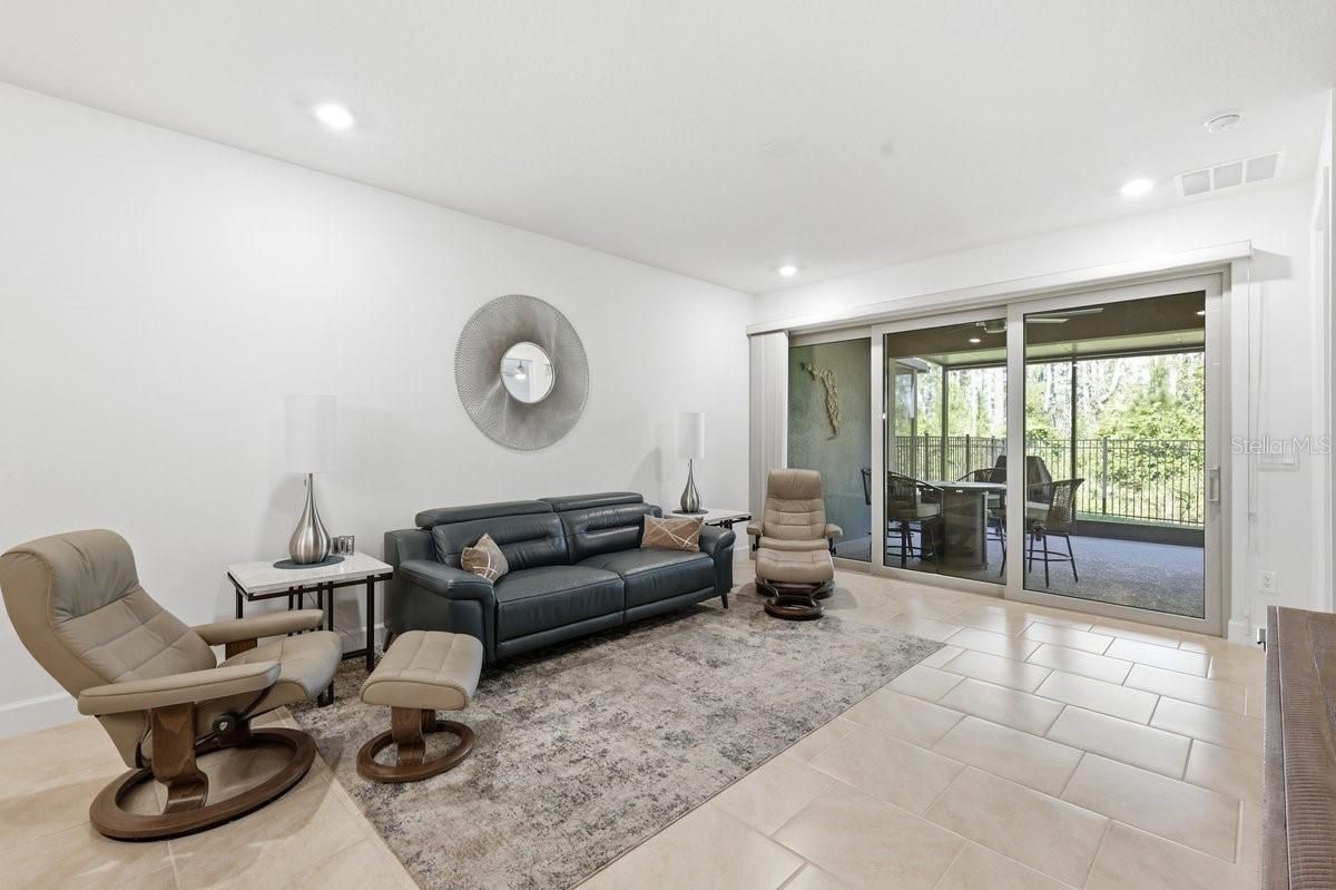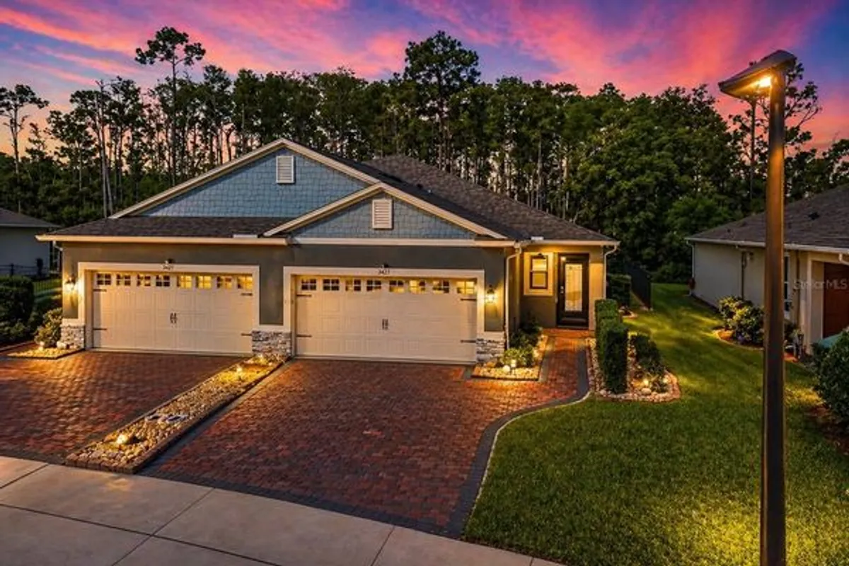 Over $70K in upgrades, no rear neighbors, and a flexible layout—this 2023 Cambridge Villa in Palms at Serenoa is move-in ready and stands out. Located on a quiet cul-de-sac, this single-story home offers 2 bedrooms, 2 bathrooms, and a versatile flex space currently used as a bedroom. The 1,627 sq ft open-concept layout flows seamlessly to an extended covered lanai with an insulated roof—ideal for indoor-outdoor living. Interior features include large-format ceramic tile in the main living areas and luxury vinyl plank in the bedrooms, upgraded baseboards, epoxy-finished showers, custom closets, window treatments, remote-control ceiling fans, and upgraded lighting. The kitchen is equipped with an upgraded sink, garbage disposal, and a Samsung appliance package with induction stove. Enjoy a fully fenced backyard with no rear neighbors, professional landscaping, and a custom 3-panel sliding glass door with transferable warranty. Additional upgrades include an extended sealed paver driveway, screened garage door, added insulation, EV/generator hookup, reclaimed irrigation, and washer/dryer included. HOA covers lawn care, cable, internet, and access to resort-style amenities including a pool, fitness center, pickleball, tennis, and bocce. Convenient Clermont location with easy access to Orange County and approximately 6 miles to Walt Disney World via a future road connection. Don’t wait—schedule your private showing today!