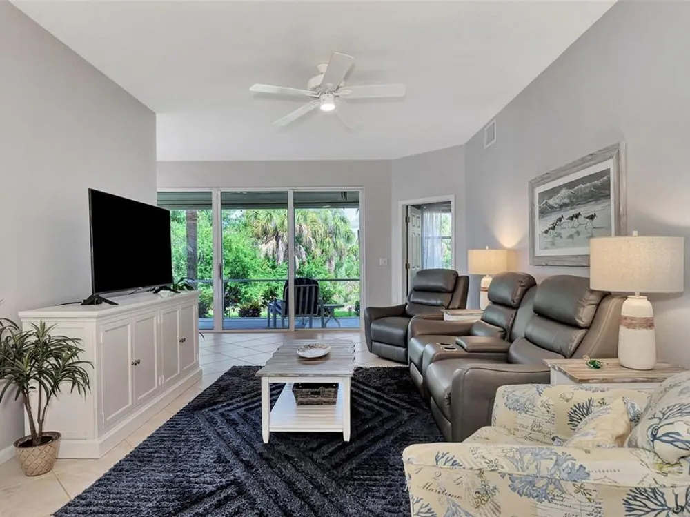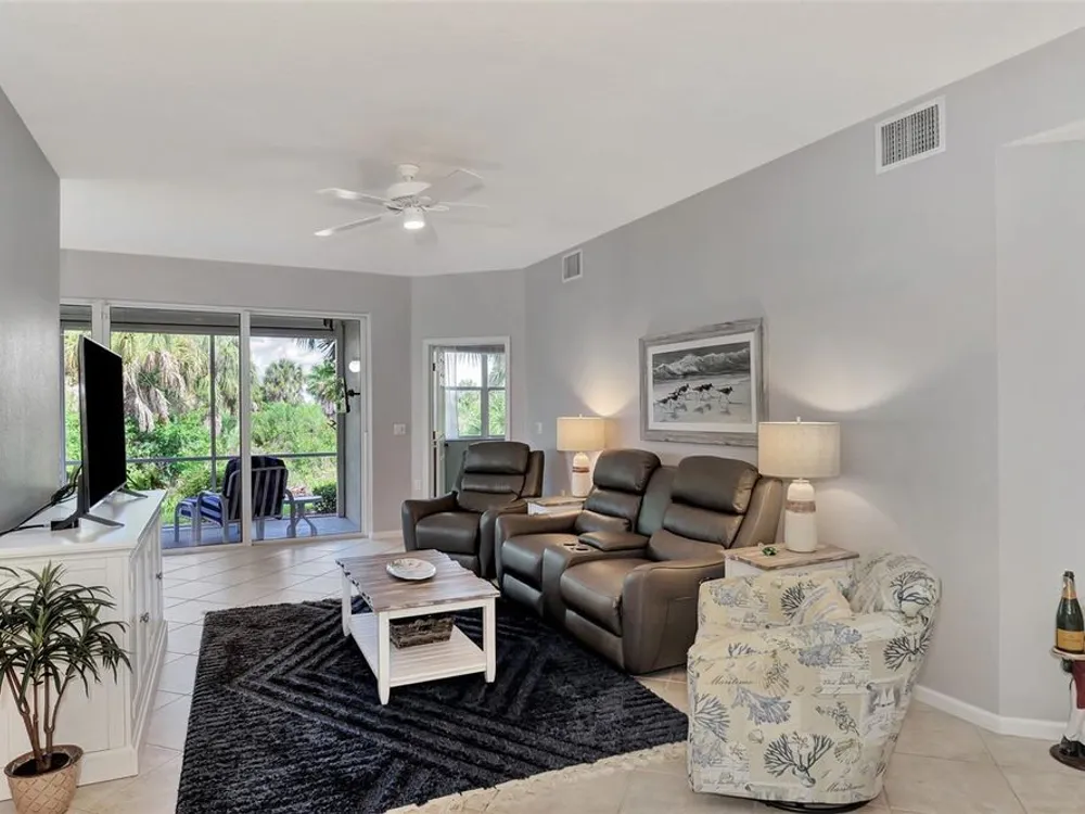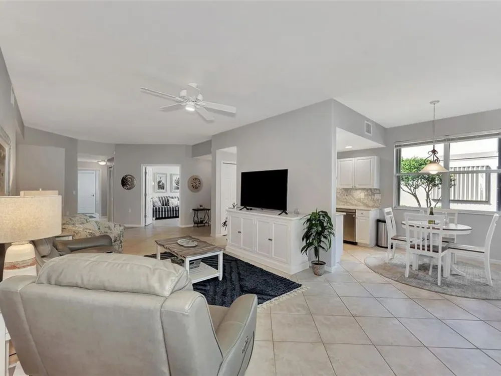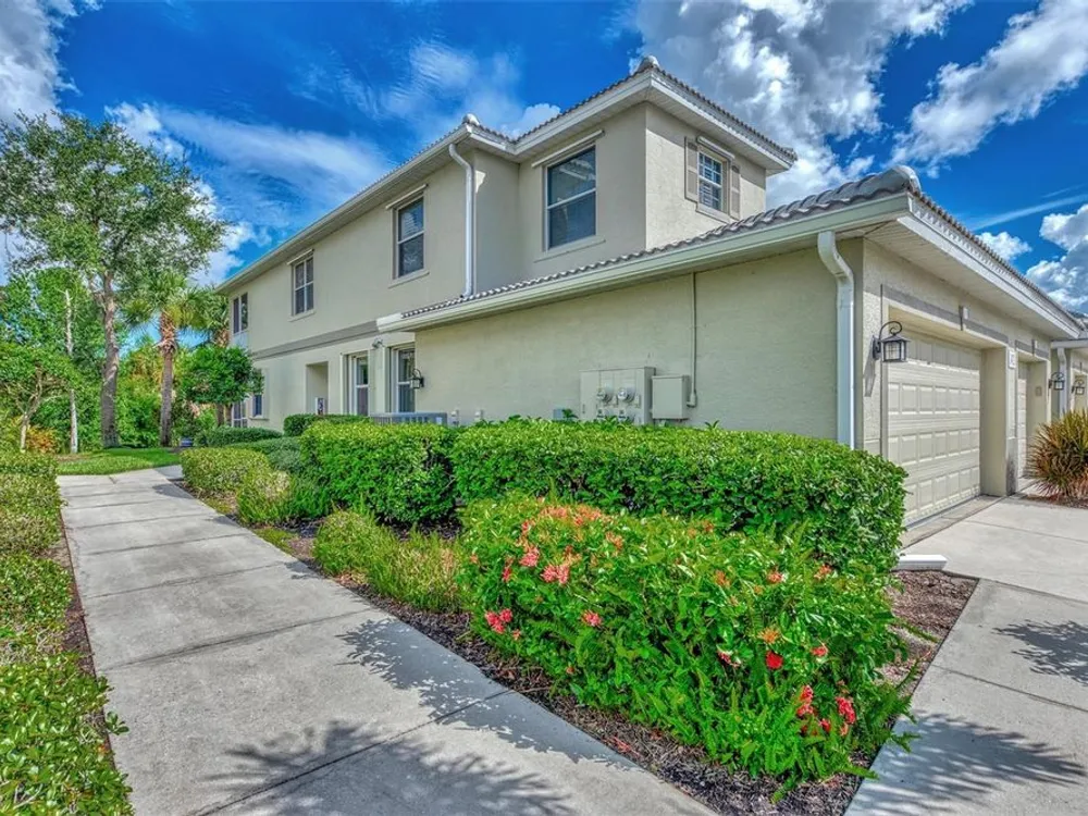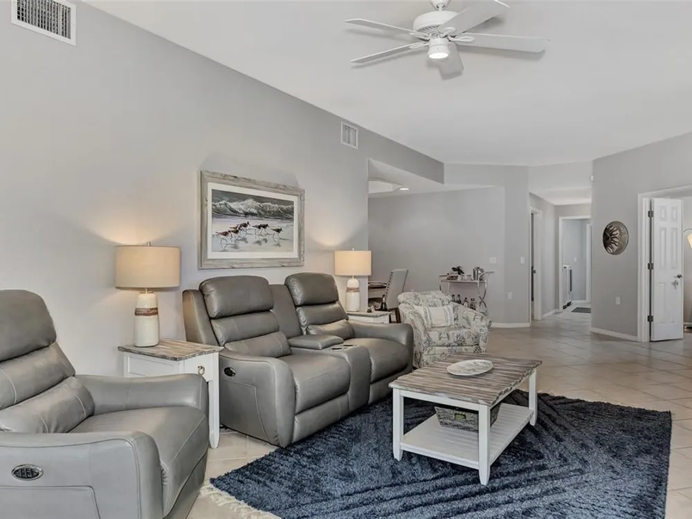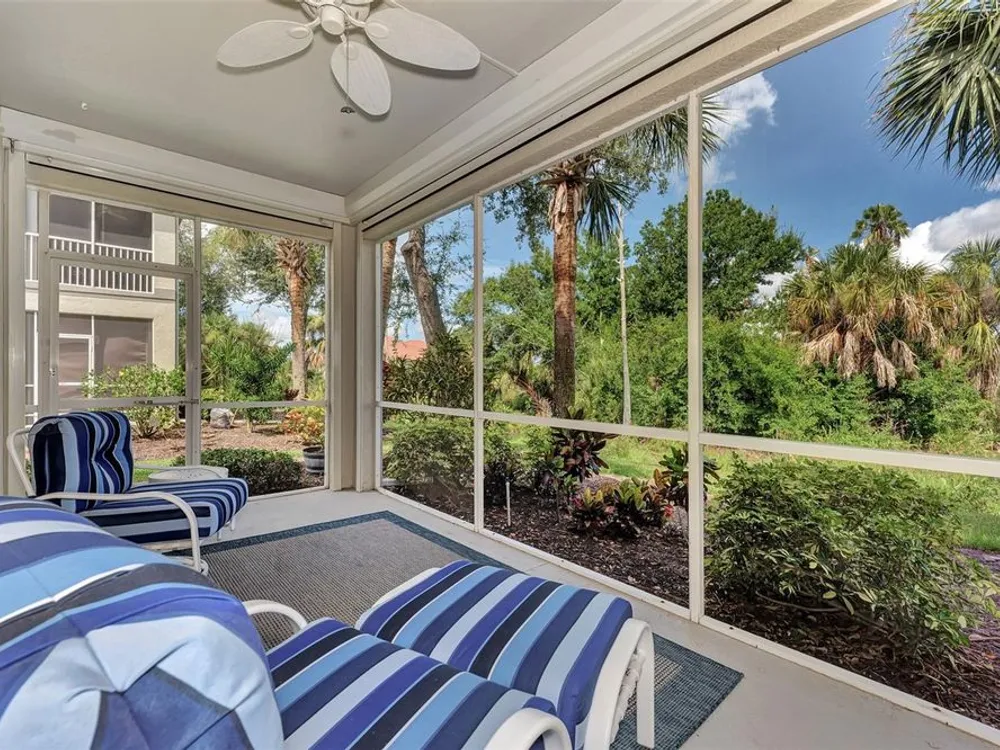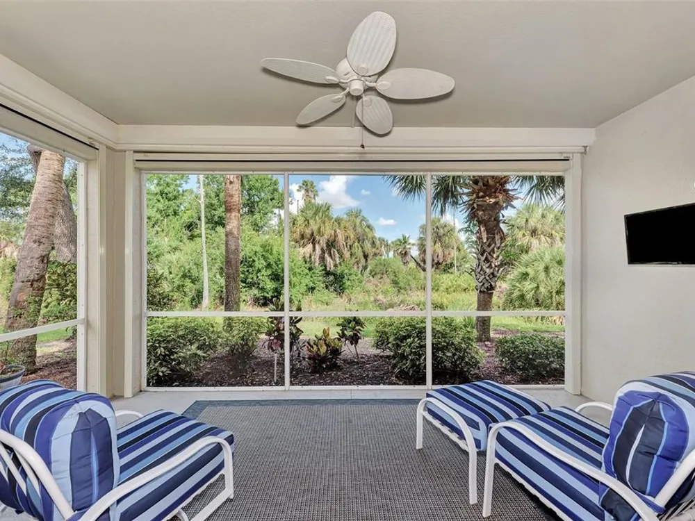 Don’t miss this highly desirable end-unit condo in the sought-after Grand Vista neighborhood of Riverwood. Offered turn-key furnished, this spacious residence features 2 bedrooms, 2 baths, a den/office, and a 2-car garage. New ROOF 2023! Inside, the kitchen shines with stainless steel appliances, Quartz countertops with matching backsplash, a whole-house Kinetico reverse osmosis water system, a new garbage disposal with warranty, recessed lighting, and custom under-cabinet lighting. Diagonal ceramic tile flooring flows throughout the main living spaces, while a cozy breakfast nook sits just off the kitchen. The lanai offers a peaceful preserve view, complete with electric Storm Smart hurricane shutters and an LED ceiling fan. The open living area features a custom LED ceiling fan, while the bedrooms include plush carpeting and bathrooms with upgraded custom lighting. Additional highlights include: New air handler motor (2020), Accordion Storm Smart shutters on all windows, Washer & dryer included, Beautifully landscaped yard for added privacy and serenity, 2023 Club Golf Cart included! Grand Vista owners enjoy exclusive access to a private pool, spa, and screened cabana area. Beyond that, Riverwood offers a resort-style lifestyle with a state-of-the-art recreation center, lap and resort pools, 6 Har-Tru tennis courts, pickleball courts, croquet, dog park, and more. Golf enthusiasts will love the Riverwood Golf Club, rated 4.5 stars by Golf Digest, while beach lovers can enjoy the private Riverwood Beach Club on the Gulf of Mexico (membership availability required). Perfectly situated in Port Charlotte between Fort Myers and Sarasota, Riverwood is close to the new Sunseeker Resort, MLB spring training facilities for the Tampa Bay Rays and Atlanta Braves, world-class boating and fishing, and the pristine beaches of Southwest Florida. This home combines comfort, convenience, and elegance in one of Southwest Florida’s most vibrant communities. Schedule your showing today—this gem won’t last long!