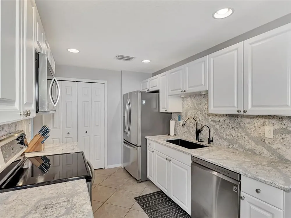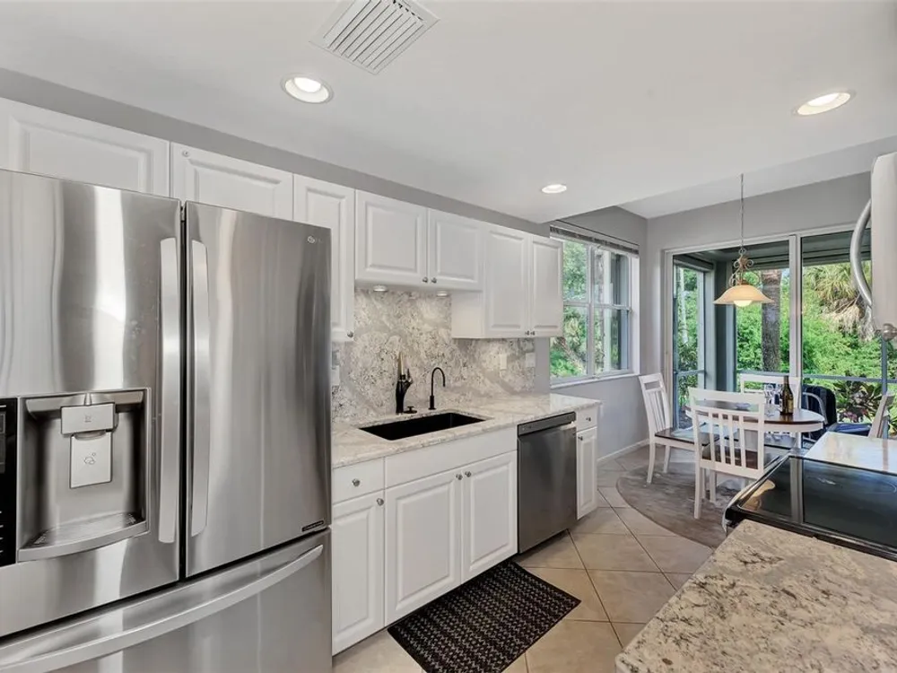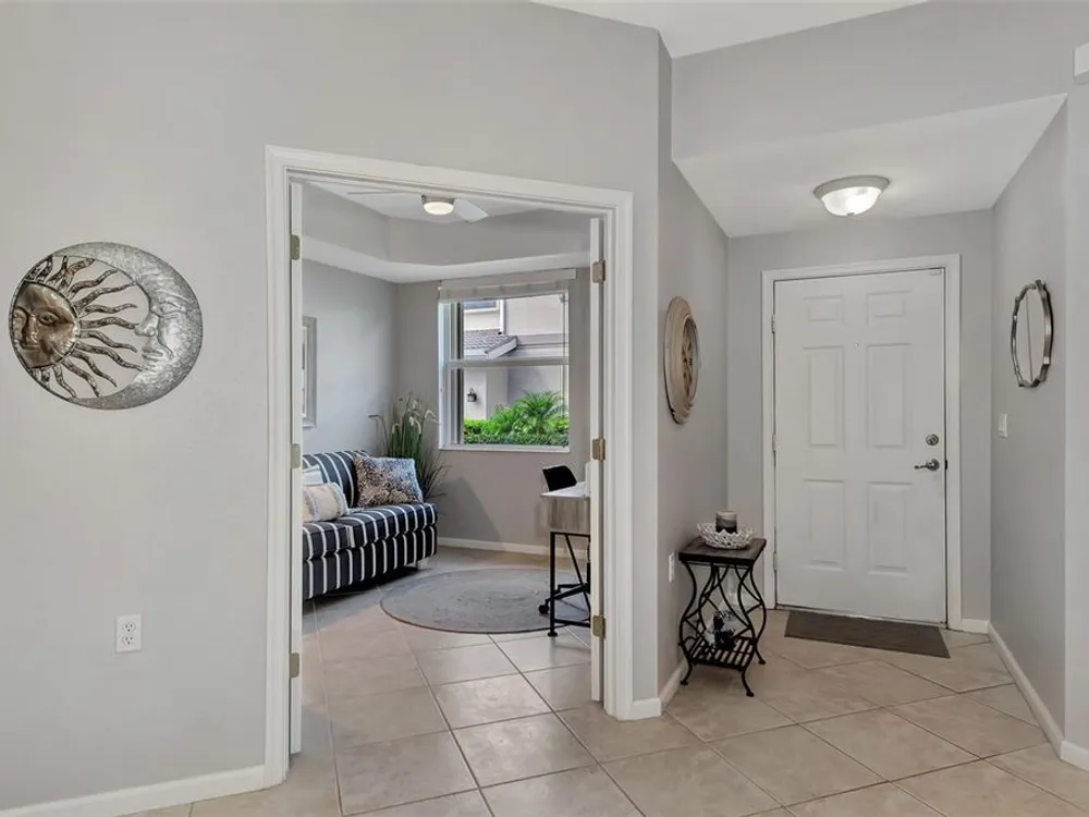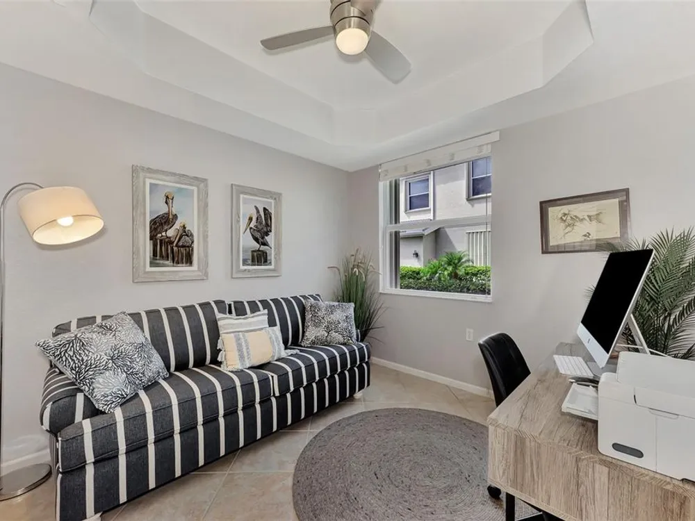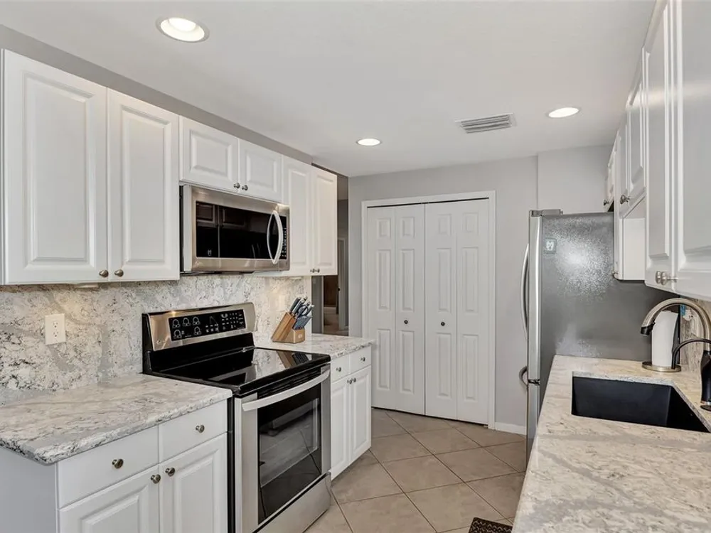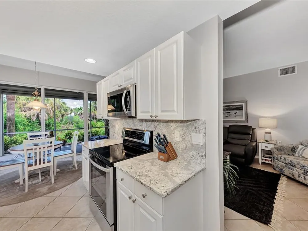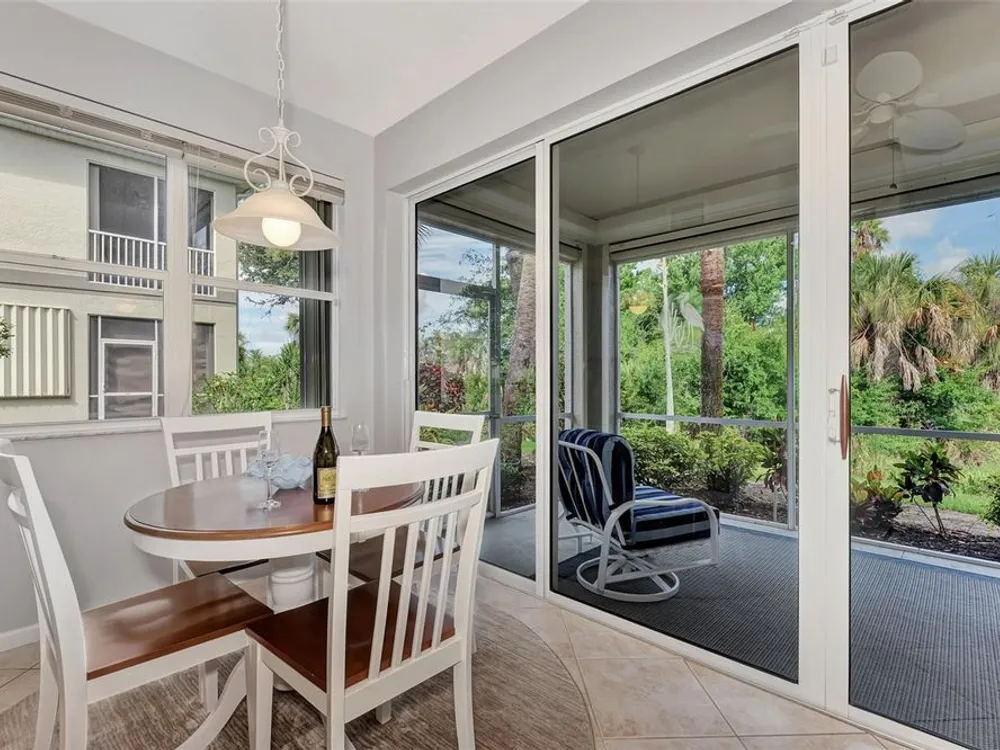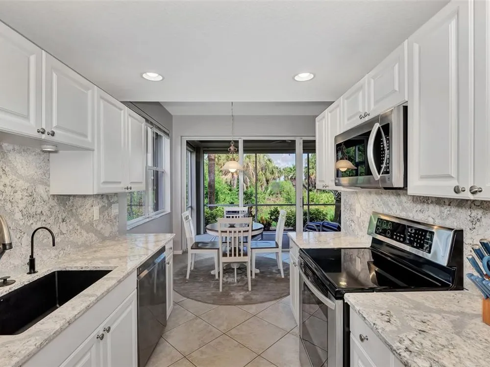 Don’t miss this highly desirable end-unit condo in the sought-after Grand Vista neighborhood of Riverwood. Offered turn-key furnished, this spacious residence features 2 bedrooms, 2 baths, a den/office, and a 2-car garage. New ROOF 2023! Inside, the kitchen shines with stainless steel appliances, Quartz countertops with matching backsplash, a whole-house Kinetico reverse osmosis water system, a new garbage disposal with warranty, recessed lighting, and custom under-cabinet lighting. Diagonal ceramic tile flooring flows throughout the main living spaces, while a cozy breakfast nook sits just off the kitchen. The lanai offers a peaceful preserve view, complete with electric Storm Smart hurricane shutters and an LED ceiling fan. The open living area features a custom LED ceiling fan, while the bedrooms include plush carpeting and bathrooms with upgraded custom lighting. Additional highlights include: New air handler motor (2020), Accordion Storm Smart shutters on all windows, Washer & dryer included, Beautifully landscaped yard for added privacy and serenity, 2023 Club Golf Cart included! Grand Vista owners enjoy exclusive access to a private pool, spa, and screened cabana area. Beyond that, Riverwood offers a resort-style lifestyle with a state-of-the-art recreation center, lap and resort pools, 6 Har-Tru tennis courts, pickleball courts, croquet, dog park, and more. Golf enthusiasts will love the Riverwood Golf Club, rated 4.5 stars by Golf Digest, while beach lovers can enjoy the private Riverwood Beach Club on the Gulf of Mexico (membership availability required). Perfectly situated in Port Charlotte between Fort Myers and Sarasota, Riverwood is close to the new Sunseeker Resort, MLB spring training facilities for the Tampa Bay Rays and Atlanta Braves, world-class boating and fishing, and the pristine beaches of Southwest Florida. This home combines comfort, convenience, and elegance in one of Southwest Florida’s most vibrant communities. Schedule your showing today—this gem won’t last long!