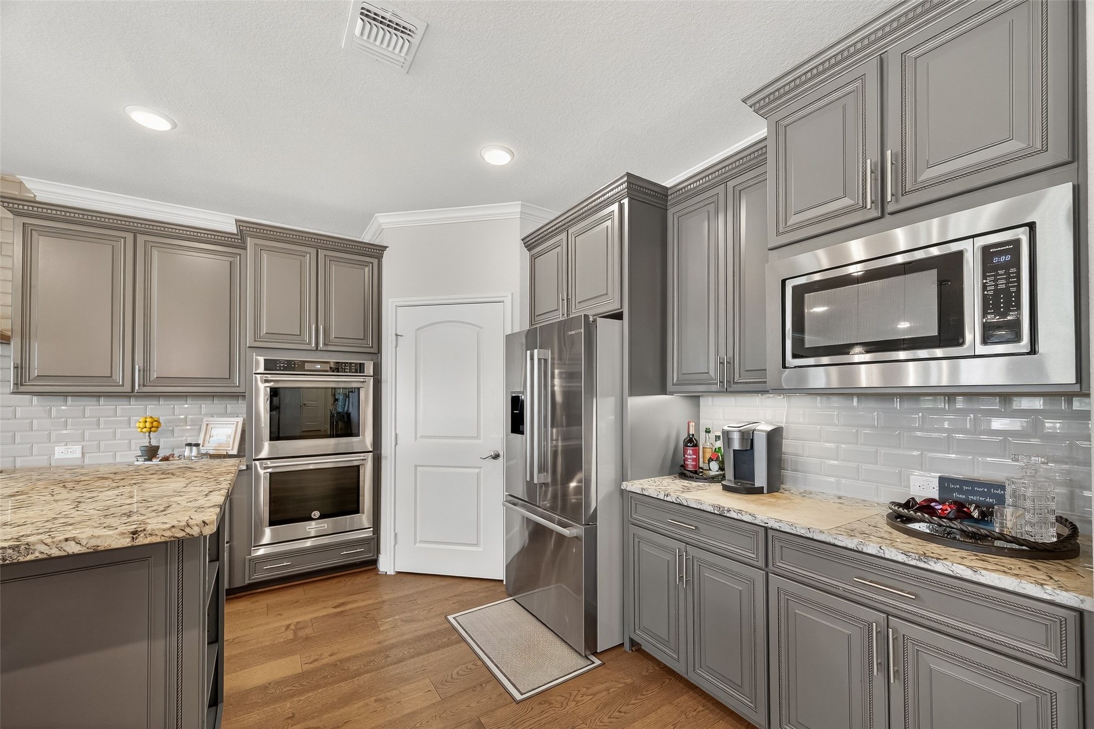 - Breakfast Bar, Crown Molding, Entrance Foyer, Granite Counters, High Ceilings, Kitchen Island, Kitchen/Family Room Combo, Pantry, Self-closing Cabinet Doors, Self-closing Drawers, Tub Shower, Makeup/Vanity Space, Walk-In Pantry, Window Treatments, Ceiling Fan(s), Kitchen/Dining Combo