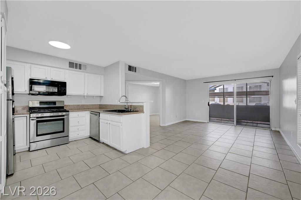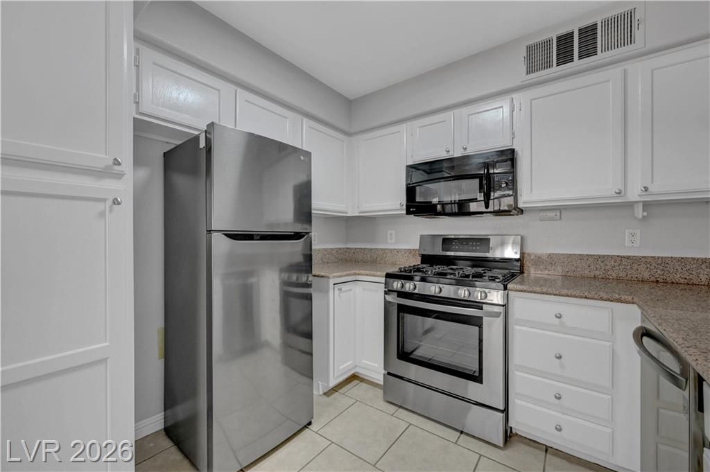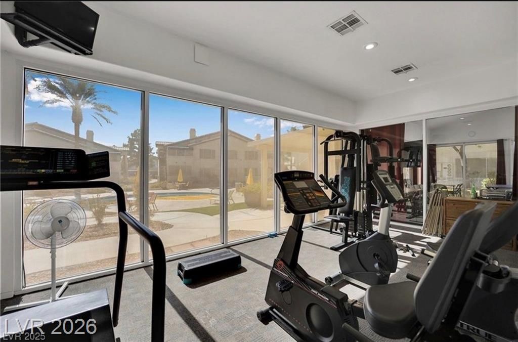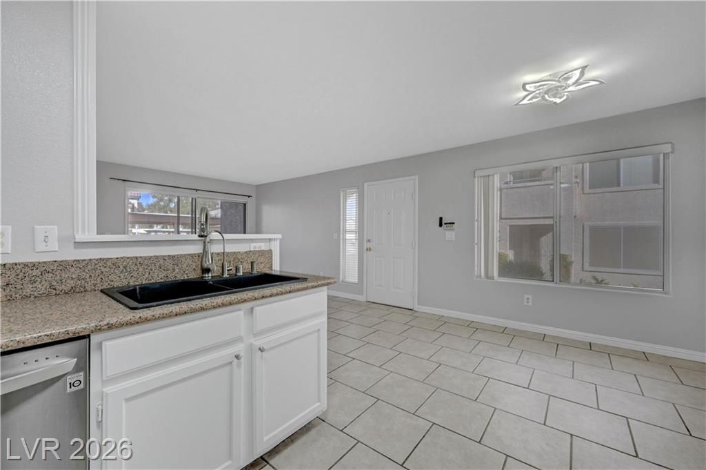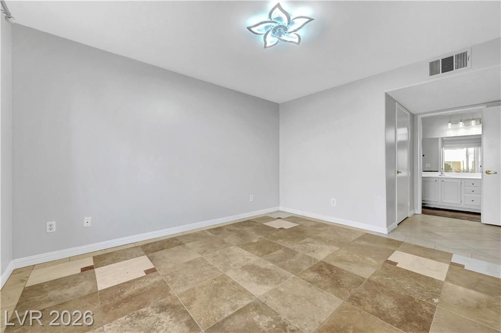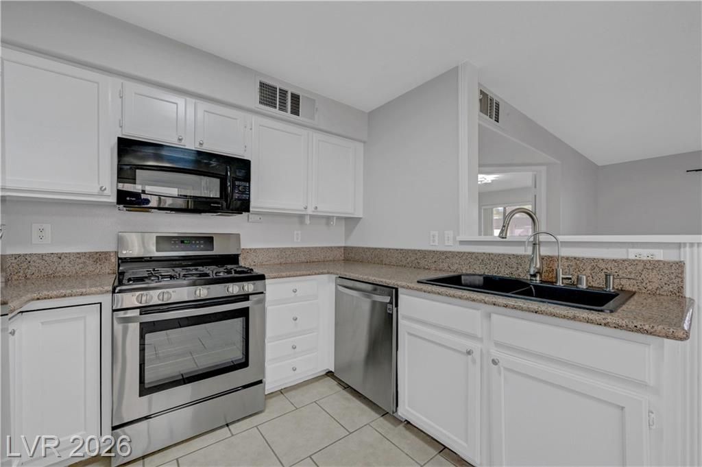 Open house Sun 1-4pm. Rare find. 2026 Newly renovated. Sparkling clean. Quiet desirable gated 55+ community. Beautiful Desert landscaping, trees, shrubs. Close to Strip, downtown, shopping, highways & Green Valley. Largest downstairs unit. 3 spacious bedrooms. 2 full bathrooms. Travertine, tile flooring. No carpet. Modern decor. Marble countertops. White cabinets. High end Stainless steel appliances. Convection microwave. Walk-in closet. Bath dual sinks. Ample storage. Screen patio & door. Water heater 2021. Washer 2025. New 2026. Paint. Reverse osmosis water filter system. Bathroom glass door & lights. Vent motor. Ceiling fan lights & remotes. Rainfall shower heads & faucets. Deep air duct cleaning. AC tuning & Wash. Clubhouse, Gym, heated Pool, spa, solar panels. Covered parking. Plenty guest parking. 2 gate locations, easy secure access. Water & trash included. No residents under 18. Your dream home. Breeze fresh. Move in ready. Come view! Watch virtual tour!