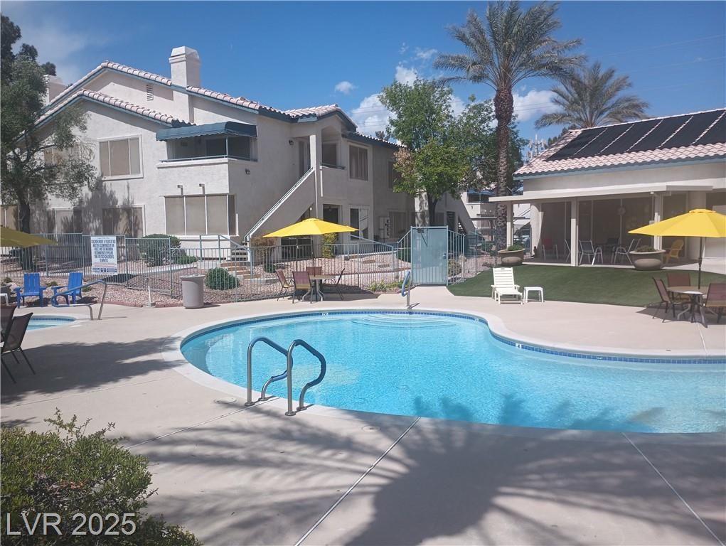 BEAUTIFULLY APPOINTED AND HIGHLY UPGRADED 2 BEDROOM AGE QUALIFIED CONDO. CENTRALLY LOCATED AND EASY ACCESS TO SCHOOLS, SHOPPING, FREEWAYS AND LITERALLY MINUTES AWAY FROM HARRY REID INTERNATIONAL AIRPORT, WORLD CLASS ENTERTAINMENT OF THE LAS VEGAS STRIP AND RAIDERS STADIUM. UPGRADED FLOORING THROUGHOUT. CHEF'S GOURMET KITCHEN WITH LEVEL 3 GRANITE COUNTER TOPS, STAINLESS APPLIANCES AND A CUSTOM POT FILLER FOR EASY ACCESS TO PREP YOUR MEALS. LARGE PRIMARY BEDROOM WITH SPA LIKE BATH AND OVERSIZED SECONDARY BEDROOM. FIRST FLOOR UNIT WITH DIRECT COVERED PARKING RIGHT OUT SIDE THE FRONT DOORS. AGE QUALIFIED COMMUNITY WITH ALL THE AMENITIES AND SOCIAL CALENDARS TO KEEP YOU BUSY. CALL US TODAY