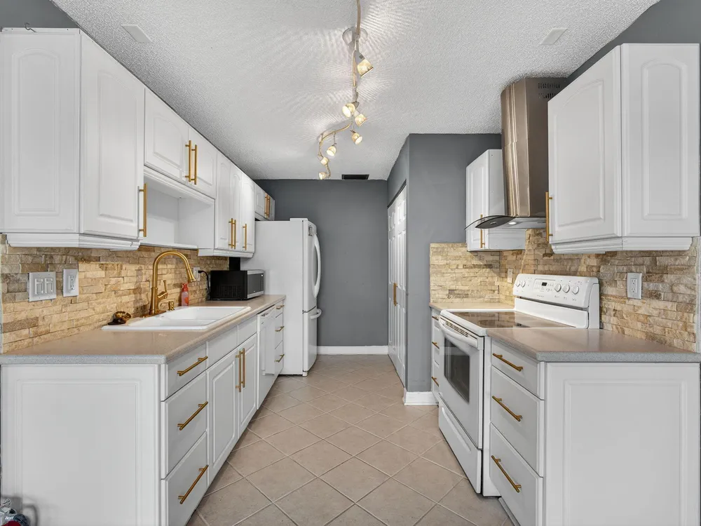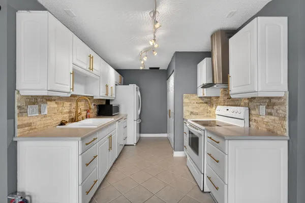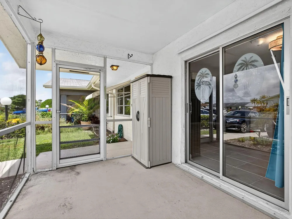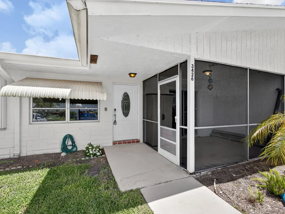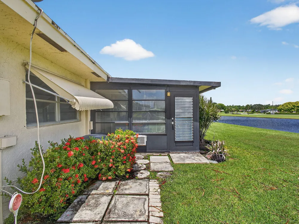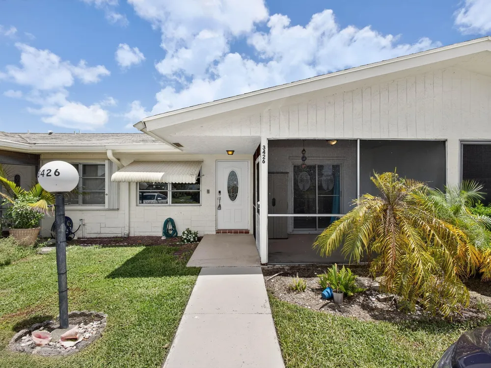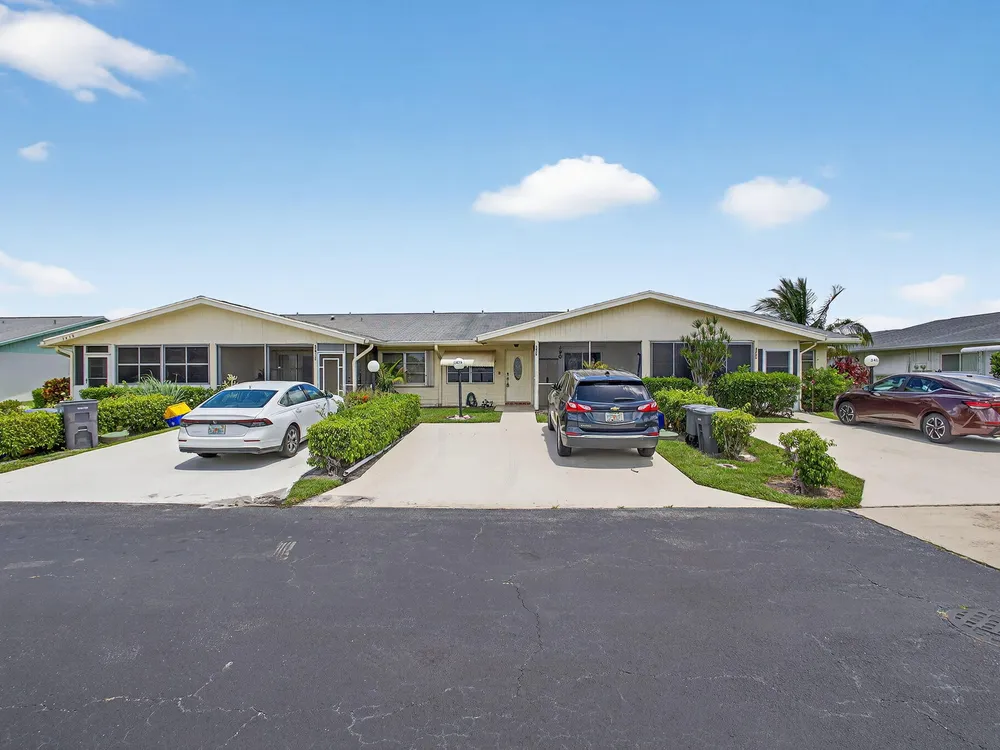 Move in ready 2 bedroom, 2 bathroom, updated villa with 2 screened in patios. Back patio overlooks the lake. The elegantly remodeled kitchen features upgraded white shaker cabinets with gold hardware, white stone backsplash, white appliances, and white tile flooring for a clean, modern look. Large living room and separate dining area with decorative stone wall. The spacious bedrooms include laminate flooring and walk in closets. Both bathrooms are remodeled with white vanities and a stand alone shower in the primary bathroom. Cypress Lakes is a guard gated over 55 community that includes a fitness center, 18 hole golf course and community pool.