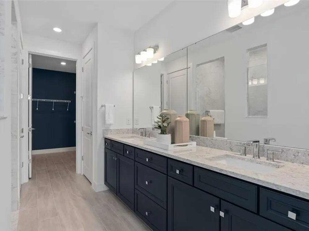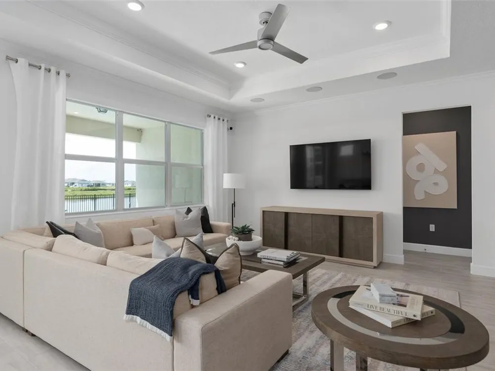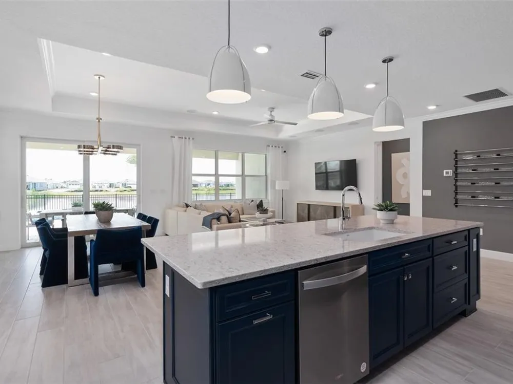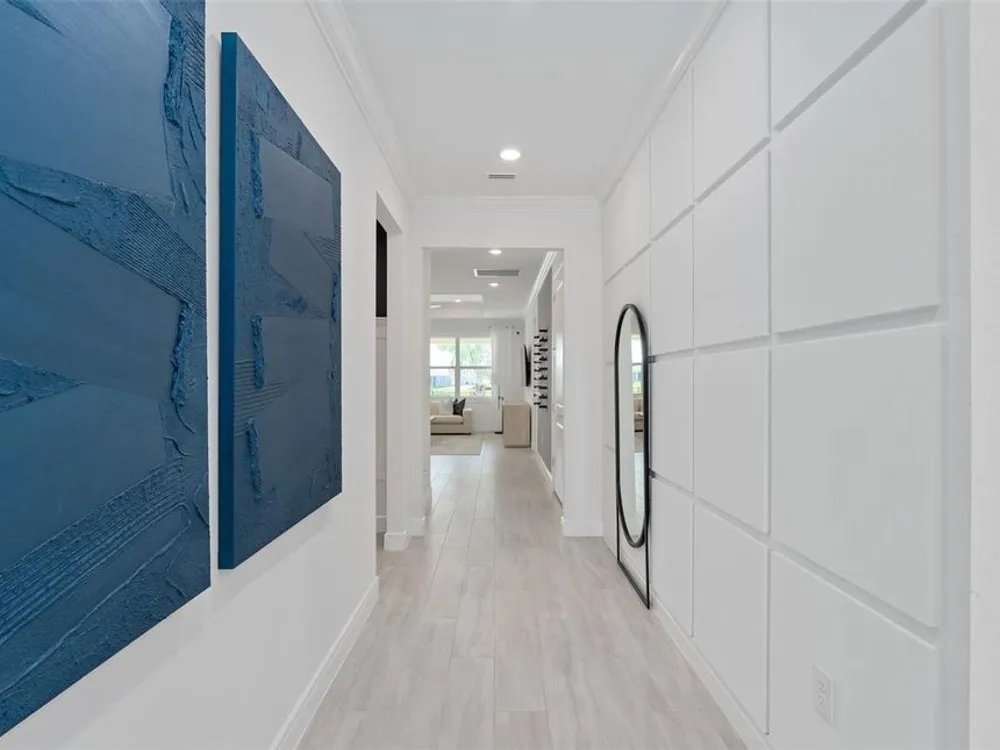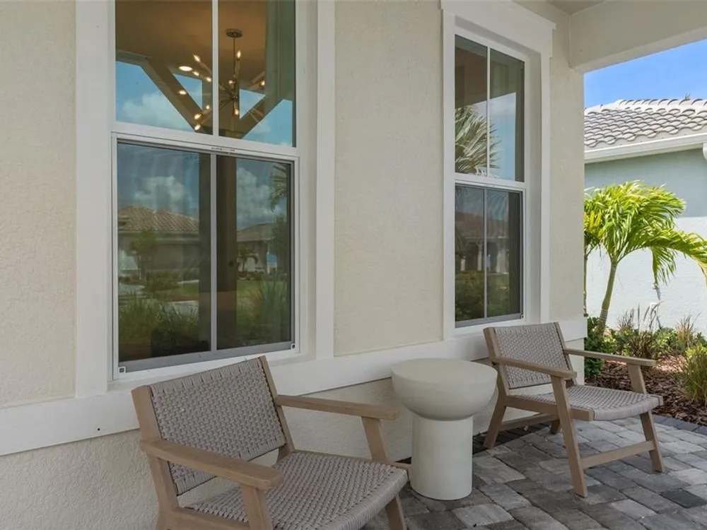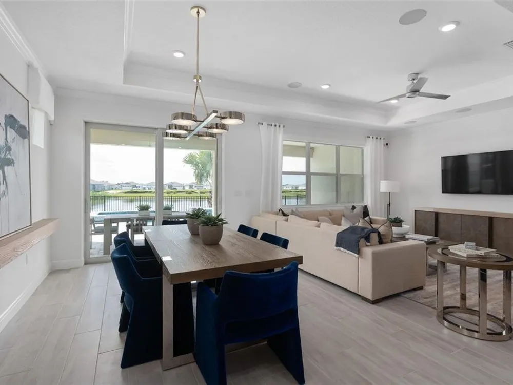 Del Webb at Viera is a luxurious guard-gated 55+ active adult community offering new construction single-family homes on a network of sparkling ponds featuring water view homesites throughout, an unrivaled location on the Space Coast, a planned breathtaking ten-acre waterfront amenity center and an established Town Center. Del Webb at Viera will offer an abundance of resort-style amenities with social events and activities centered in the stunning 30,000-square foot clubhouse, planned by a full-time Lifestyle Director. With a zero-entry pool with sun shelf, lap lanes and a heated spa you'll be relaxing like a pro. Staying fit and grounded will be easy with sports courts, croquet lawn, fitness center, movement studio, community garden and walking/biking trails. Make new friends at one of the dog parks, join a resident club, take a painting class at one of the many art studios, attend a concert or show at the event lawn, grab a bite at the on-site tavern & grille, or chat at the fire pits or Hammock Grove. Del Webb at Viera is also a golf-cart friendly community. Association membership includes all-inclusive landscaping, bulk cable/internet and Gold golf membership with Duran Golf Club. Located just 2 miles from I-95 and close to golfing, boating, beaches and outdoor recreation, this location in a Top 15 Master Planned community can't be beaten! Visit today to learn more and see for yourself why Del Webb at Viera is the absolute best place to call home! Welcome to the Prosperity model by Del Webb, where convenience and luxury meet in perfect harmony. This stunning single-story home offers 2 spacious bedrooms, an enclosed flex room, and 2 beautifully appointed bathrooms. The heart of the home is the brand-new kitchen, showcasing elegant 42” soft-close cabinetry paired with Quartz countertops. Enjoy the functionality and beauty of upgraded Whirlpool stainless steel appliances, including a refrigerator and a built-in natural gas cooktop, all highlighted by stylish tile backsplash, a stainless-steel single-bowl sink, upgraded faucet, and pendant pre-wiring for that touch of sophistication. The open-concept design seamlessly flows into the gathering room, making this space perfect for both cooking and socializing. The spacious kitchen island is ideal for meal prep or casual dining, while the extended covered lanai just outside invites effortless indoor-outdoor living. The private owner's suite, located at the rear of the home for ultimate privacy, offers a serene escape with an en suite bathroom featuring quartz-topped dual vanity sinks, and a walk-in shower with rain shower head and luxurious tile reaching up to the ceiling. At the front of the home, the spare bedroom, bathroom- featuring its own walk-in shower, and versatile enclosed flex room ensure that everyone has their own space. Wood-look tile flooring spans the home, providing both style and durability. The laundry room itself offers both style and convenience with a brand-new Whirlpool washer and dryer adding a touch of elegance to everyday tasks. From the brushed nickel hardware finishes to the tall 8' interior doors, no detail is overlooked. This home also comes equipped with a variety of modern conveniences, including a smart thermostat and doorbell, LED downlights, and Digit IP Camera Pre-wire. Comfort height toilets, faux wood blinds, Sherwin Williams First Star interior paint, and rain gutters add both style and ease to daily living. Schedule a tour today!