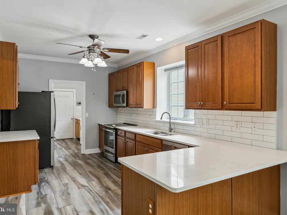 - Ceiling Fan(s), Attic, Crown Moldings, Upgraded Countertops, Wood Floors