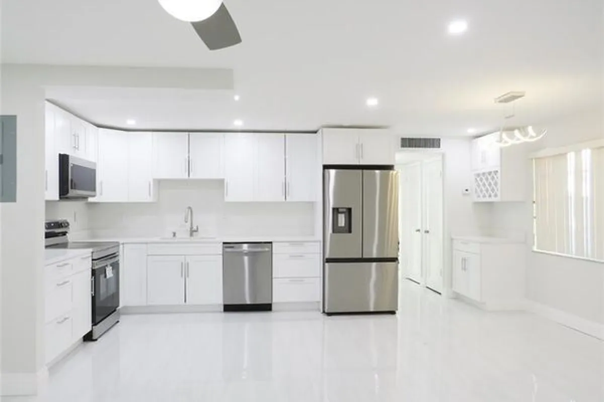Experience luxury living in the highly desirable Kings Point community! Newly renovated unit showcases open-concept design with brand-new Samsung appliances, including washer/dryer. Porcelain tile throughout the entire unit, including screened-in patio. The modern kitchen features abundant storage, quartz countertops, and a built-in wine rack—perfect for entertaining. Enjoy LED recessed lighting throughout, modern fixtures in the dining area & hallway, ceiling fans in both the living room & bedroom. New electrical panel & breakers, new water heater & front door, and an enclosed laundry room with storage space. KP offers an array of resort-style amenities, Golf, Theatre; minutes from vibrant downtown Delray Beach, top restaurants, shopping, & easy access to Turnpike & I-95. Welcome Home!
