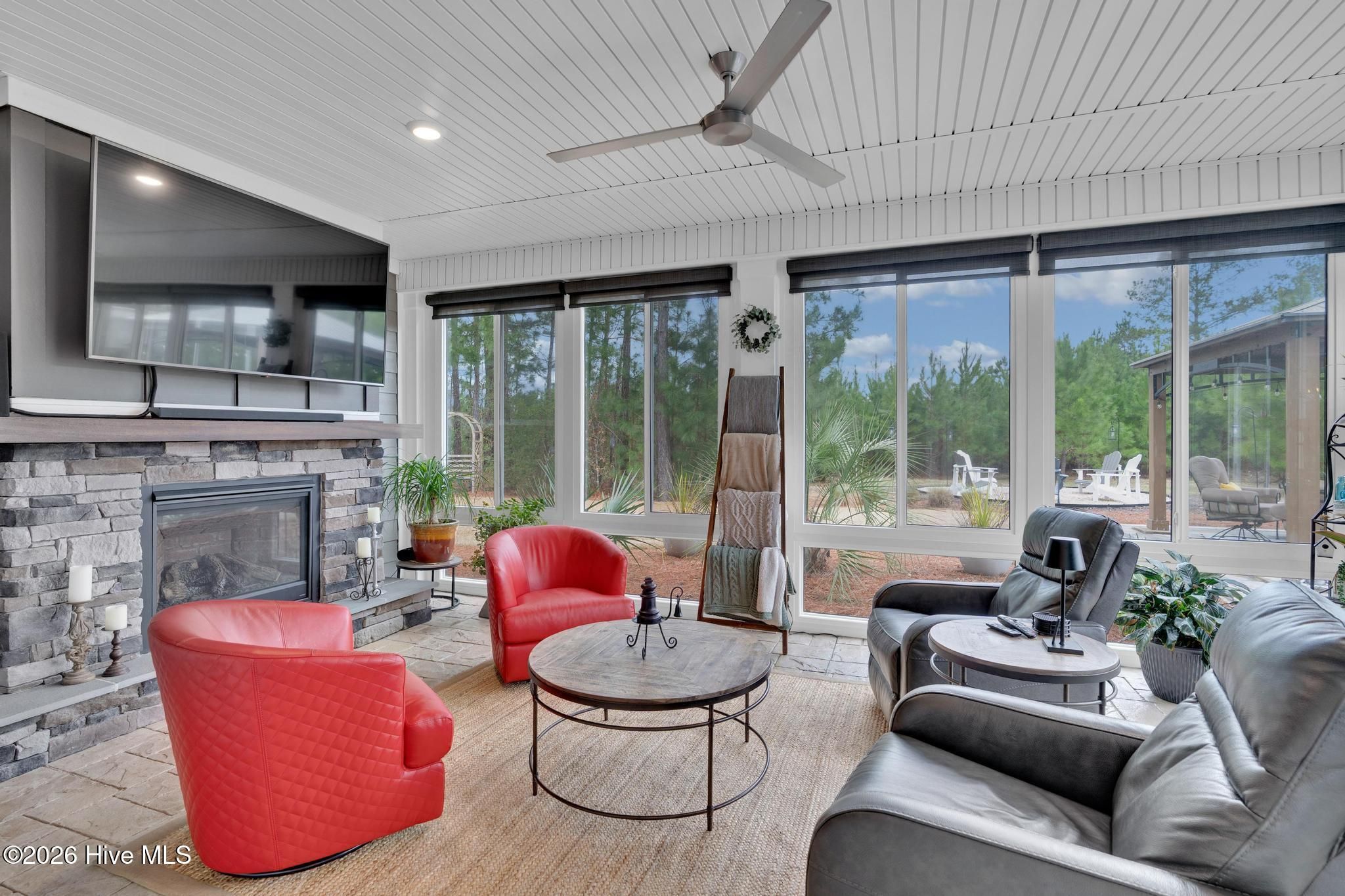 Welcome to 3432 Bitterns Branch, a beautifully designed home tucked inside the intimate Egret Cove section of Brunswick Forest, where thoughtful upgrades and effortless indoor-outdoor living take center stage. Offering 2,952 heated square feet, this spacious 4 bedroom, 3 bath home also features a dedicated home office, perfect for remote work, quiet focus, or managing day-to-day life with ease. At the heart of the home, the stunning kitchen was made for gathering, flowing seamlessly into the main living areas and out to an incredible 288 sq ft glass-enclosed lanai. With its stone gas fireplace, this space feels like a cozy retreat year-round, perfect for morning coffee or relaxed evenings. Step outside to the newly installed patio (2024), complete with a gazebo and hot tub, creating your own private backyard escape overlooking a protected natural area that will remain untouched. Entertaining is effortless with a butler's pantry and wet bar, while the flexible 4th bedroom or bonus room offers the perfect space for guests, hobbies, or additional living. The home also features generous storage throughout, including a large walk-in attic, plus a 2.5 ft extended garage for added convenience. Recent upgrades such as a water softener system (2025) add even more value and peace of mind. Located in the highly desirable Brunswick Forest community, residents enjoy a vibrant coastal lifestyle with top-tier amenities including pools, fitness centers, walking and biking trails, pickleball and tennis courts, and a variety of social clubs and activities. Just minutes from shopping, dining, and everyday conveniences right outside the neighborhood, you truly have everything you need close to home. This is more than just a home... it's a lifestyle, a retreat, and a place to truly enjoy where you live. 🌿🏡