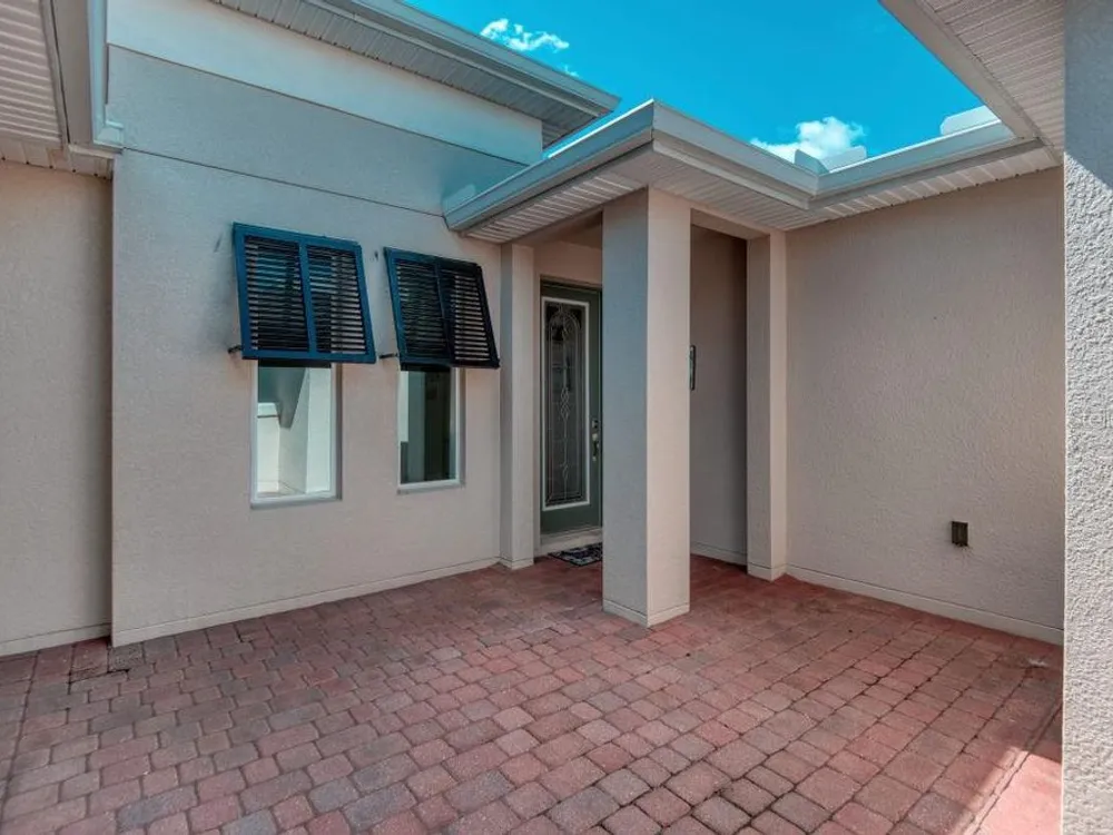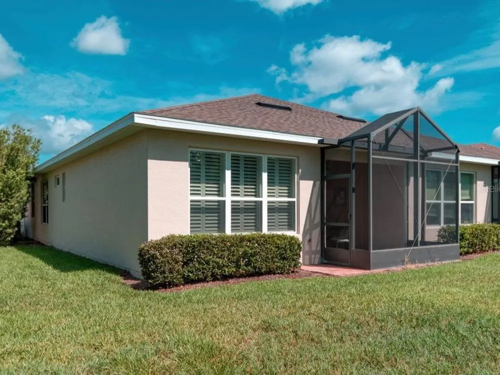Move-in ready Avellino model, featuring a Courtyard entry to this 2 bedrooms,2 bathrooms plus a Den. Enter this Villa from a beautiful Leaded front door which allows the sun to shine in. This home affords large Tile throughout the home & laminate/tile flooring in the bedrooms (no carpet). The KITCHEN is light & bright with 42-inch uppers, granite counters, kitchen island & stainless steel appliance (stove purchased 2024).The PRIMARY suite affords a large window overlooking mature landscaping & TWO WALK-IN closets. The ENSUITE bathroom affords WALK-in shower, raised vanities with DUAL SINKS & stone counters. You will find custom window treatments from Hunter Douglas & custom White Plantation Shutters. RELAX in your Screened LANAI with a cup of coffee & enjoy the partial Pond view. Come view your new home today. Solivita is an active adult 55+ community located in Kissimmee, Florida. It is approximately 50 minutes from Disney World & the Orlando Airport. Solivita has a total of 5,470 homes. Approximately 10,000 people live in Solivita during the winter,approximately 7,500 during the summer. Solivita's amenities include: - a manicured SOFTBALL diamond & field - 36 holes of CHAMPIONSHIP GOLF that can be played by joining the Stonegate Golf Club or paying as you go - 2 STATE of the Art AMENITY centers with updated exercise equipment, yoga studio & meeting rooms - 3 restaurants - 14 HEATED POOLS - 17 PICKLEBALL courts - 9 TENNIS courts - 4 BOCCE BALL courts - 4 SHUFFLEBOARD courts - 3 HORSESHOE pits - a BILLIARDS room - miles of bike paths - 2 DOG PARKS (Small & Large Dogs) - Corn Hole - Tot Lot PLAYGROUND - COMMUNITY GARDEN - over 250 resident clubs. The HOA: - maintains the LANDSCAPING & IRRIGATION systems in the common areas as well as at individual homesites - maintains the roads throughout the community - PROVIDES SECURITY with gate guards and mobile patrols including the Polk County Sheriff - allows AUTOMATED GATE ACCESS for residents via license plate readers - provides residents with Fiber Optic Internet & TV service.***Poinciana Lakes Plaza is a MAJOR NEW SHOPPING CENTER that opened directly across from the Solivita Main Gate. It features Sprouts Grocery, TJ MAXX, Ross, Burlington, Rack Room Shoes, 5 Below, Ulta, Outback, First Watch, 5 Guys, Urgent Care, Dentist, TD Bank, Petco & Hair Cuttery PLUS MORE TO COME.***