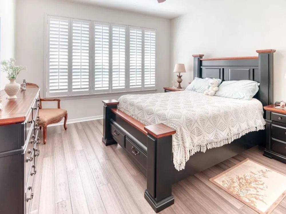 - Ceiling Fan(s), Open Floorplan, Solid Surface Counters, Solid-Wood Cabinets, Split Bedrooms, Walk-In Closet(s), Window Treatments