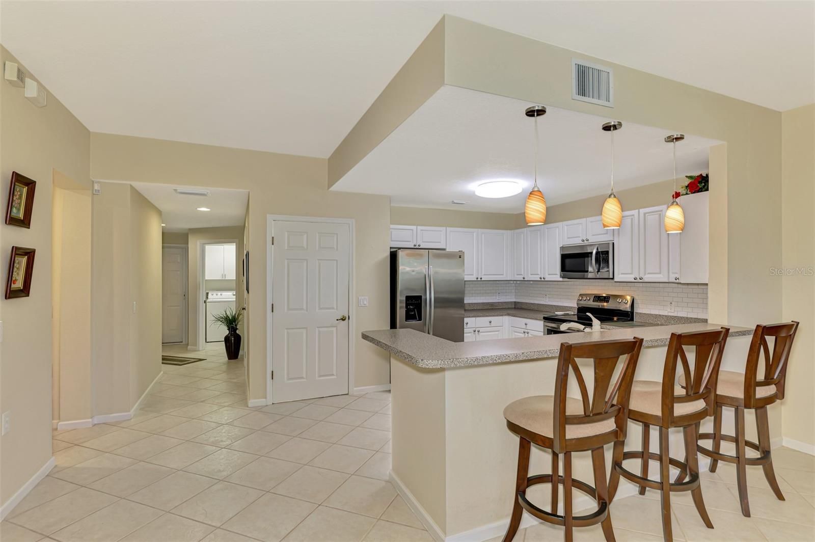 Sale subject to Lease Jan-March 2026-Desirable 1st floor condo in Grand Vista. Turn-key furnished. This home features 2 bedrooms, 2 baths, a dining room, and an attached 1-car garage. The kitchen has stainless steel appliances, Corian countertops with a tile backsplash, and upgraded lighting with pendant lights over the bar area. Ceramic tile is laid diagonally throughout. The Lanai offers a shaded preserve view, custom tile flooring, electric Storm Smart hurricane shutters, and a ceiling fan. The main living area is open and great for entertaining and features an upgraded ceiling fan with dual fans and a light. The dining room features a tray ceiling and could be converted into a game room or used for additional guests. A new air conditioner was installed in 2022. Accordion Storm Smart shutters are on all other windows. The master bedroom has wood flooring and the guest bedroom has carpeting. Washer and dryer included. A screen door has been added to the garage door to allow airflow on nice days and a lockable storm door was added to the front entry door for additional security and/or lighting. The garage floor has been upgraded with an epoxy finish. The outdoor yard area has been beautifully landscaped and is very peaceful and serene. This condo offers a blend of comfort, convenience, and elegance. Please ask the agent for details. This neighborhood has a pool, spa, and screened cabana area exclusive to Grand Vista owners and their house guests. Act fast – this enchanting home won't stay on the market for long! Schedule a showing today and begin living the grand Florida lifestyle you’ve been dreaming of! Riverwood is a premier community in Southwest Florida, offering an exquisitely landscaped setting along the tranquil Myakka River, nestled between Fort Myers and Sarasota in Port Charlotte. Spanning 1,300 acres, Riverwood's master- planned community seamlessly blends natural beauty with modern living trends. Enjoy an array of lifestyle amenities, including a recreational center equipped with state-of-the-art fitness facilities, a lap pool, resort-style pool, six Har-Tru tennis courts, pickleball courts, lawn croquet, and a dog park, among others! Riverwood Golf Club is recognized as a Golf Digest-rated 4 ½ star golf course, and Riverwood Beach Club on the Gulf of Mexico offers memberships based on availability. Conveniently located near the new Sunseeker Resort, which boasts a variety of restaurants, the Tampa Rays and Atlanta Braves spring training facilities, boating, world-class fishing, and the pristine beaches of Southwest Florida, Riverwood's location provides easy access to a wealth of cultural and lifestyle opportunities.