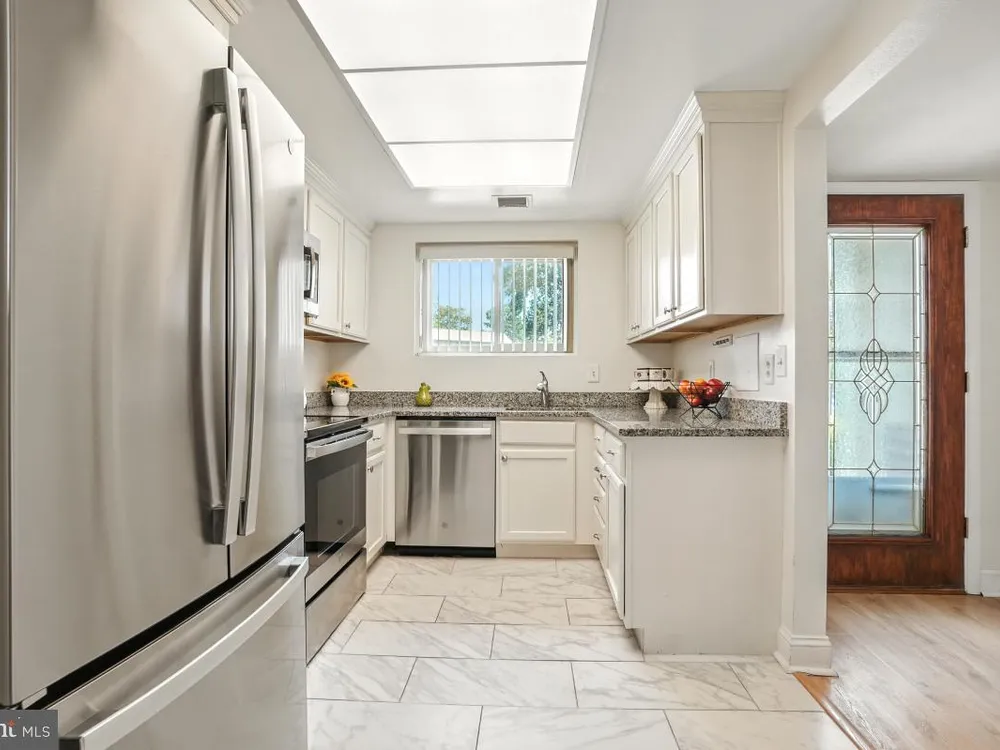 IMPROVED PRICE! Stunning Berkeley Model Townhouse with LVF flooring throughout. Sunny renovated kitchen with stainless appliances, granite counter top and white cabinetry. Beautiful remodeled tub to shower conversion. Powder room with full size washer and dryer recently replaced in 2024. HVAC replaced in 2025. Large living room leads to a light-filled, wood-framed enclosed year round sunroom with skylights and luxury vinyl plank flooring . What an ideal retreat for relaxing or entertaining. Upper level has two large bedrooms with ample closet space, adjoined by a full bath and two half baths. Additional storage under the stairs on the 1st level. Assigned parking space in front of unit. The monthly fee includes both the Coop fee, Homeowners Association fee, all utilities, basic cable, Wi-Fi, property taxes and most maintenance items. Please read disclosures in the document section for Montgomery Mutual Buyers information - including Sales Contract. Must have a credit score of 700+ and reserves for the monthly coop fee. All Montgomery mutual settlements are with Main Street Settlements in Olney, MD. Come visit this fabulous active 55+ community and enjoy all the Amenities that Leisure World has to offer and make this lovely coop your new home.