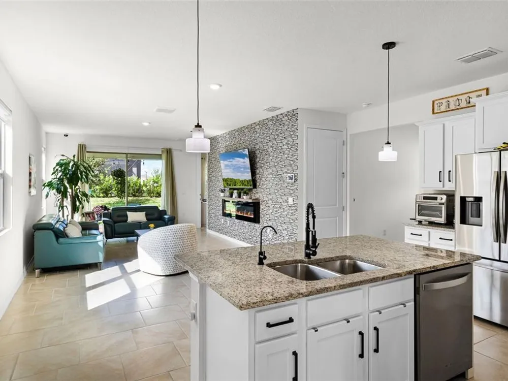 BEAUTIFUL 3 BEDROOM HOME IN SOUGHT-AFTER PALMS AT SERENOA, 55+ GATED COMMUNITY. Welcome to this impecably kept 3-bedroom, 2-bath home built in 2022. This SMART modern home offers a bright and spacious OPEN CONCEPT living space for comfort and convenience with electric feature wall FIREPLACE. Hightlights include - GOURMET KITCHEN with sleek finishes and plenty of storage with a walk in pantry; Spa-like en suite bath with walk-in closet; WATER SOFTNER AND FILTRATION SYSTEM; 220V OUTLET IN GARAGE - for electric car charger; covered patio perfect for relaxing or entertaining. Enjoy resort-style amenities, including pool, tennis courts, fitness center, dog park, and much more. Prime location near shopping, dining, medical facilities, and all the best that Clermont has to offer. Don't miss your chance to own this nearly new home in a vibrant, active-55+ community. Call to schedule your private showing today!