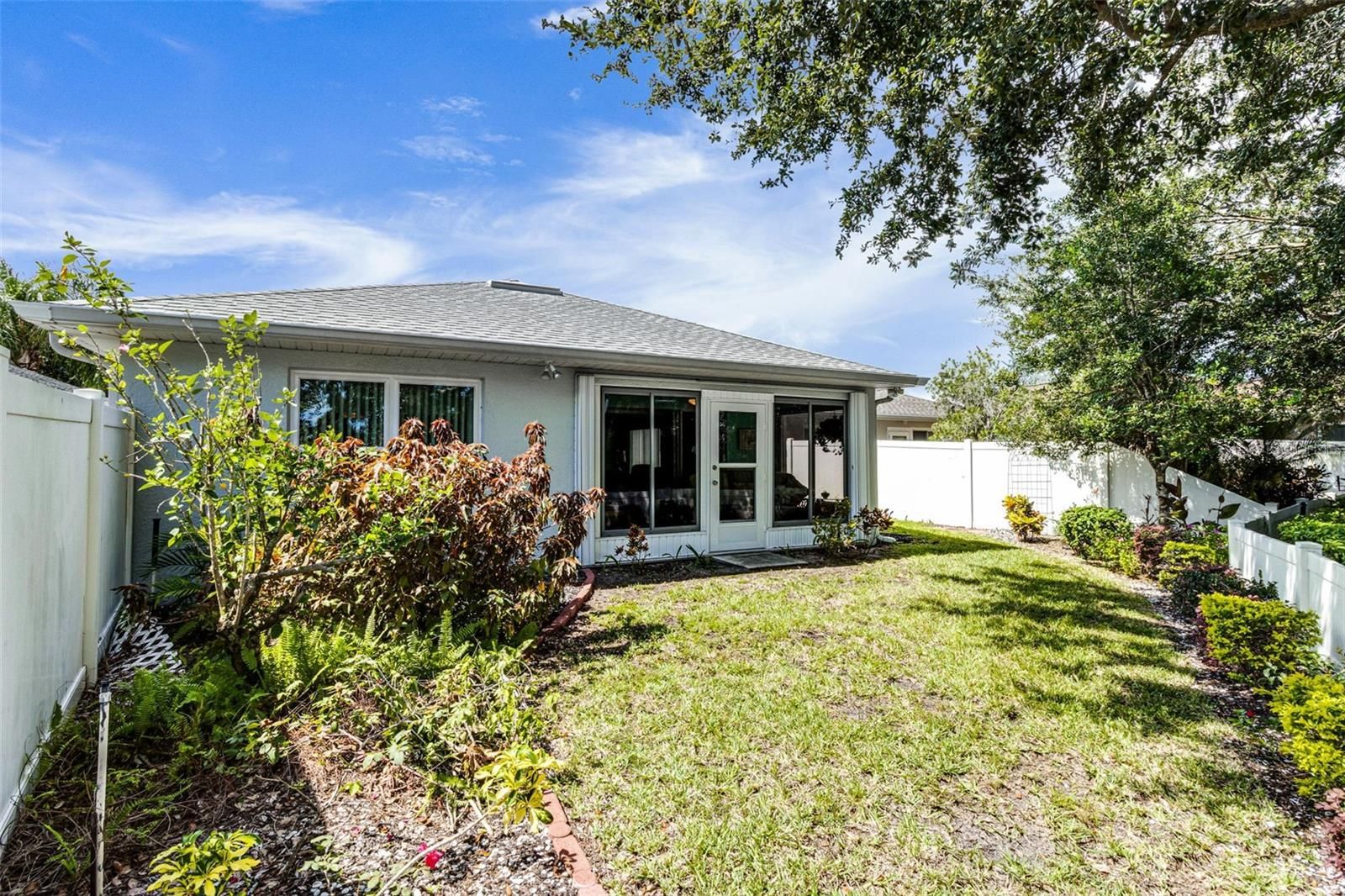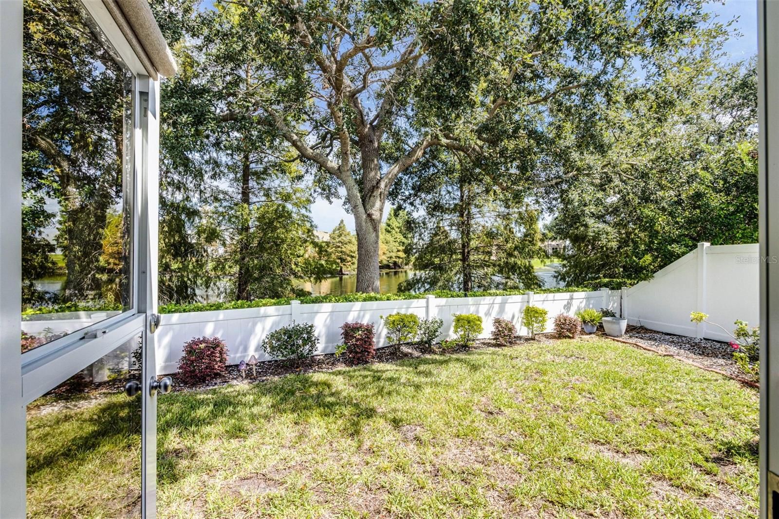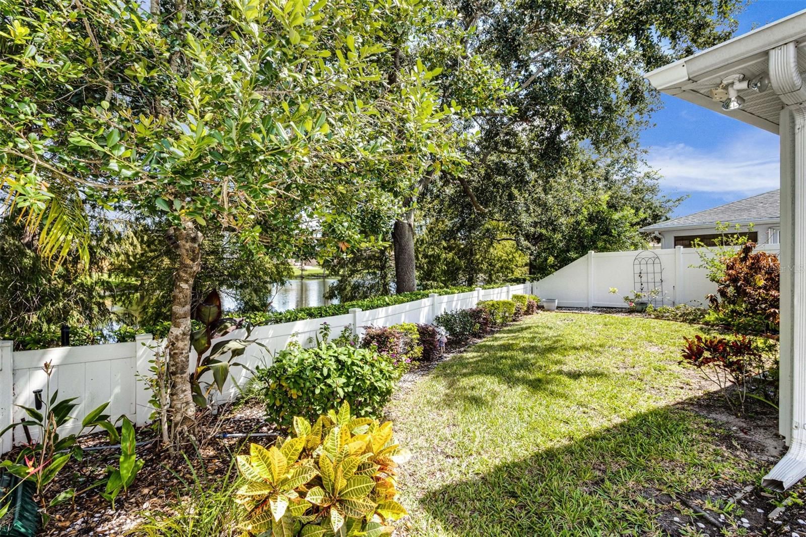 Enjoy serene pond views from this lovely 2-bedroom, 2-bathroom home located in the maintenance-free, active adult gated community of Traditions. Upon arrival, you’re welcomed by a charming covered porch with a newly installed glass storm entry door. Inside, the spacious living room features vaulted ceilings and expansive pond views—creating an open and airy atmosphere. The eat-in kitchen is designed for both style and function, showcasing maple wood cabinetry with under-mount lighting and brushed nickel hardware, complemented by Corian countertops and a striking imported Italian stone backsplash. Additional highlights include a new dishwasher and microwave, a closet pantry and a gooseneck faucet. The formal dining area offers a vaulted ceiling and upgraded double-pane sliding glass doors leading to a side yard, blending indoor and outdoor living. The primary suite is a tranquil retreat with serene pond views, a walk-in closet, and a spa-like ensuite bath featuring a comfort-height vanity and a walk-in shower with a glass enclosure. Outdoor living is at its finest with a Florida room and a private courtyard oasis surrounded by lush landscaping. From here, you’ll enjoy peaceful views of the pond and cascading fountain—perfect for relaxation and quiet moments in nature. Additional Features: New washer & dryer (2025), Solid surface flooring throughout, Curtain Rods included, Double-pane windows (front & back), Fenced-in yard, Architectural shingle roof (2020), Irrigation system, 3-ton AC Unit 2016, Exterior lighting, Hurricane shutters (Florida room),Programmable thermostat & My Q Garage Door Opener, Smart Lock, Pull-down attic stairs in 2-car garage, Premium lot with pond frontage, Beautifully paved driveway and walkway The picturesque community of Traditions offers a wealth of amenities, including a lakefront clubhouse with a dock and boat ramp, a heated swimming pool and spa, a ballroom, billiards, meeting rooms, a library, a computer room, a craft room, a dog park, tennis courts, basketball, bocce ball, shuffleboard, a fitness center, an aerobics studio, and more. Conveniently located near shopping, medical facilities, and major routes, this home offers a truly exceptional lifestyle. Monthly HOA fees cover exterior house painting, cable TV, internet, and front yard lawn service, ensuring worry-free living. Don’t miss this opportunity to embrace the beauty of waterfront living in a well-appointed home—offered partially furnished.
