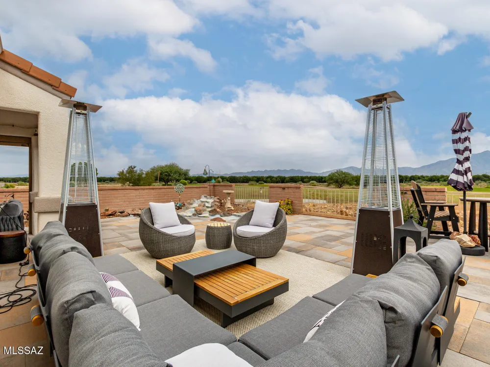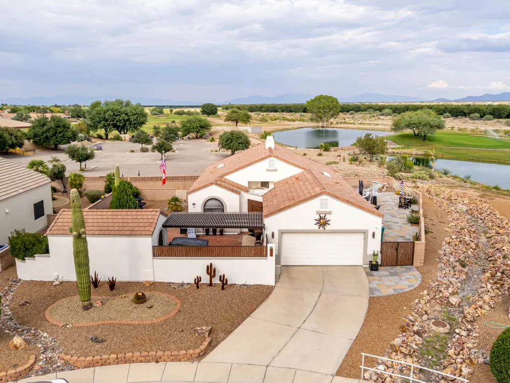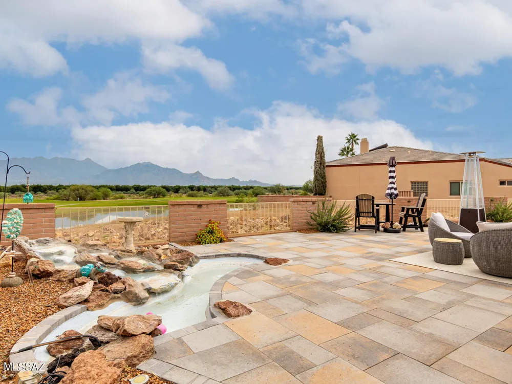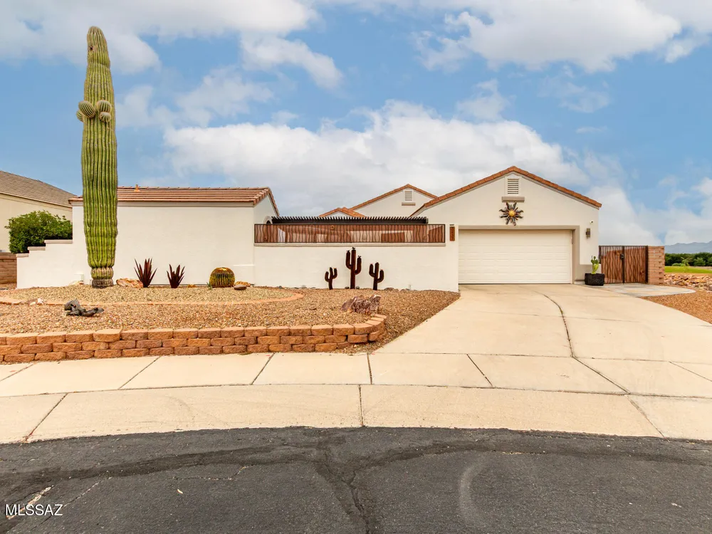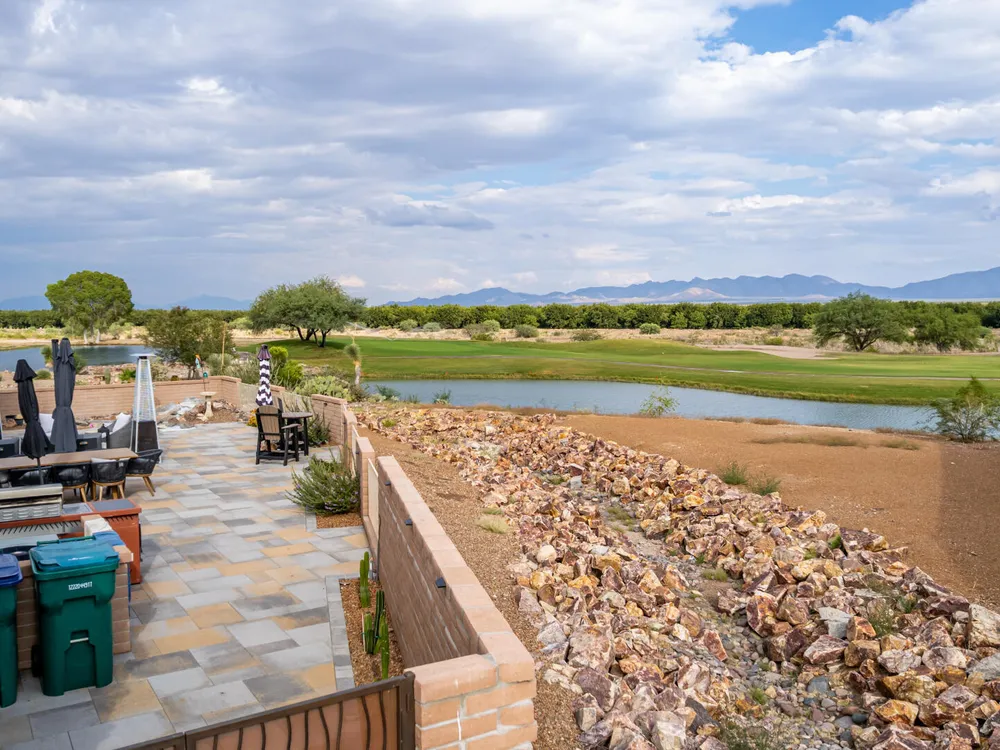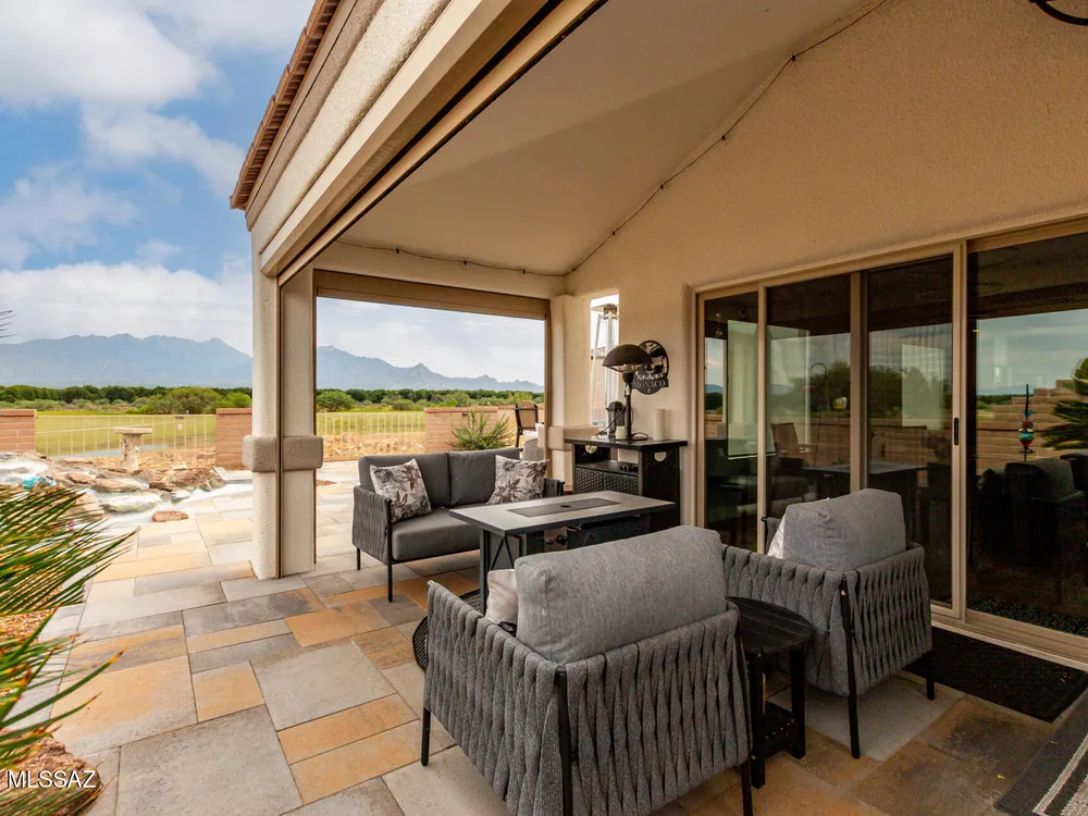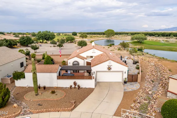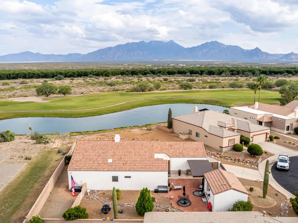 Enjoy breathtaking unobstructed views of the Santa Rita Mountains and the 18th green of Torres Blancas Golf Course from this stunning, fully remodeled home. Thoughtfully updated inside and out with elegant finishes and quality craftsmanship, this property also includes a detached casita for guests or personal use. The chef's kitchen features premium appliances, a Thor gas range with pot filler, reverse osmosis and alkaline water systems, solid-surface countertops, a coffee bar, built-in spice rack, and trash/recycling center. The great room opens to a wrap-around patio with new pavers and a beautifully landscaped backyard, professionally stubbed for gas, water, and electric, ready for your dream outdoor kitchen. Perfect for entertaining or relaxing while taking in the stunning views.