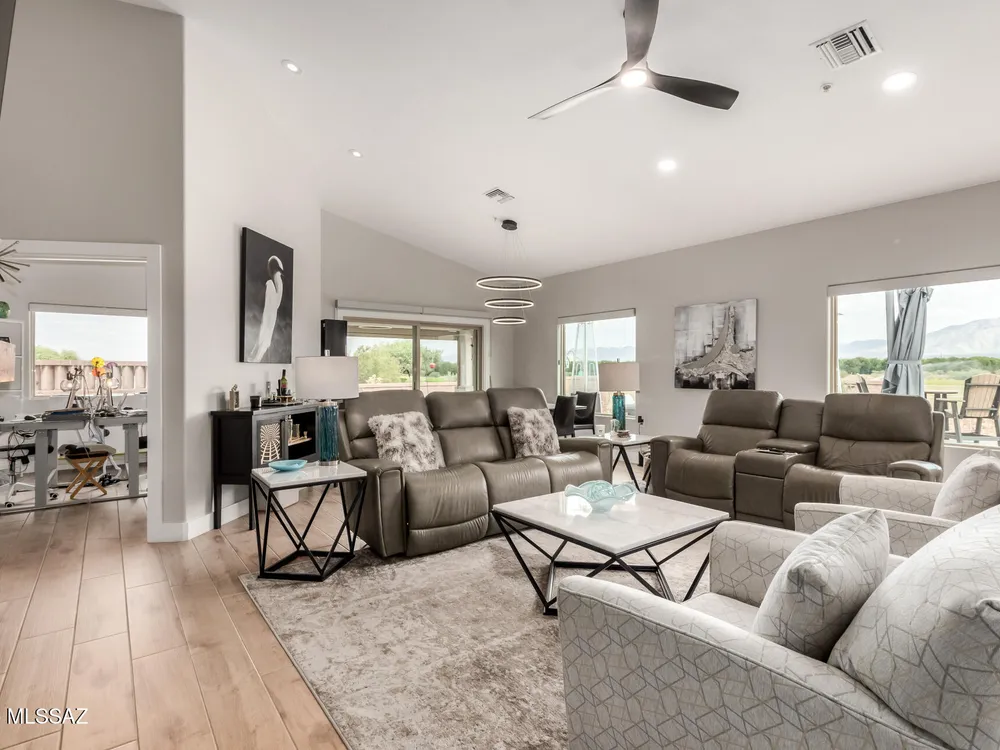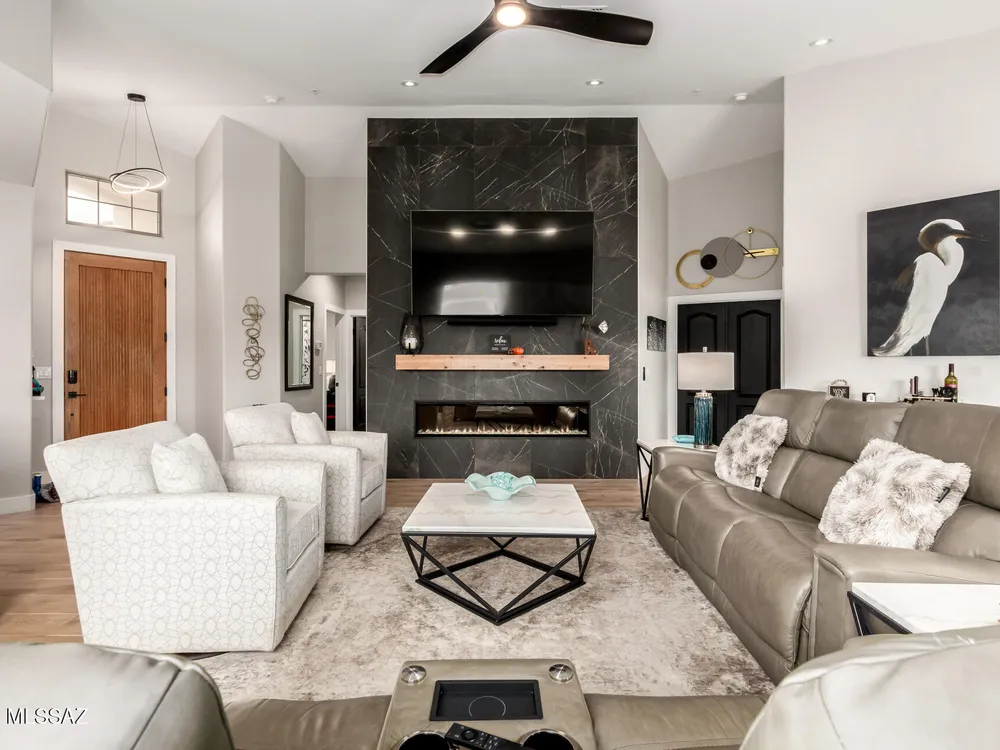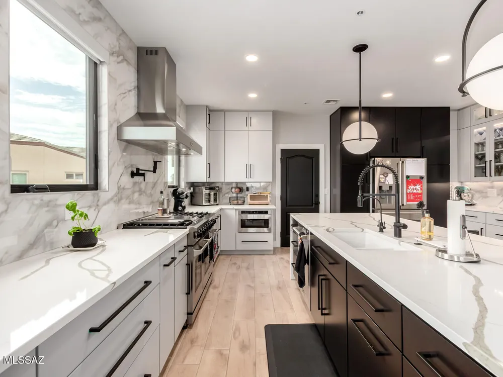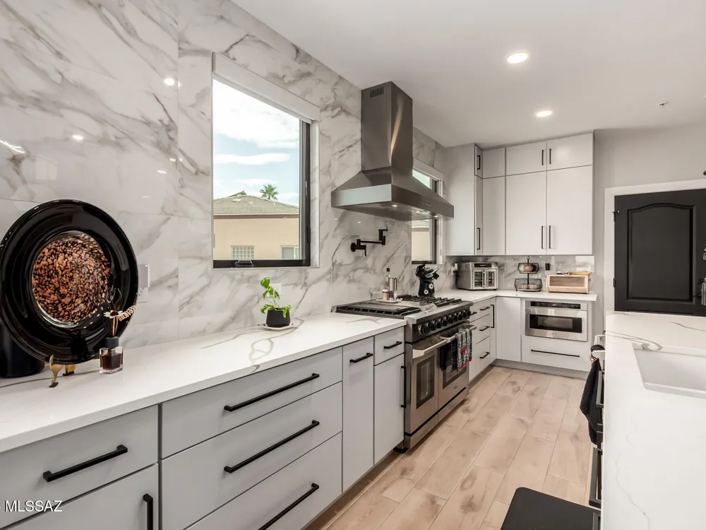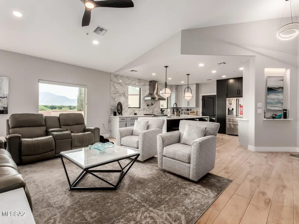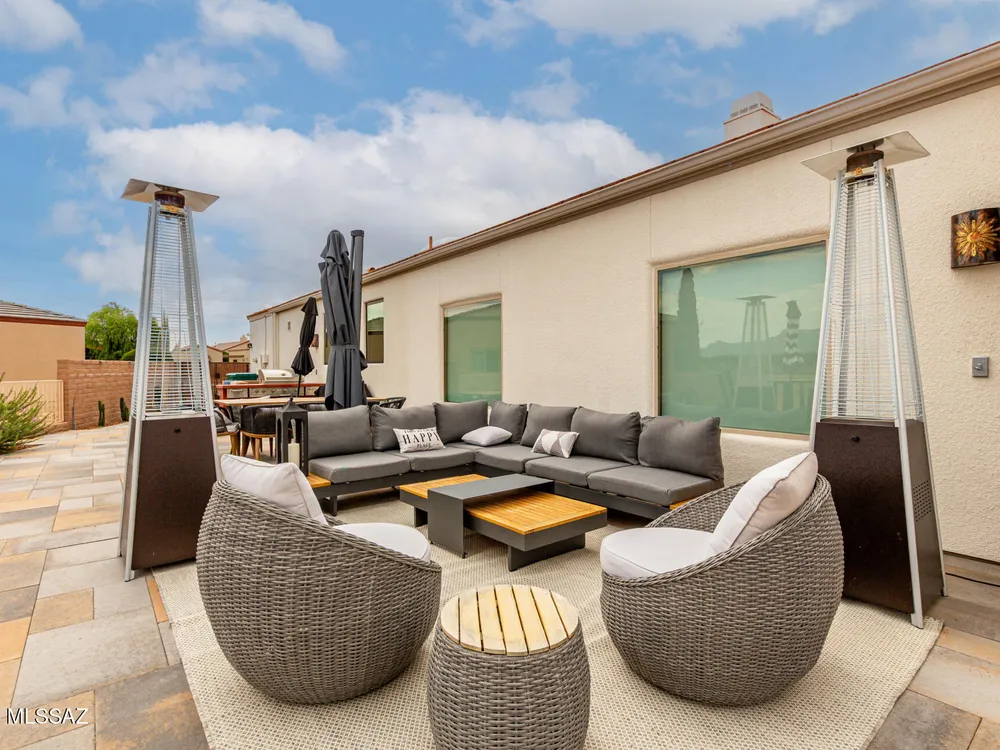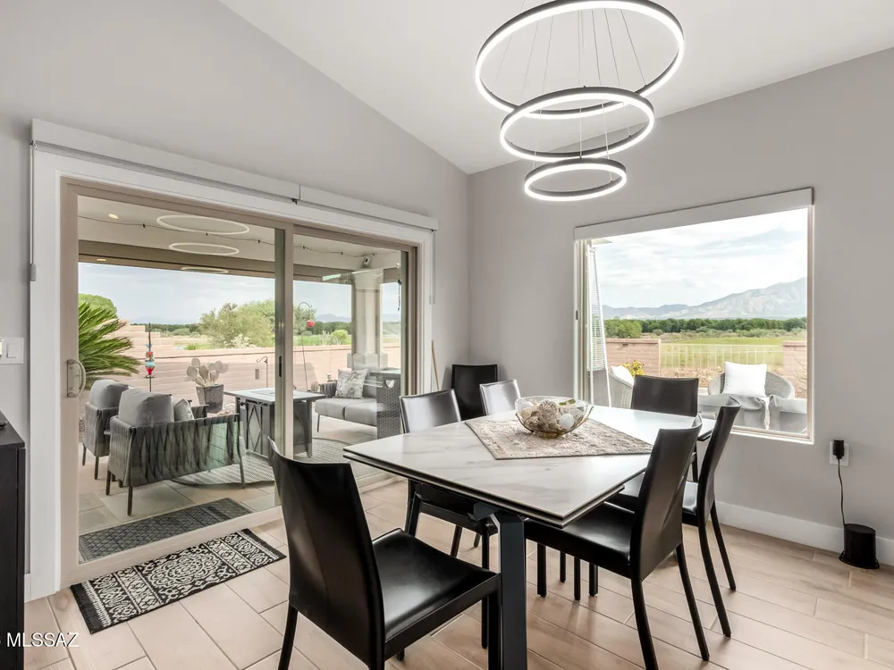 Enjoy breathtaking unobstructed views of the Santa Rita Mountains and the 18th green of Torres Blancas Golf Course from this stunning, fully remodeled home. Thoughtfully updated inside and out with elegant finishes and quality craftsmanship, this property also includes a detached casita for guests or personal use. The chef's kitchen features premium appliances, a Thor gas range with pot filler, reverse osmosis and alkaline water systems, solid-surface countertops, a coffee bar, built-in spice rack, and trash/recycling center. The great room opens to a wrap-around patio with new pavers and a beautifully landscaped backyard, professionally stubbed for gas, water, and electric, ready for your dream outdoor kitchen. Perfect for entertaining or relaxing while taking in the stunning views.