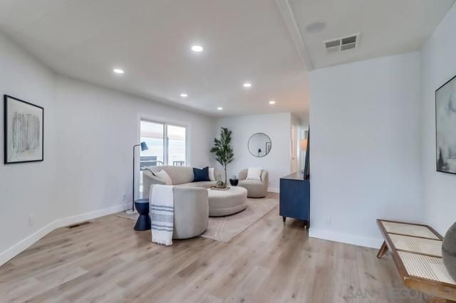 Remodeled inside and out in 2025! One of the best locations in Rancho Carlsbad. Views out to the golf course and rolling hills. Large covered deck and private backyard with fruit trees. New windows and slider door. New drywall and fresh paint inside and out. Can recessed lighting installed. Custom cabinetry in kitchen with large island. Both bathrooms were tastefully remodeled. Custom vanity in primary. You own the land and pay NO SPACE RENT. 433C recorded in 2002. This is a 2 bedroom mobile home with a seperate bonus room that could be used for storage, workout room, office and more. It is attached but has a seperate entrance from the carport. Move in and start enjoying the sought after 55 plus community amenities including golf course, clubhouse, tennis and pickleball courts, community pool, sauna, gym, hot tub, ping pong, dog park, garden club, available RV storage and more. Community has 24 hour guard gate and onsite management. Only minutes from Carlsbad Village and the beach. Includes a generous carport for parking and a bonus room that could be used as a shed, storage or workroom. This is the one you have been waiting for. Remodeled inside and out in 2025! Beautifully updated mobile home in one of the best locations in Rancho Carlsbad. Views out to the golf course and rolling hills. Large covered deck and private backyard with fruit trees. Interior and exterior of this home were extensively remodeled with high end materials to create a serene and neutral living space. New windows and slider door. Freshly painted inside and out. Can recessed lighting installed and new drywall throughout home. Kitchen was opened up to create an eat in island and open concept flow to the dining and family rooms. Both bathrooms were tastefully remodeled and include new plumbing fixtures, new showers, free standing vanities and a built in make-up station in the primary with ample storage. Move in and start enjoying the sought after 55 plus community amenities including golf course, clubhouse, tennis and pickleball courts, community pool, sauna, gym, hot tub, ping pong, dog park, garden club, available RV storage and more. You own the land and pay NO SPACE RENT. Home has 433C recorded in 2002. 24 hour guard gate and onsite management. Only minutes from Carlsbad Village and the beach. Includes a generous carport for parking and a bonus room that could be used as a shed, storage or workroom.