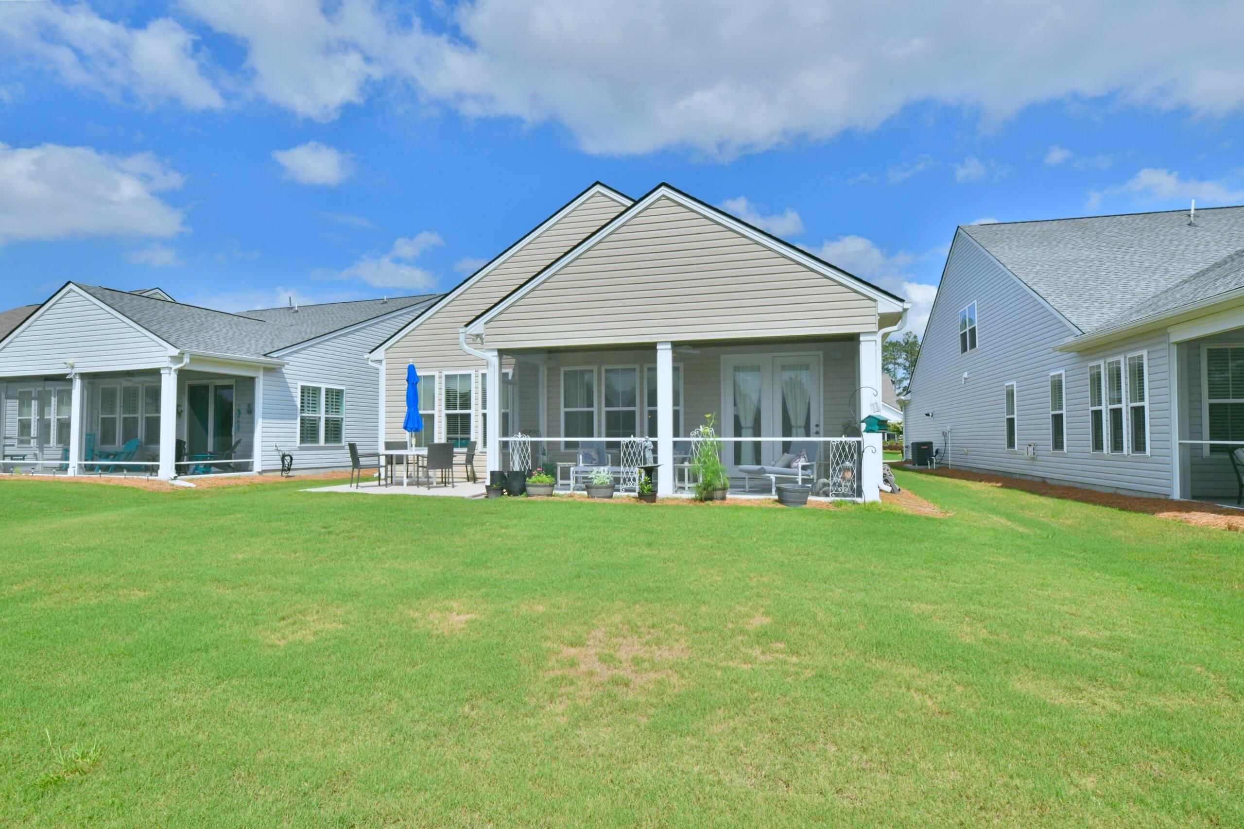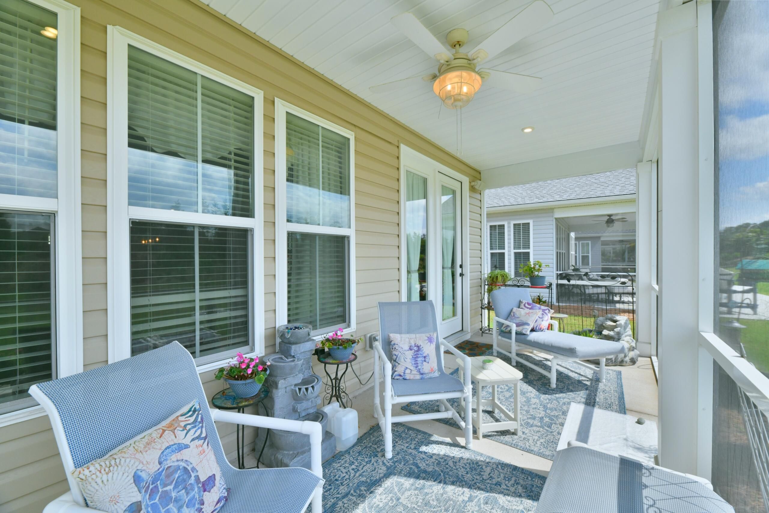 Welcome to this beautifully appointed 2-bedroom, 2-bath luxury home located in Summerville's premier 55+ community -- Four Seasons at The Lakes of Cane Bay, and experience low-maintenance luxury living designed with comfort and functionality in mind. This home offers thoughtful upgrades and a spacious, open layout perfect for everyday life and also entertaining. The kitchen is a standout with features that will delight any home chef, such as GE stainless steel appliances, quartz countertops, a gas cooktop, and double oven. High ceilings with built-in speakers and 8-foot doors throughout the home create an airy, upscale feel, while durable luxury vinyl plank flooring offers both functionality and elegance. The oversized master bedroom includes a tray ceiling, office nook, anddual vanities with subway-tiled shower in the master bath. Enjoy outdoor living with a large screened-in back porch, ideal for relaxing with a book or cup of coffee in the morning. The expansive backyard provides additional space for gardening or creating your own outdoor oasis. A tankless water heater ensures energy efficiency, and the 2-car garage adds convenience and storage. Living in Four Seasons means access to a vibrant lifestyle, with countless opportunities for recreation and connection. There's a state-of-the-art amenity center with a variety of event spaces, a fully equipped gym, indoor/outdoor pools, hot tub, tennis and pickle-ball courts, plus a 300+ acre community lake ideal for kayaking, fishing, and much more. This home offers everything you need to enjoy the best in active adult livingschedule your private tour today!