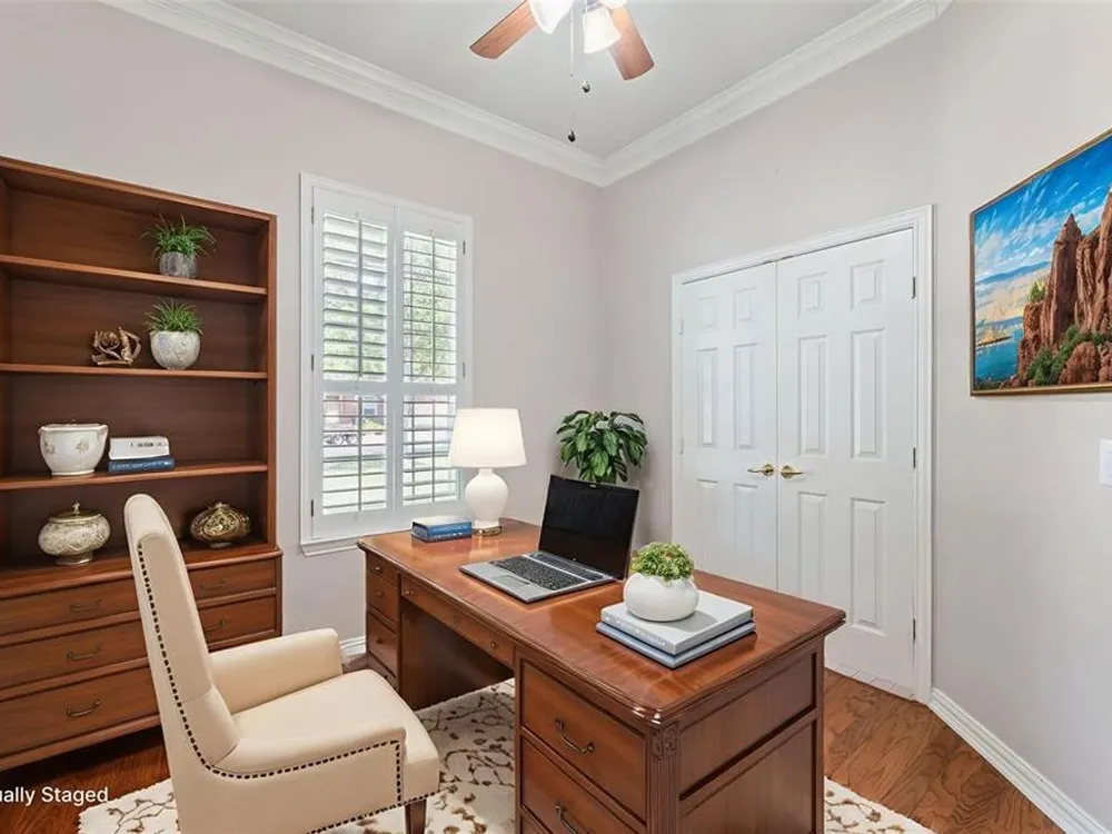 LARGE CORNER LOT, FLEXIBLE FLOOR PLAN: 2BR, 2BA, STUDY-DEN, SPACIOUS CLOSETS, LARGE COVERED PATIO. FENCED BACKYARD. FEATURES: Wood, Tile & Carpet Flooring, Plantation Shutters, Double Door Study-Office-Den, Great Room: Instant-On Gas Fireplace & Media Niche, Breakfast Nook with Window Seat, Double Crown Molding, Ceiling Fans, Kohler Toilets, 10-11-12 ft Ceilings, Art Niche, Large BR Closets, Separate full size Laundry Room with space for Refrigerator. KITCHEN: Electric Glass Cooktop, Double Pull-out Shelves in Bottom Cabinets, Auto Light in Pantry. GREAT ROOM: Large TV Niche, Instant on Gas Fireplace, PRIMARY BEDROOM EN SUITE: Sitting Area, Expansive Bedroom & WIC, Separate Vanities, Separate Shower. GUEST BEDROOM: Transom Windows, Oversized WIC 5' by 9'. OTHER: AC Coil WH 2023, Roof 2015 ---- LIVE IN HERITAGE RANCH: THE PREMIER GATED RESORT STYLE AMENITIES FOR THOSE OF US 50+: Scenic & Friendly Community, Indoor & Outdoor Pools, Fitness Center, 2 Restaurants, Ballroom, Dance Floor, Pickle Ball & Tennis Courts, Championship Golf Course, Hike & Bike Trails, Bocce Ball, Myriad of Groups, Clubs & Events.