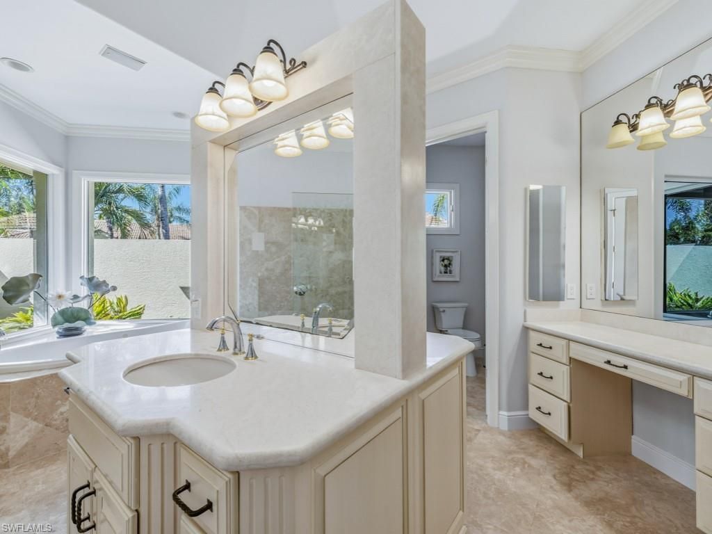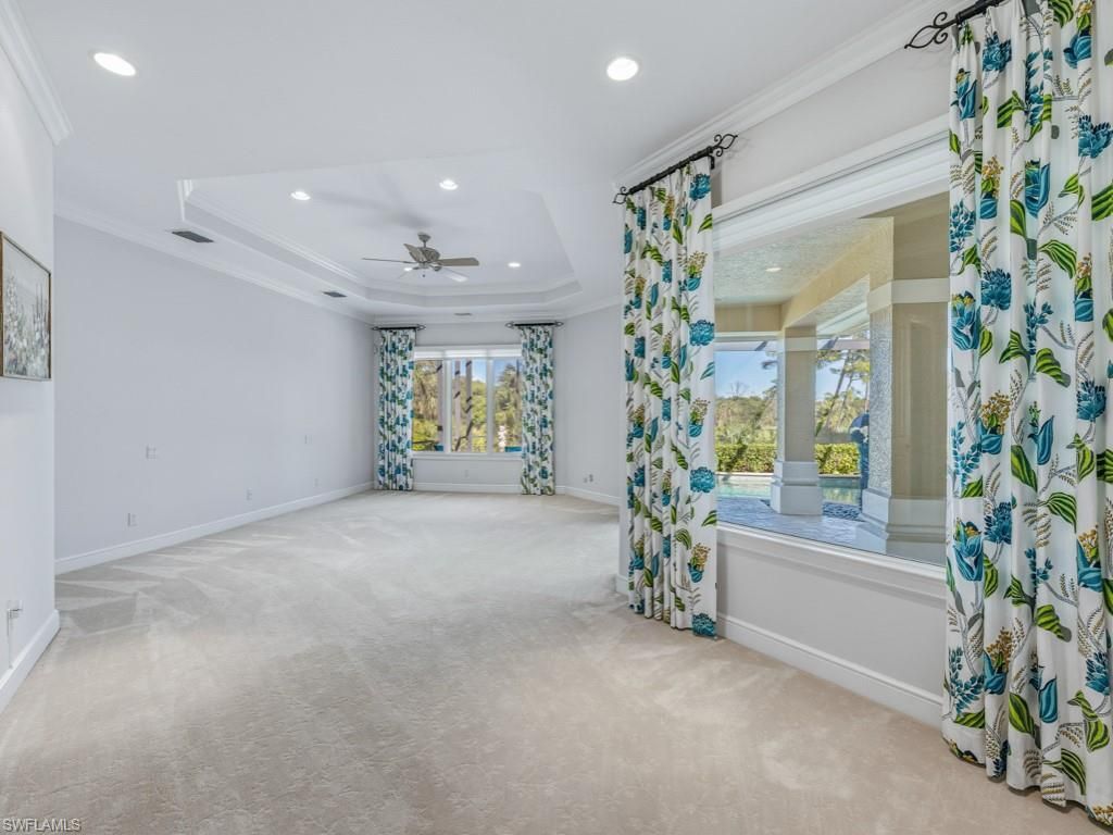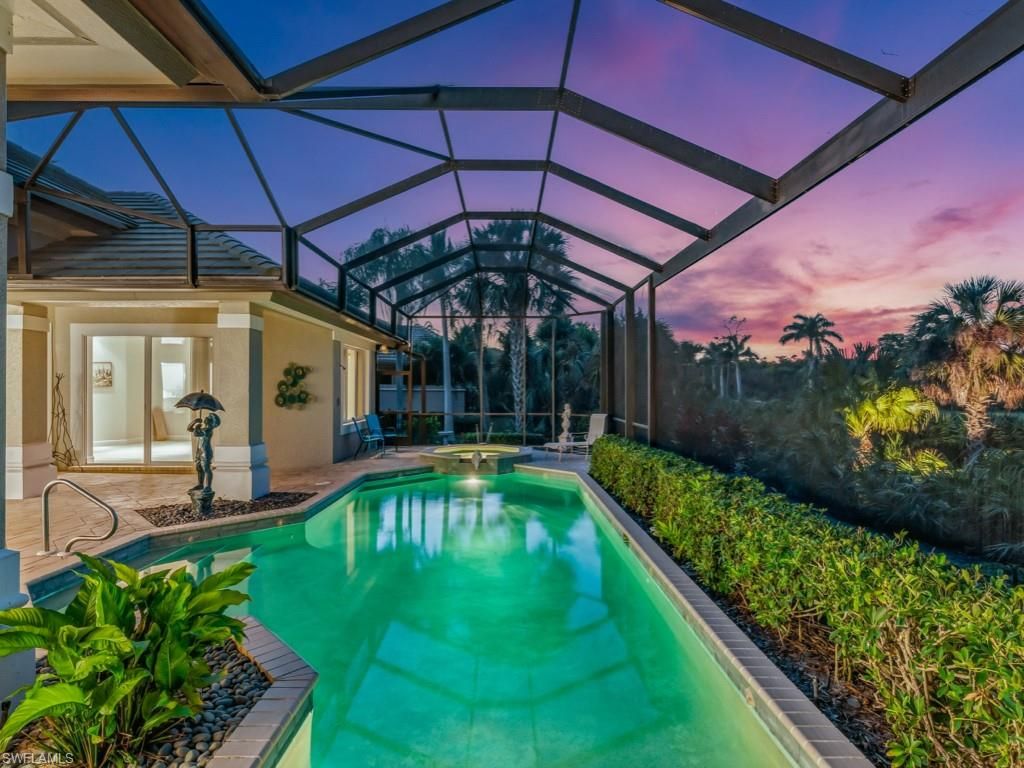Experience the very best of the Bonita Bay lifestyle in this beautifully appointed 4-bedroom plus den, 4-bath residence in the highly sought-after Creekside at Bonita Bay. This home's sweeping golf-course views frame your daily life in natural beauty. Step inside to volume tray ceilings, travertine marble floors, crown molding, and picture windows and grand sliders that blur the line between indoors and out. The chef-ready kitchen features newer appliances. A living room with a cozy fireplace overlooks the pool and fairways, an inviting spot for relaxed gatherings or quiet evenings. Wake up to the serenity of golf-course vistas from the primary suite, offering private lanai access, a custom walk-in closet, and a spa-inspired bath complete with jetted tub, walk-in shower, and dual vanities. A second-floor private bedroom with its own ensuite bath is perfect for visiting guests. The dedicated den with built-in desk provides an ideal home office, or a flexible space for guests. Florida living unfolds effortlessly outdoors with a spacious screened lanai, expansive covered seating area, outdoor kitchen, and sparkling private pool and spa. A full pool bath adds convenience for both owners and guests. Enjoy peace of mind with a 2020 roof, manual hurricane shutters, and a 2-car attached garage. As a resident of Bonita Bay, you'll enjoy exclusive access to a wealth of amenities including a private beach park, the popular BackwaterJack's Restaurant, and several community parks. Riverwalk Park offers a kayak, canoe, and boat launch, along with pickleball and tennis courtsfor active living. For golf enthusiasts, there’s an opportunity to join the Country Club, which boasts five championship golf courses, asports/racquet center with a resort-style pool, and a state-of-the-art fitness facility, along with a luxury spa and salon. Your Bonita Bay beautyawaits. Whether hosting lively gatherings, enjoying quiet mornings by the pool, or savoring fairway views, this home delivers an unmatched lifestyle.