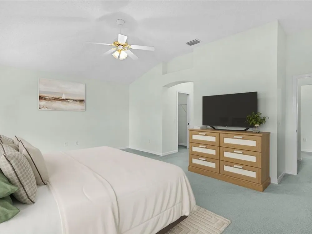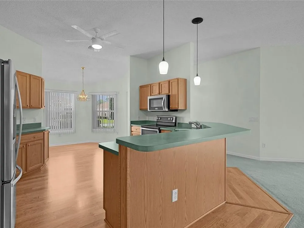 One or more photo(s) has been virtually staged. SOME PHOTOS HAVE BEEN VIRTUALLY STAGED. BOND PAID! FRESHLY PAINTED ! ROOF 2020 – CertainTeed Sure Start Plus Warranty through September 2040 covering materials, labor, and tear-off. Warranty is TRANSFERABLE TO NEW OWNERS! HVAC 2018 | Hot Water Heater 2010, New Smoke Detectors/Combination CO2/Smoke Detector (7 Total). Freshly painted HIBISCUS Designer 3 Bedroom, 2 Bathroom, 2-car garage with a sliding screen, ideally located in the sought-after Village of Glenbrook. Texture Painted Concrete Driveway. Features low-maintenance landscaping and an inviting open floor plan with laminate flooring and carpet. Neutral tones throughout. Beautiful Kitchen featuring stainless steel appliances Natural Gas is available, abundant solid wood Merillat cabinetry, elegant solid surface countertops, and a charming breakfast nook - perfect for casual dining and everyday living. The spacious dining/living room area boasts volume ceilings and sliding glass doors to the enclosed lanai with glass windows – perfect for relaxing or entertaining. Primary suite features two walk-in closets, dual vanities, and a walk-in shower. Guest bedrooms are on the opposite side for privacy; one bedroom does not have a closet. Guest bath includes a solid surface single vanity and walk-in shower. Laundry room conveniently located off the kitchen. Enjoy Glenbrook’s prime location – close to championship and executive golf courses, tennis, softball fields, pools, recreation centers, and top entertainment. Nearby Glenview Champions Golf & Country Club offers 27 holes of championship golf, HAR-TRU CLAY Tennis courts, and a pro shop. Saddlebrook Recreation Complex features two executive courses, softball diamonds, adult pool, and polo pavilion. For evening fun, the Savannah Center hosts concerts, theater, and Broadway-style shows.