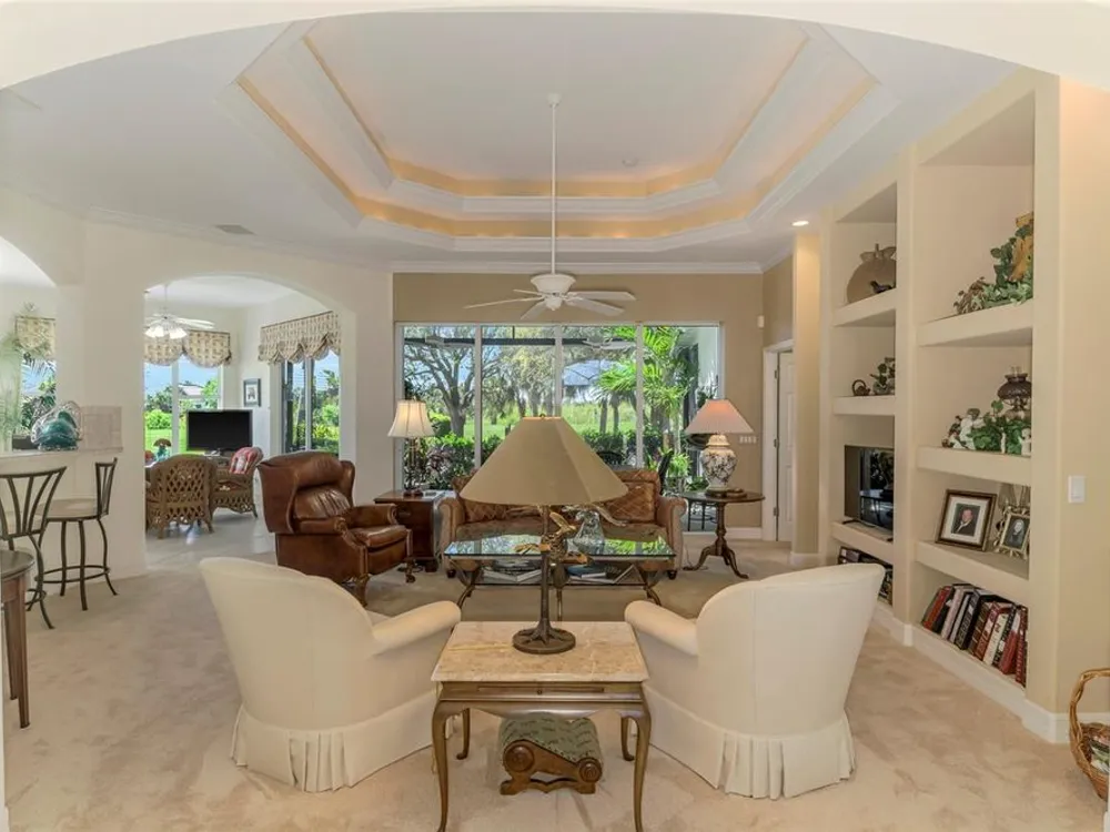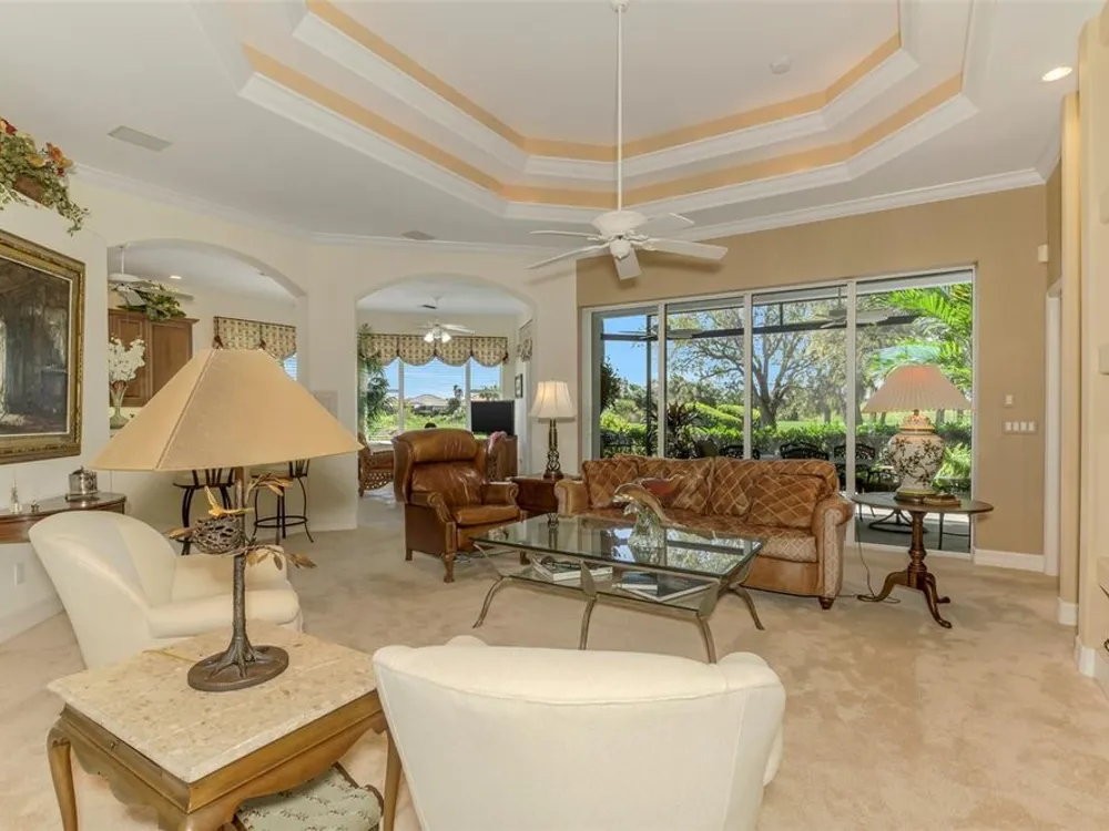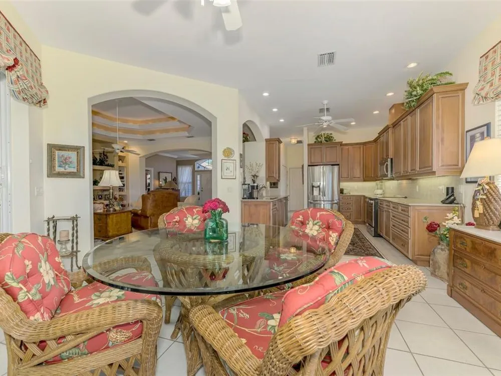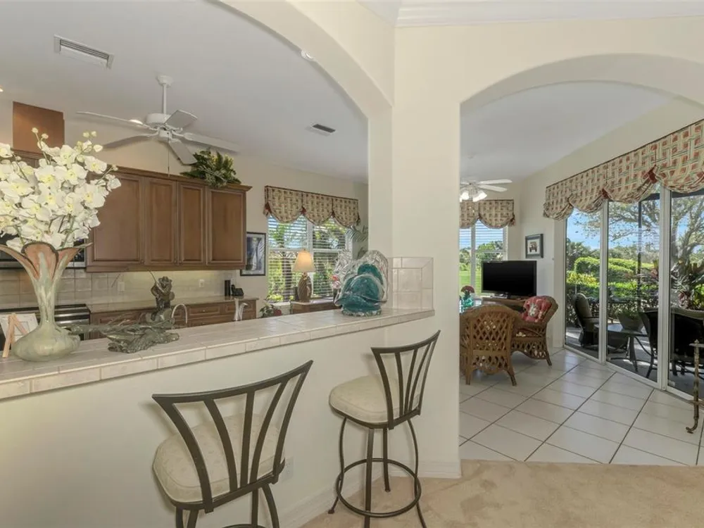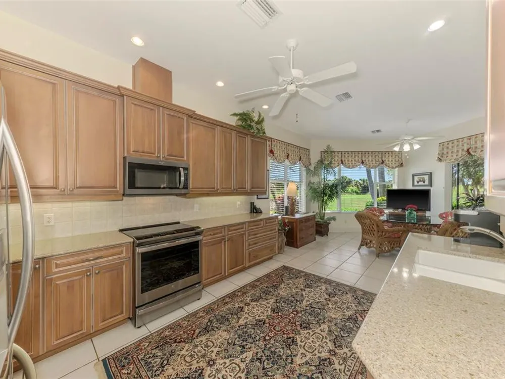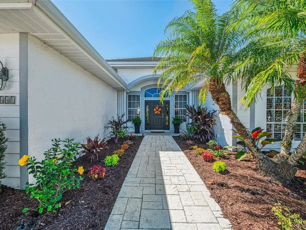 Why wait to build new when you can own this stunning FERO signature custom-built “SOUTHERN BELL” 3-bedroom home in the highly desirable community of Riverwood. Perfectly positioned on an oversized, landscaped lot, this home boasts nostalgic, picturesque golf course views with a charming bridge nestled beneath a majestic oak tree—creating a serene and peaceful backdrop. From the long, decorative stamped concrete driveway and impressive front entry, step inside to a spacious, light-filled interior featuring soaring volume tray ceiling heights and a modern open-concept layout. The kitchen is a true showstopper, showcasing quality cabinetry, Corian countertops, and a sleek design that seamlessly blends style and function. Gather around the elegant in-wall entertainment center and indulge in spa-like luxury with Roman showers, an updated primary bathroom, and a generous California walk-in closet. Pocketing sliding glass doors open to reveal an expansive tiled lanai with a new picture screen, ideal for entertaining or enjoying your own private oasis. Notable upgrades include a brand-new lanai cage, a newly replaced tile roof (2019), an oversized garage with 4 ft. extension, and a high-efficiency air conditioner (2017), among others. This home is move-in ready, with some quality furnishings included, offering exceptional value priced under $500,000. This represents a rare opportunity to own a beautifully maintained home on a premium lot in one of Florida’s most sought-after communities.About Riverwood: Set on 1,300 acres of preserved natural beauty, Riverwood is a master-planned, gated community that combines elegant living with resort-style amenities. Conveniently located in Port Charlotte—just 45 minutes south of Sarasota and an hour north of Fort Myers—this award-winning community has been recognized as the #1 Place to Live by CNN and Money Magazine and a Top Place to Retire by Where to Retire Magazine.Residents enjoy a 4.5-star Golf Digest-rated golf course, private Beach Club on the Gulf of Mexico (membership subject to availability), a state-of-the-art fitness center, recreation complex, junior Olympic-size pool, plus easy access to beaches, fishing, boating, marinas, shopping, dining, and entertainment. Don’t miss your chance to live the Florida lifestyle you’ve always dreamed of—schedule your private tour today and discover everything this beautiful home and community have to offer!