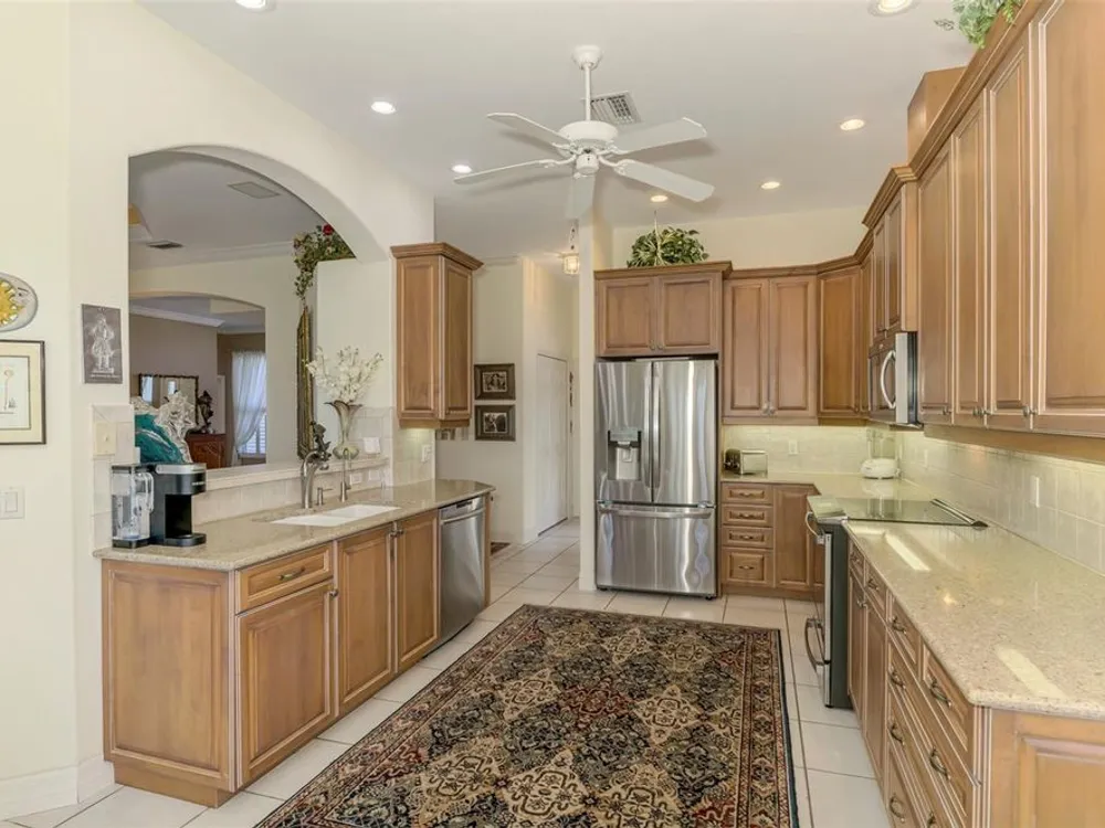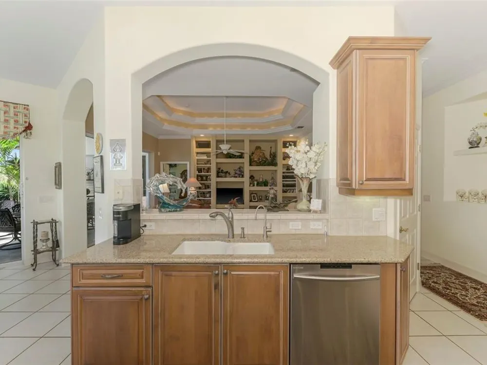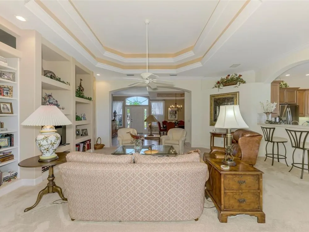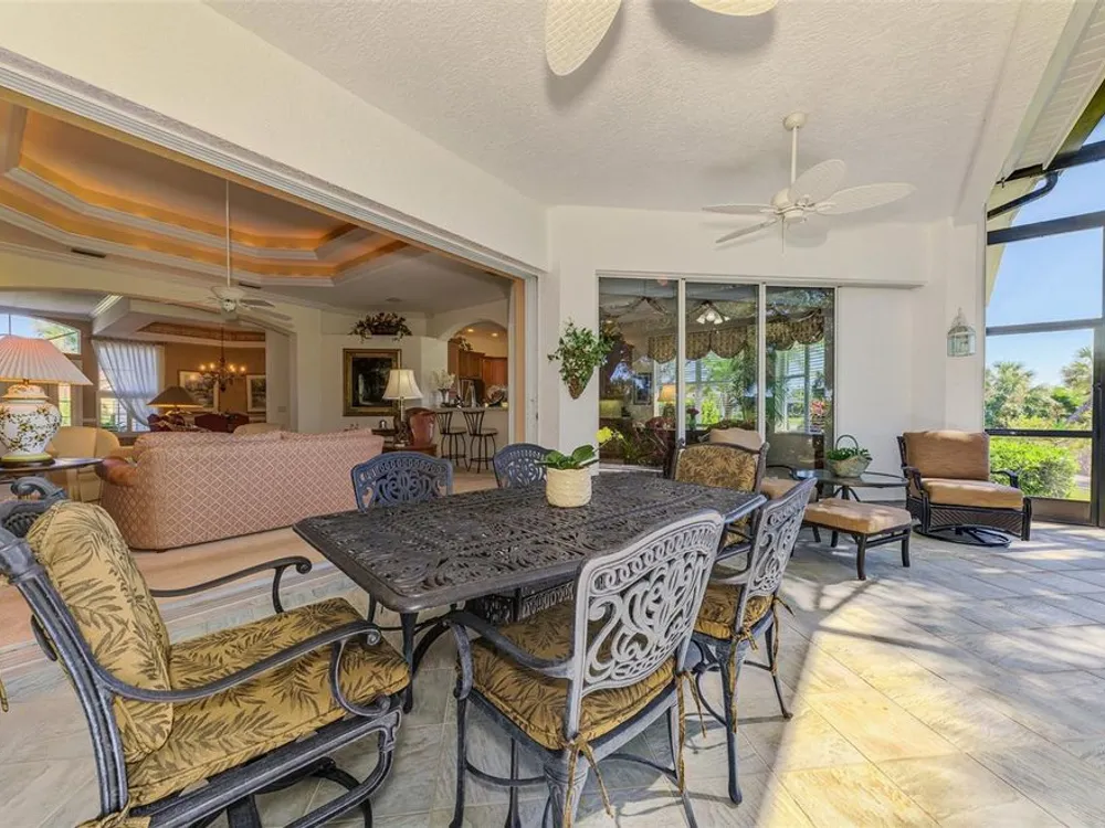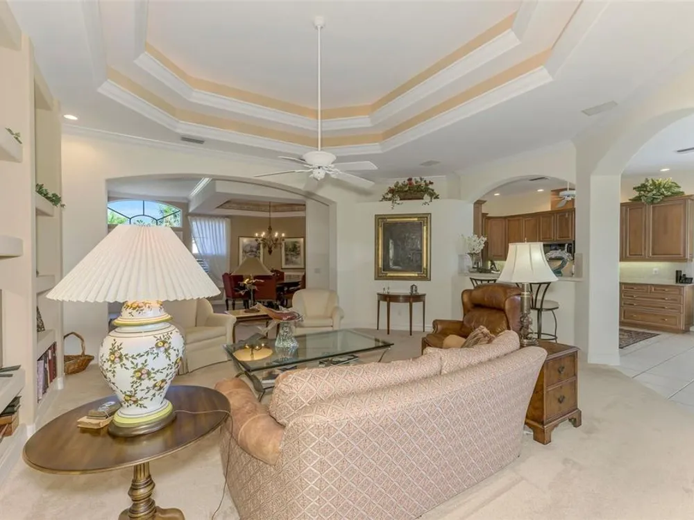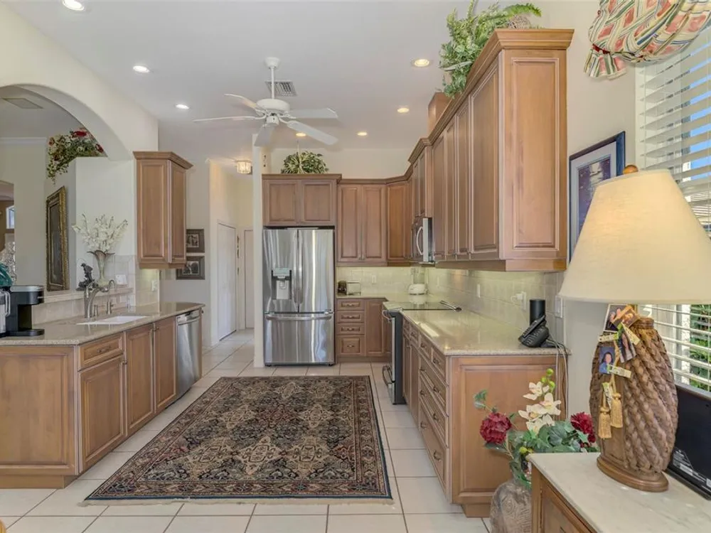 Why wait to build new when you can own this stunning FERO signature custom-built “SOUTHERN BELL” 3-bedroom home in the highly desirable community of Riverwood. Perfectly positioned on an oversized, landscaped lot, this home boasts nostalgic, picturesque golf course views with a charming bridge nestled beneath a majestic oak tree—creating a serene and peaceful backdrop. From the long, decorative stamped concrete driveway and impressive front entry, step inside to a spacious, light-filled interior featuring soaring volume tray ceiling heights and a modern open-concept layout. The kitchen is a true showstopper, showcasing quality cabinetry, Corian countertops, and a sleek design that seamlessly blends style and function. Gather around the elegant in-wall entertainment center and indulge in spa-like luxury with Roman showers, an updated primary bathroom, and a generous California walk-in closet. Pocketing sliding glass doors open to reveal an expansive tiled lanai with a new picture screen, ideal for entertaining or enjoying your own private oasis. Notable upgrades include a brand-new lanai cage, a newly replaced tile roof (2019), an oversized garage with 4 ft. extension, and a high-efficiency air conditioner (2017), among others. This home is move-in ready, with some quality furnishings included, offering exceptional value priced under $500,000. This represents a rare opportunity to own a beautifully maintained home on a premium lot in one of Florida’s most sought-after communities.About Riverwood: Set on 1,300 acres of preserved natural beauty, Riverwood is a master-planned, gated community that combines elegant living with resort-style amenities. Conveniently located in Port Charlotte—just 45 minutes south of Sarasota and an hour north of Fort Myers—this award-winning community has been recognized as the #1 Place to Live by CNN and Money Magazine and a Top Place to Retire by Where to Retire Magazine.Residents enjoy a 4.5-star Golf Digest-rated golf course, private Beach Club on the Gulf of Mexico (membership subject to availability), a state-of-the-art fitness center, recreation complex, junior Olympic-size pool, plus easy access to beaches, fishing, boating, marinas, shopping, dining, and entertainment. Don’t miss your chance to live the Florida lifestyle you’ve always dreamed of—schedule your private tour today and discover everything this beautiful home and community have to offer!
