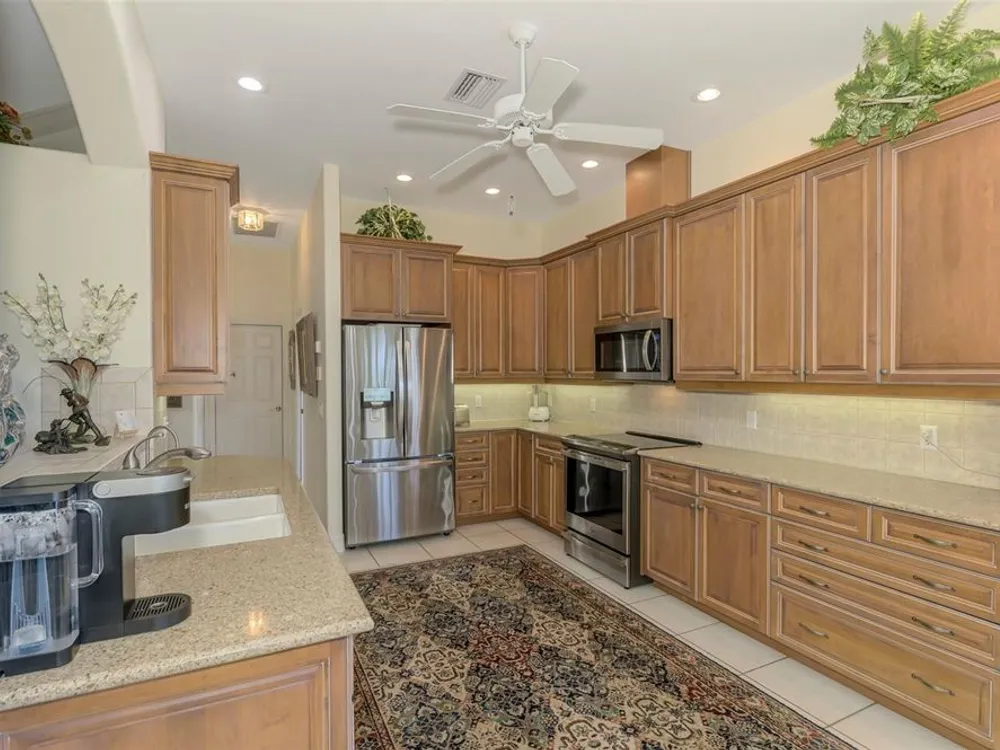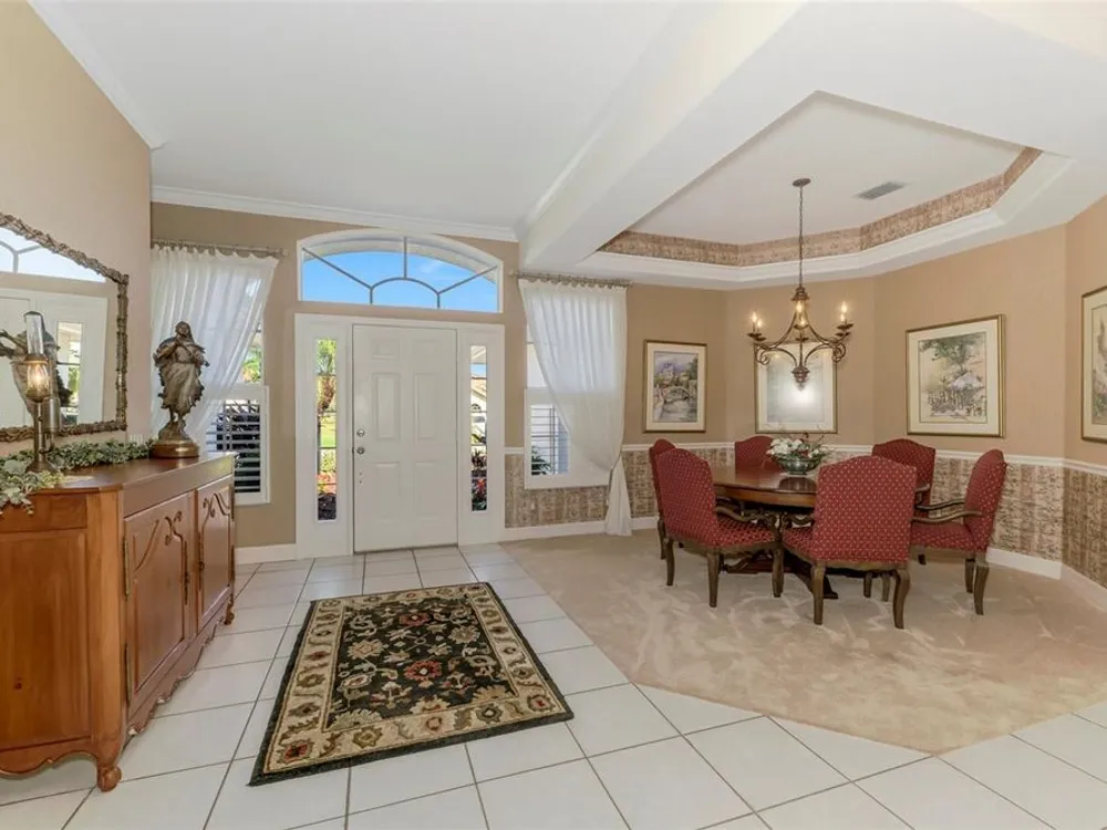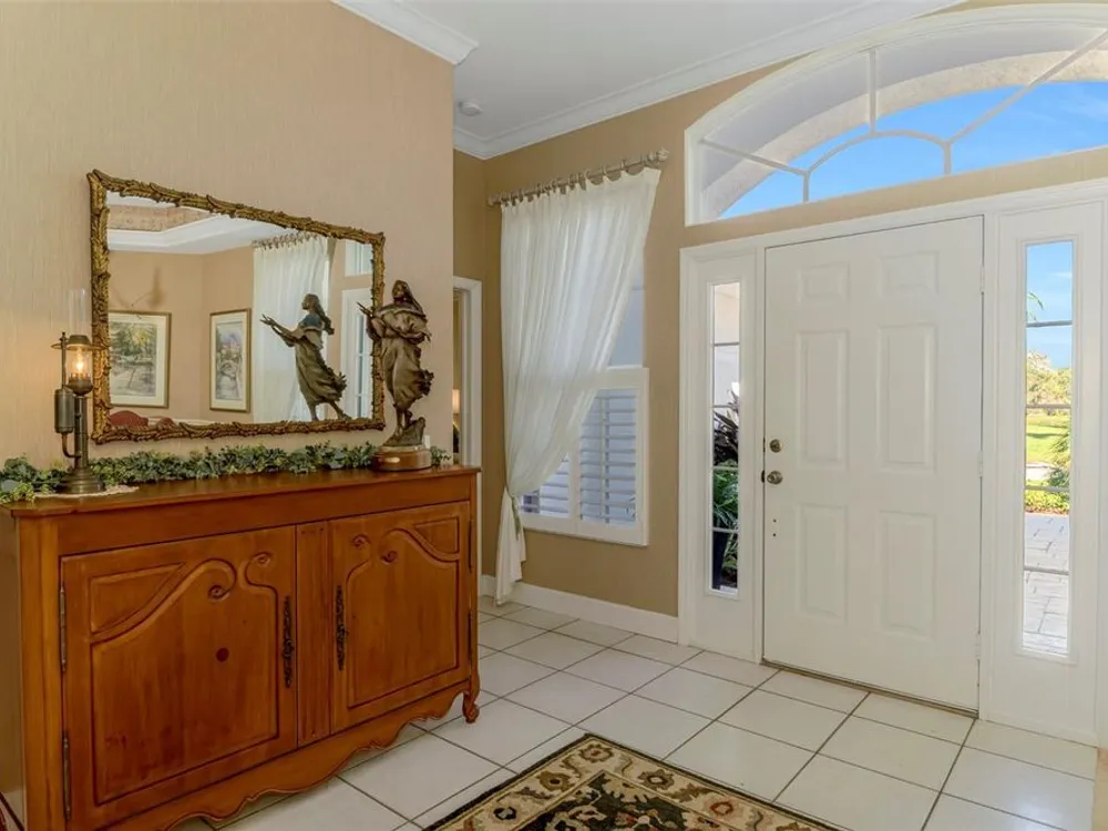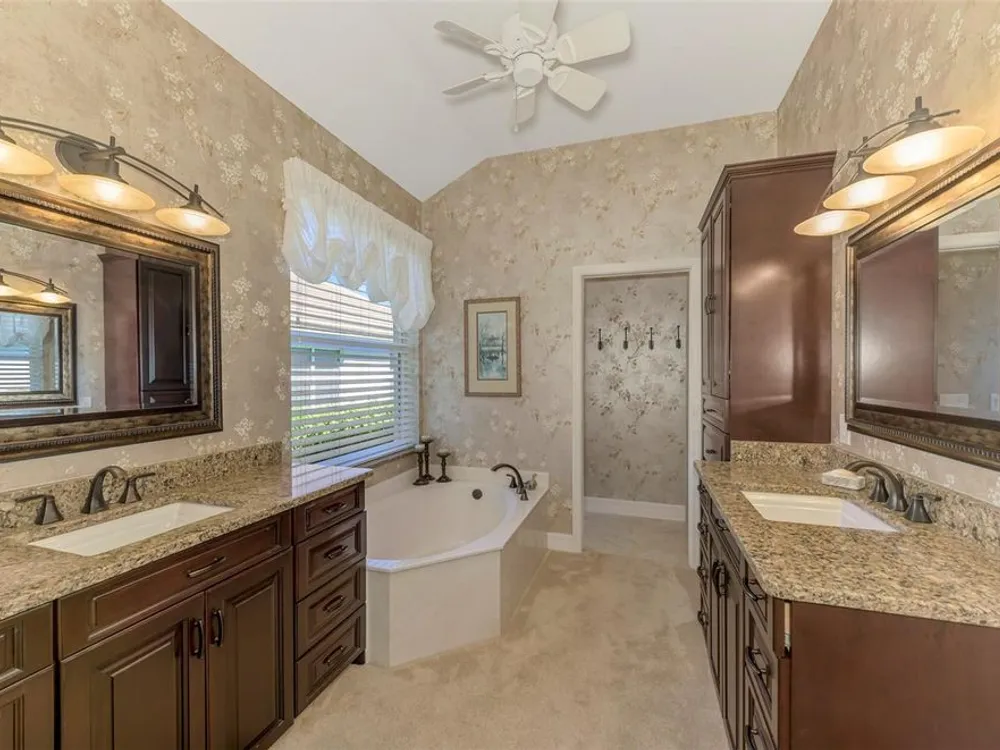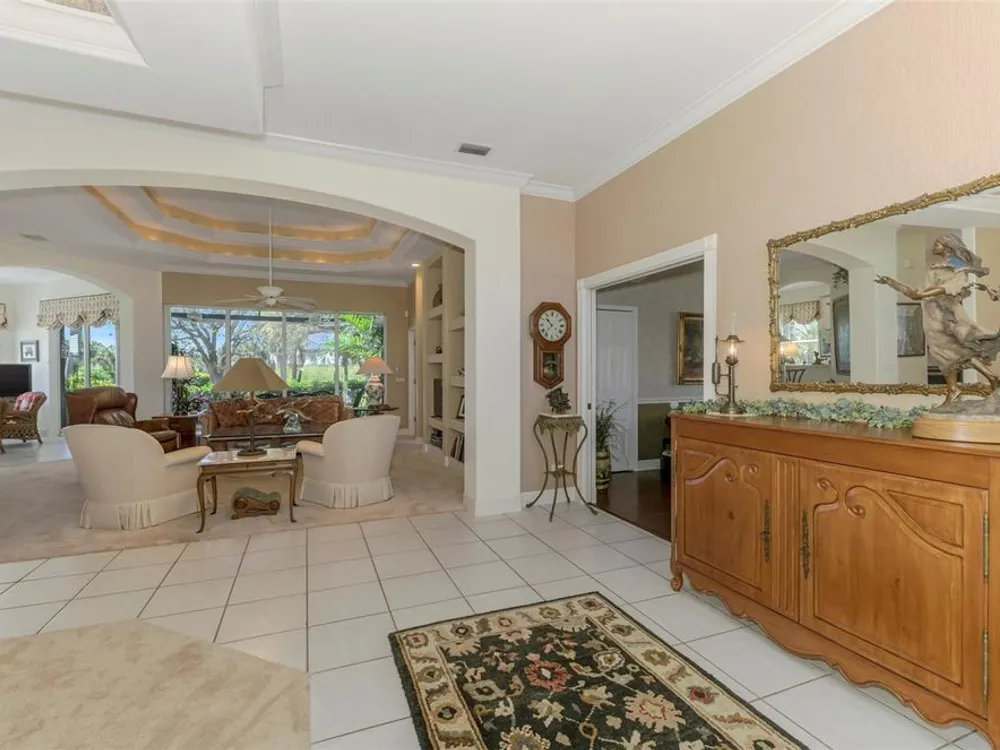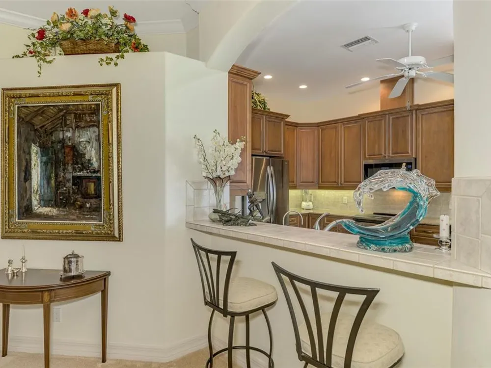 Why wait to build new when you can own this stunning FERO signature custom-built “SOUTHERN BELL” 3-bedroom home in the highly desirable community of Riverwood. Perfectly positioned on an oversized, landscaped lot, this home boasts nostalgic, picturesque golf course views with a charming bridge nestled beneath a majestic oak tree—creating a serene and peaceful backdrop. From the long, decorative stamped concrete driveway and impressive front entry, step inside to a spacious, light-filled interior featuring soaring volume tray ceiling heights and a modern open-concept layout. The kitchen is a true showstopper, showcasing quality cabinetry, Corian countertops, and a sleek design that seamlessly blends style and function. Gather around the elegant in-wall entertainment center and indulge in spa-like luxury with Roman showers, an updated primary bathroom, and a generous California walk-in closet. Pocketing sliding glass doors open to reveal an expansive tiled lanai with a new picture screen, ideal for entertaining or enjoying your own private oasis. Notable upgrades include a brand-new lanai cage, a newly replaced tile roof (2019), an oversized garage with 4 ft. extension, and a high-efficiency air conditioner (2017), among others. This home is move-in ready, with some quality furnishings included, offering exceptional value priced under $500,000. This represents a rare opportunity to own a beautifully maintained home on a premium lot in one of Florida’s most sought-after communities.About Riverwood: Set on 1,300 acres of preserved natural beauty, Riverwood is a master-planned, gated community that combines elegant living with resort-style amenities. Conveniently located in Port Charlotte—just 45 minutes south of Sarasota and an hour north of Fort Myers—this award-winning community has been recognized as the #1 Place to Live by CNN and Money Magazine and a Top Place to Retire by Where to Retire Magazine.Residents enjoy a 4.5-star Golf Digest-rated golf course, private Beach Club on the Gulf of Mexico (membership subject to availability), a state-of-the-art fitness center, recreation complex, junior Olympic-size pool, plus easy access to beaches, fishing, boating, marinas, shopping, dining, and entertainment. Don’t miss your chance to live the Florida lifestyle you’ve always dreamed of—schedule your private tour today and discover everything this beautiful home and community have to offer!