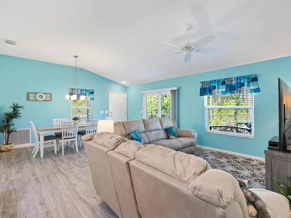 - Ceiling Fan(s), High Ceilings, Kitchen/Family Room Combo, Open Floorplan, Main Level Primary, Vaulted Ceiling(s), Walk-In Closet(s), Window Treatments
