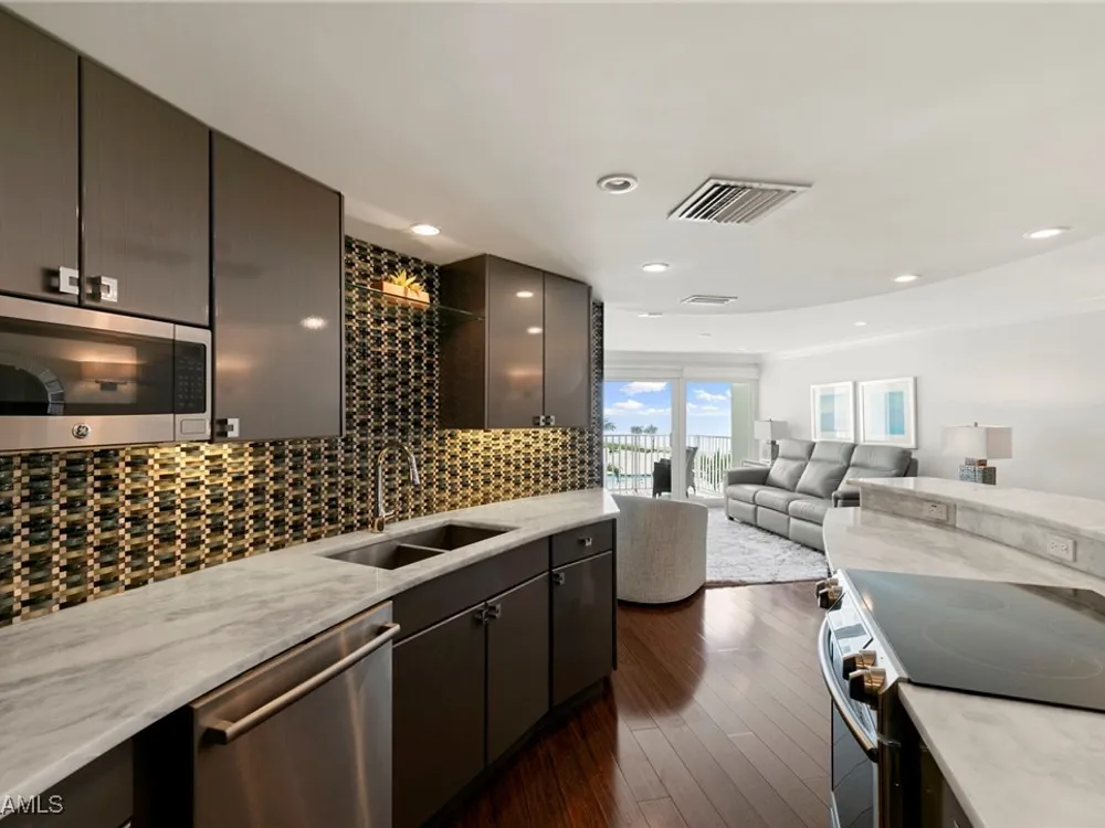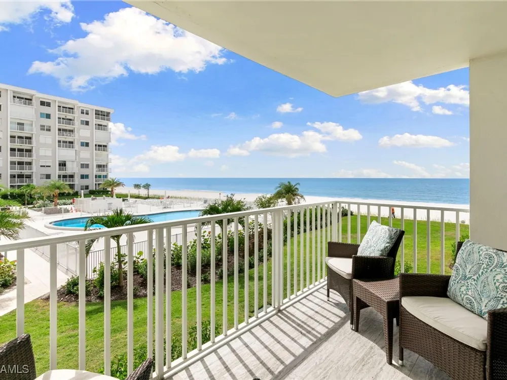 Welcome to Unit #204, a beautifully renovated condo offering comfort, style, and a glimpse of the Gulf. Located just steps from the sand, this second-floor residence boasts southwest exposure, filling the space with warm afternoon light and partial Gulf views that make every sunset feel like a private show. The smart split-bedroom layout provides privacy and flexibility, ideal for hosting guests or creating a quiet home office. A mix of wood and carpet flooring adds both warmth and texture throughout the living spaces. Designed for peace of mind and energy efficiency, the home features impact-resistant doors and windows, while the 2013 water heater adds lasting value. You'll also enjoy the convenience of one assigned covered carport space, a rare bonus in this sought-after coastal location. Enjoy the convenience of being just minutes from Naples world-class dining, shopping, and the sugar-sand beaches of the Gulf. This is your opportunity to own a stylish, move-in ready home in one of Southwest Florida’s most desirable coastal enclaves.