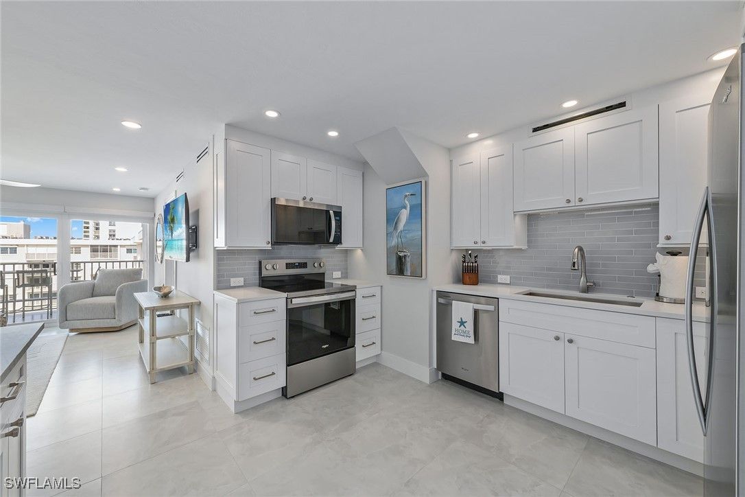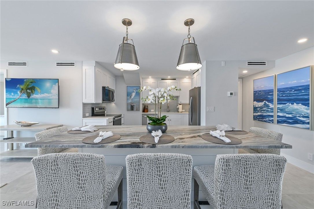 This freshly renovated eighth-floor residence offers gulf views from every room! Renovated from top to bottom, this unit features tile flooring throughout, recessed lighting, all new impact sliders, a new kitchen with stainless steel appliances, quartz countertops, a custom island with bar seating, extra storage and more. Wake up to views of the Gulf from both bedrooms that feature walk-in closets and en-suite baths. The spacious, northwestern-facing balcony extends off the living room and main bedroom, offering a spot to relax and enjoy the sunset. Residents can now enjoy the newly updated beachfront pool with a grilling area, shuffleboard, a social room with a kitchen, library, guest suites and a fitness room. Naples Continental is pet friendly, allowing owners to have two pets without any size restrictions. Leasing is allowed up to 12 times a year for a minimum of 30 days, making this an exceptional investment opportunity. In the Moorings neighborhood, you are just a quick visit to renowned dining and shopping offered at Venetian Village and a short drive from Mercato, Waterside Shoppes, 5th Avenue South and 3rd Street South.