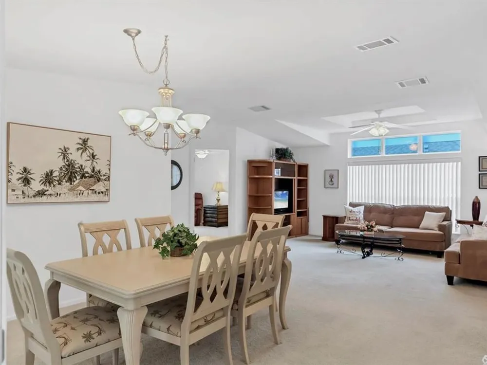 - Cathedral Ceiling(s), Ceiling Fan(s), Eat-in Kitchen, High Ceilings, Kitchen/Family Room Combo, Living/Dining Room, Open Floorplan, Split Bedrooms, Thermostat, Window Treatments