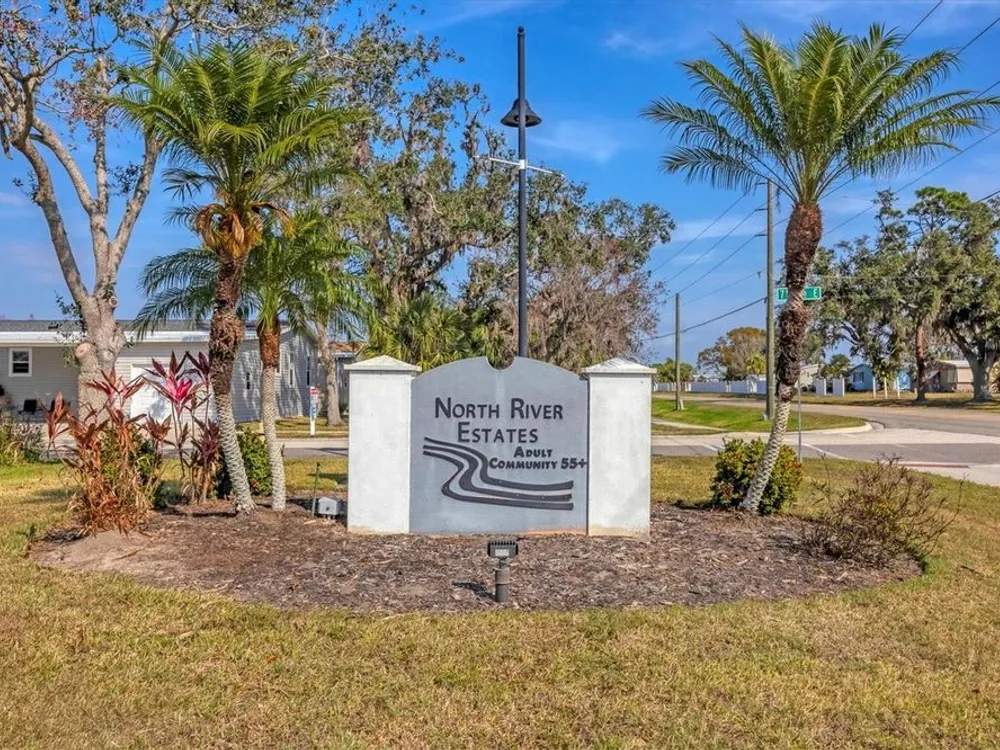 Welcome to North River Estates – A Premier 55+ Land-Owned Community! Trade in your snow shovel for sunshine and relaxation in this beautifully maintained 2-bedroom, 2-bathroom home with a flexible bonus room — perfect for an office, hobby space, or extra guest room. With 1,458 sq. ft. of light-filled living space and an open floor plan, this home is ideal for entertaining or simply enjoying time with family and friends. Step out onto the back patio overlooking a serene pond, where you can sip your morning coffee while watching the birds and local wildlife. The spacious master suite features his and her closets, dual vanities, and a walk-in shower for ultimate comfort. Located in North River Estates, one of the few 55+ communities that is land-owned (no lot rent!) and pet-friendly — bring up to 2 pets of any size or breed. This is the perfect place for your full-time residence or winter retreat. New roof in 2019, New A/C in 2024, New gutters in 2022, and an Inspection was done. The low HOA fee of just $125 a month includes lawn maintenance and grants you access to the community’s impressive amenities. Enjoy a large heated pool, a well-equipped fitness room, and a vibrant clubhouse where there's always something happening — from card games and billiards to poker nights, potluck dinners, and festive holiday celebrations. North River Estates offers the perfect balance of peaceful living and convenient access. You'll be just minutes from shopping, restaurants, SRQ Airport, and I-75, with easy routes to Tampa, St. Petersburg, and Sarasota. And of course, you’re never far from Florida’s stunning white-sand beaches. Don’t miss your chance to enjoy the Florida lifestyle you’ve been dreaming of. Come see why so many have chosen to call North River Estates home!