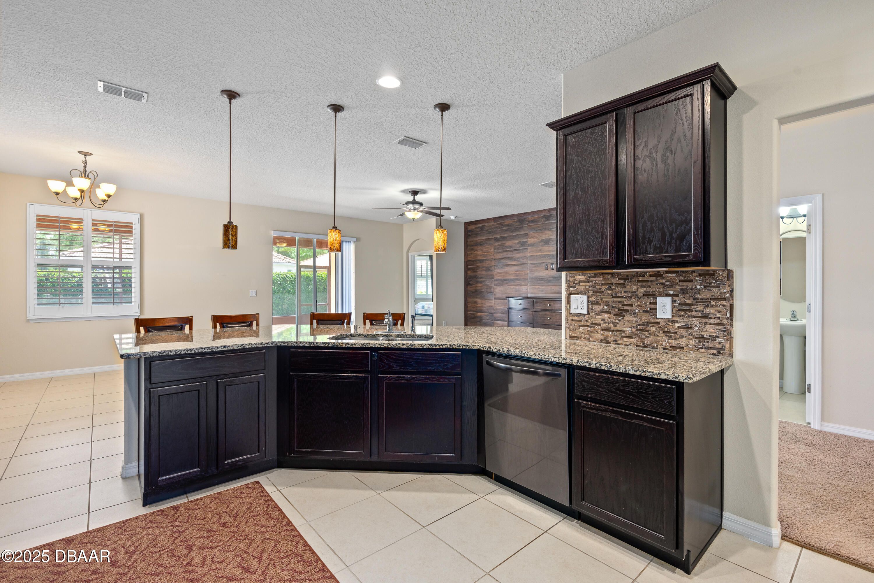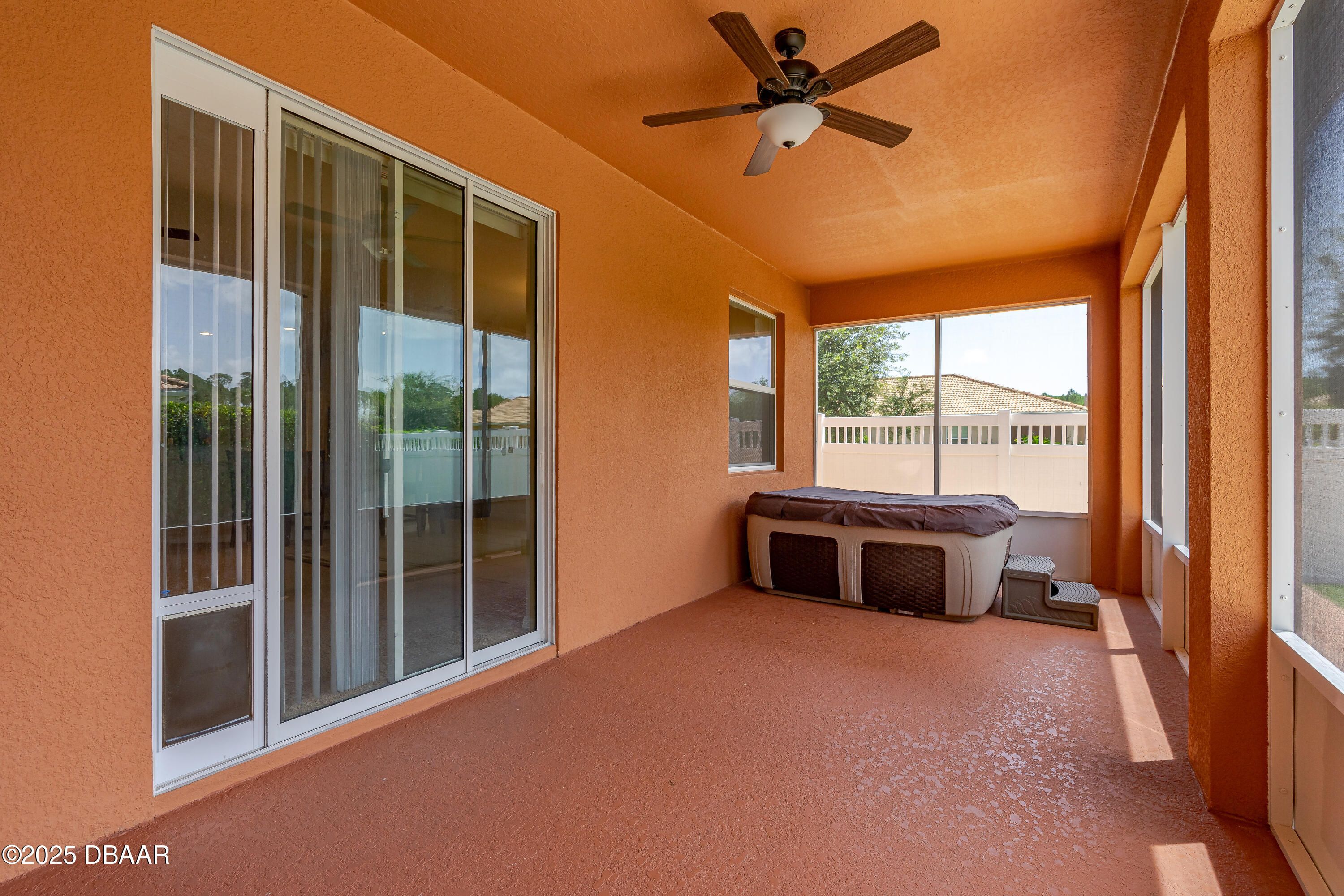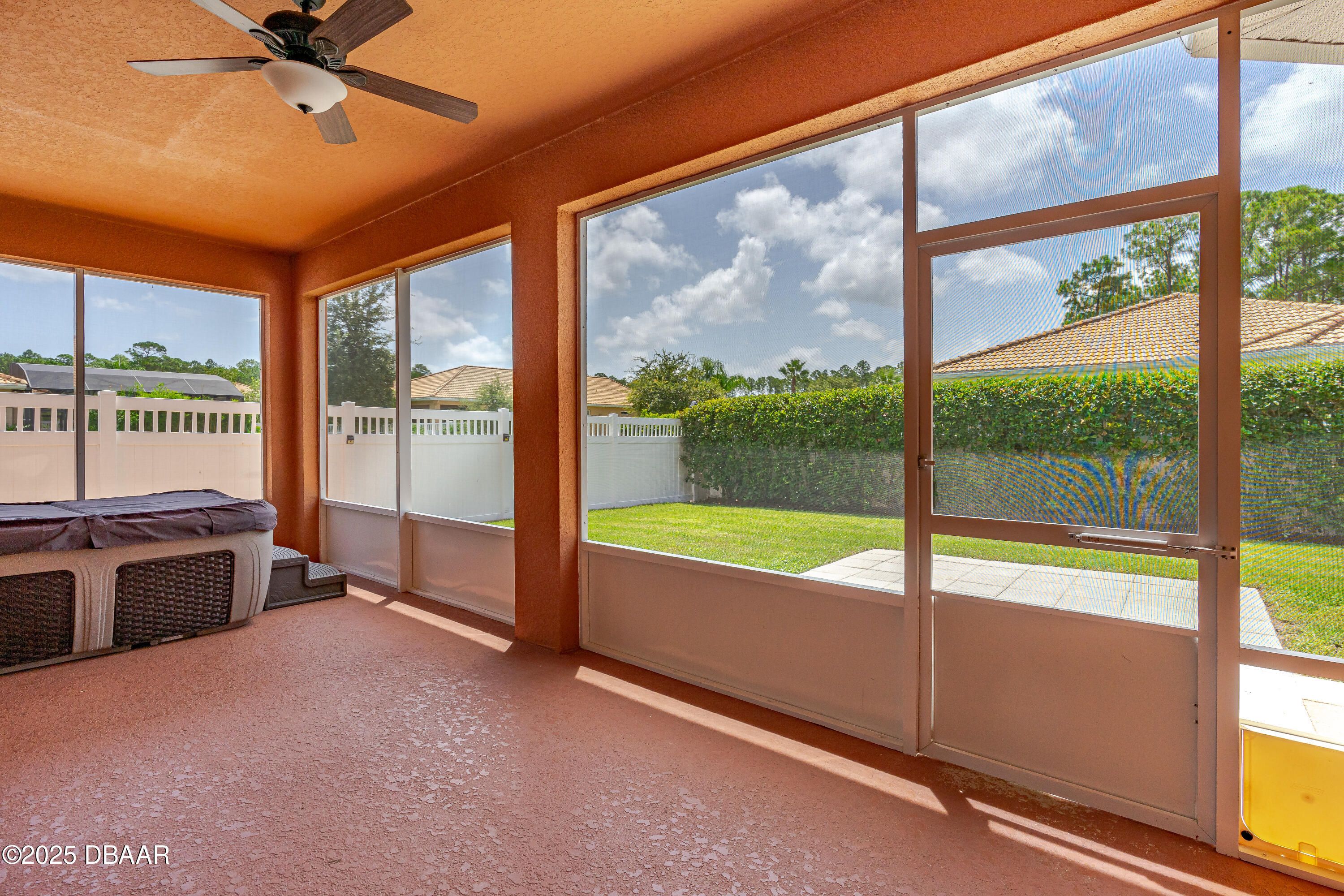 Welcome to your dream home in the heart of Venetian Bay. This 3-bedroom, 2.5-bathroom home, built in 2015, boasts a prime corner lot location. Step inside and enjoy the spacious open floor plan that seamlessly connects the living, dining, and kitchen areas, perfect for hosting gatherings or relaxing with family. The kitchen features granite countertops, stainless steel appliances, ample cabinet space, and a convenient breakfast bar. The generous master suite is a true retreat, complete with a walk-in closet and an en-suite bathroom with a soaking tub, separate shower, and dual sinks. The split bedroom floor plan offers the perfect separation for family and guests. Enjoy Florida's beautiful weather in your screened lanai while melting your cares away in your private hot tub or explore the possibilities of your fenced-in corner lot, which offers plenty of space for outdoor activities, gardening, or even a pool.